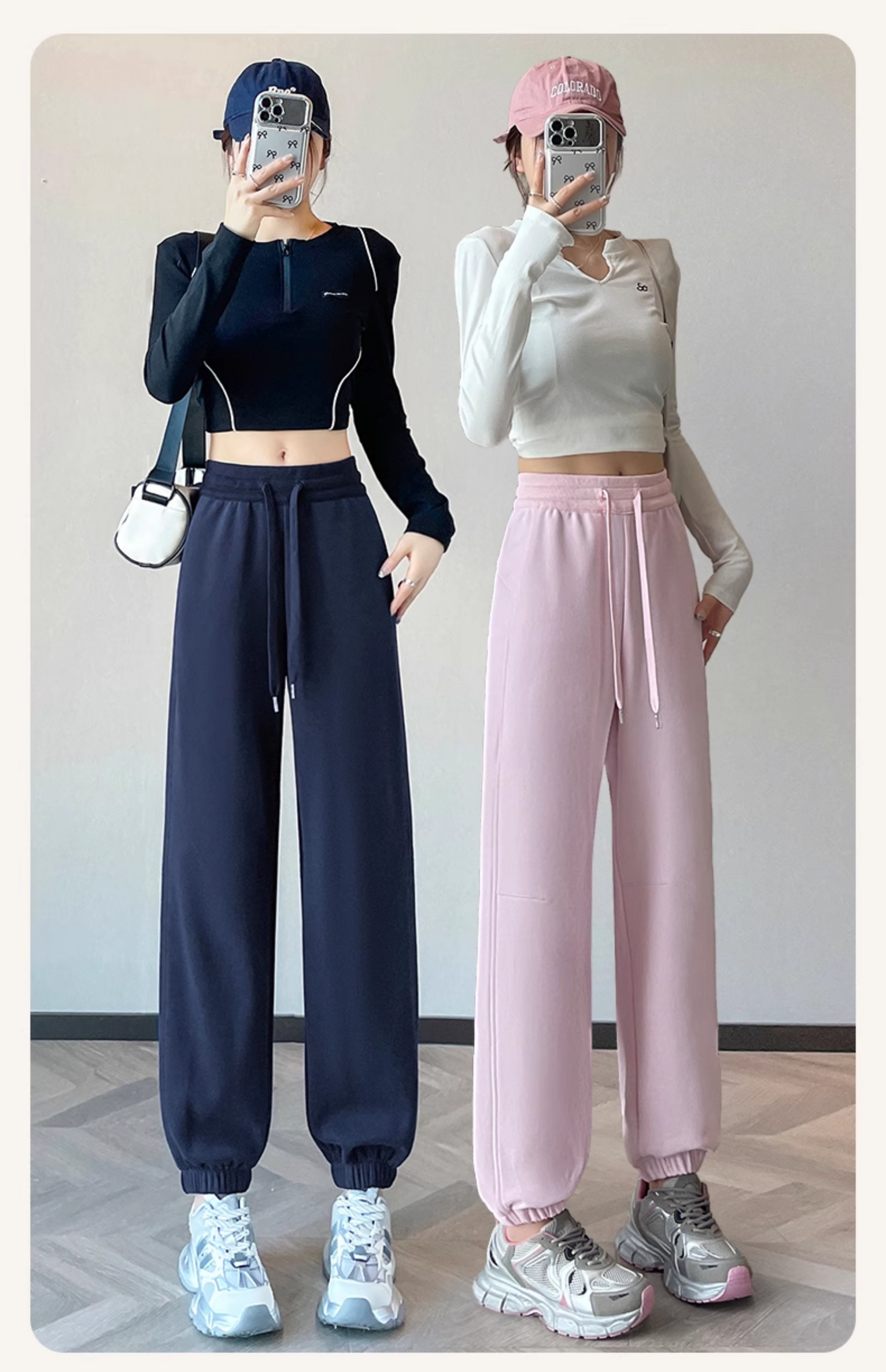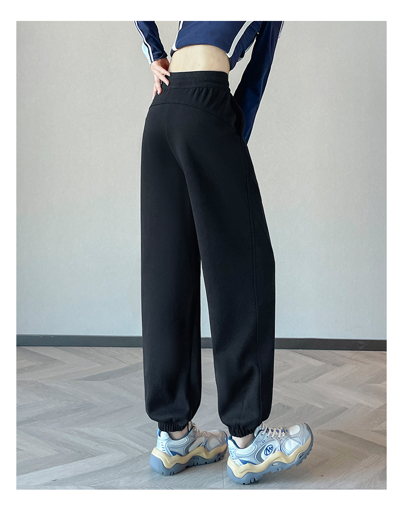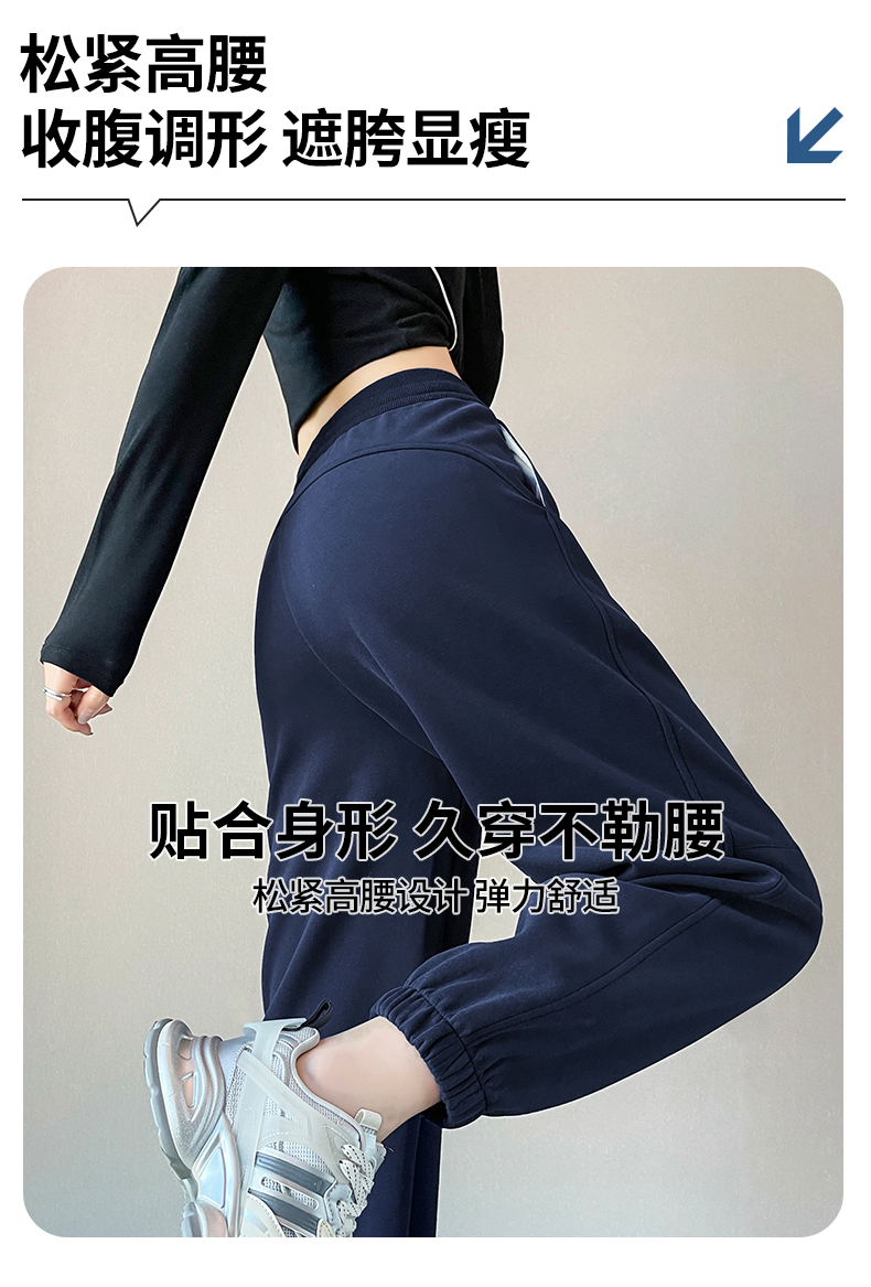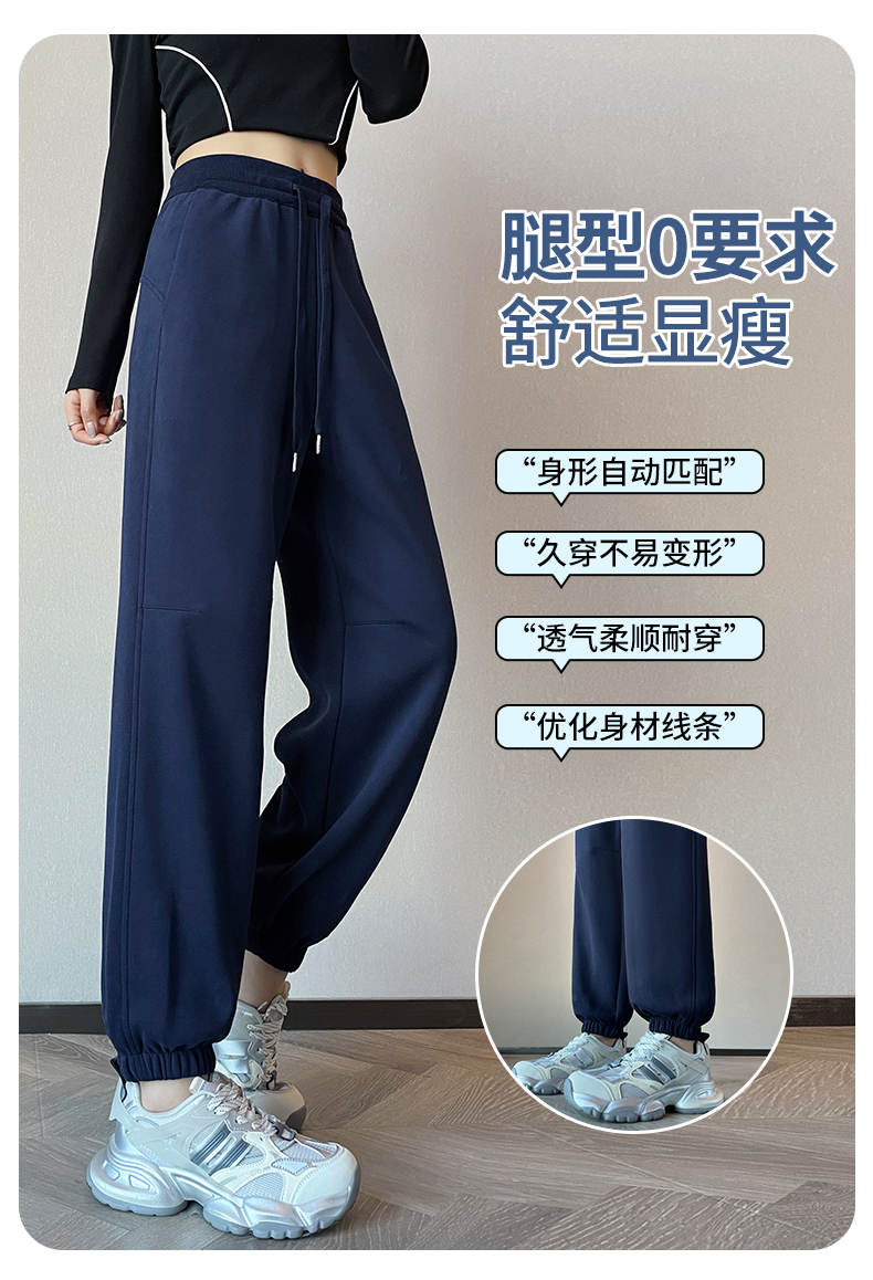 Navy Blue Sports Sweatpants for Women, Spring and Autumn, Loose Fit, High-Waisted, Slimming Joggers, Lantern Pants, Autumn and Winter Casual Fleece-Lined Pants