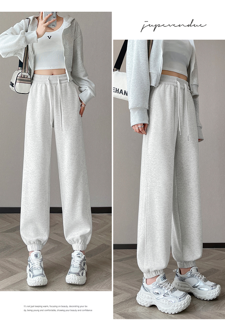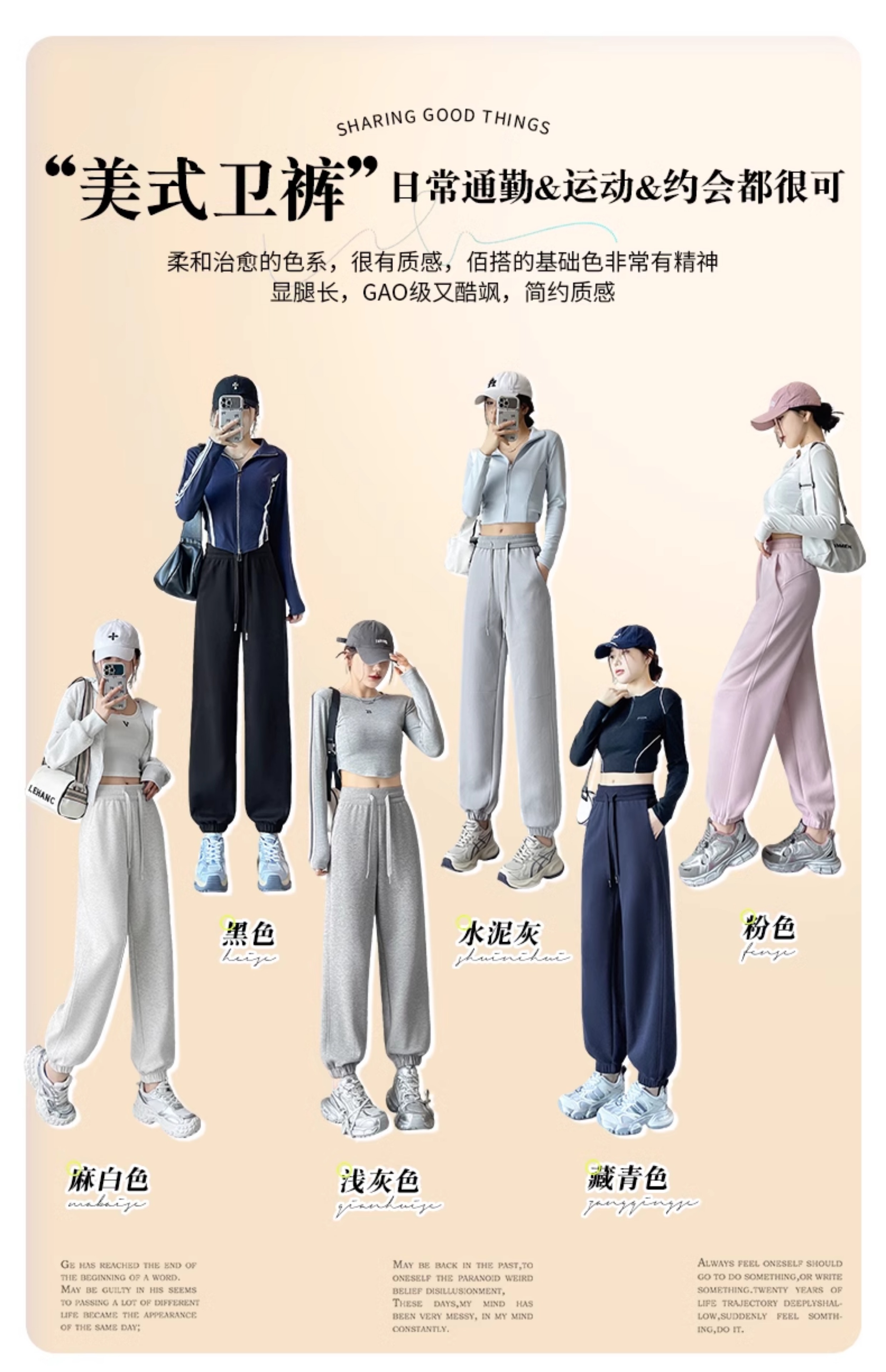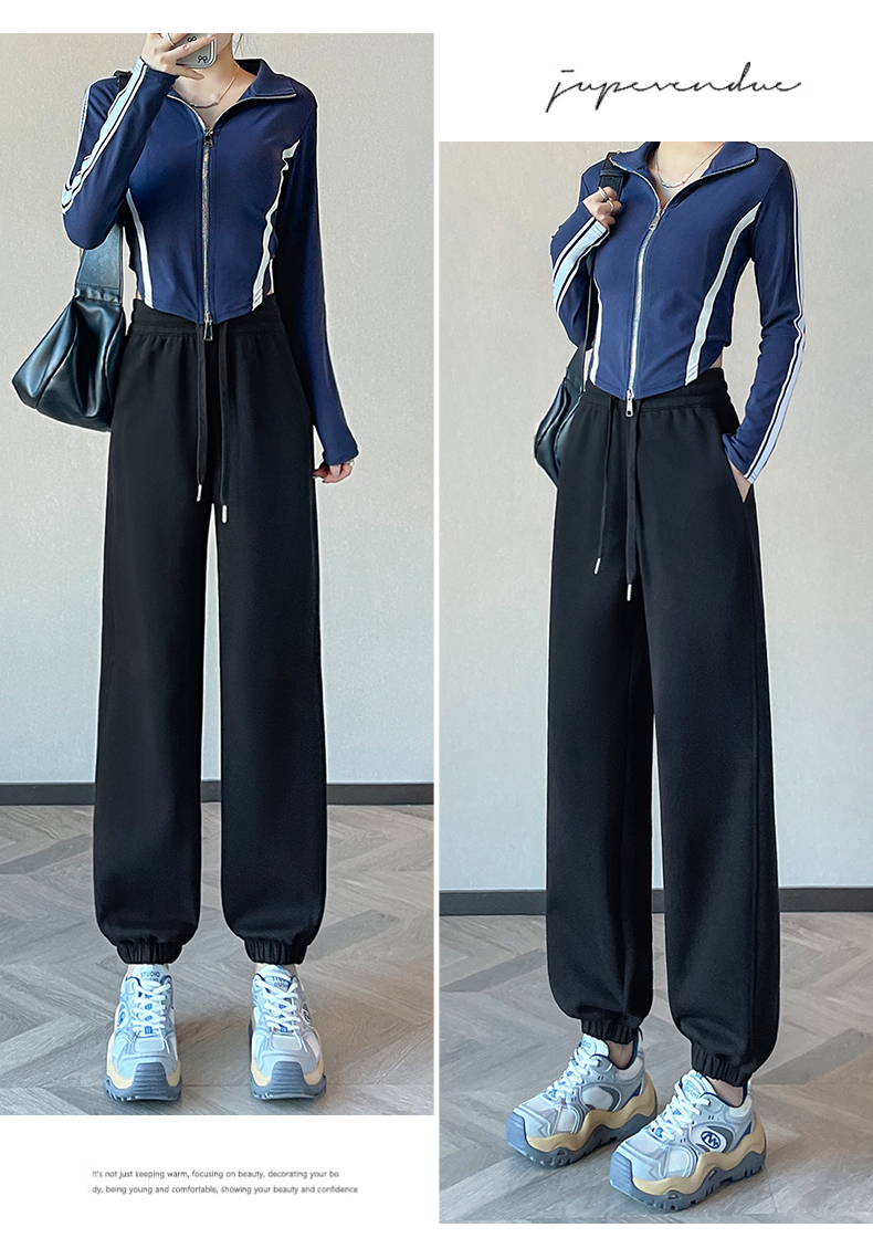 Navy Blue Sports Sweatpants for Women, Spring and Autumn, Loose Fit, High-Waisted, Slimming Joggers, Lantern Pants, Autumn and Winter Casual Fleece-Lined Pants