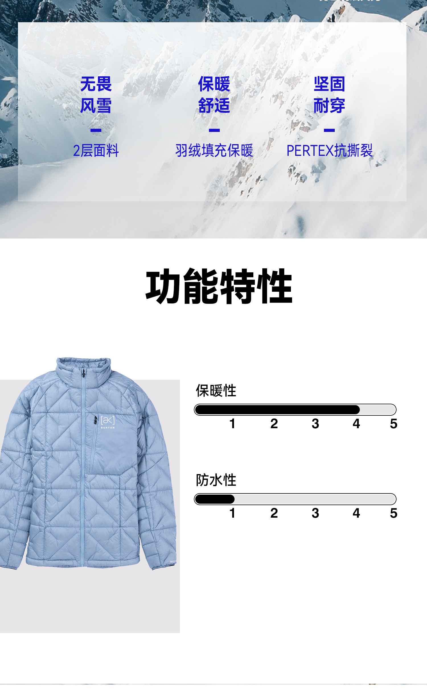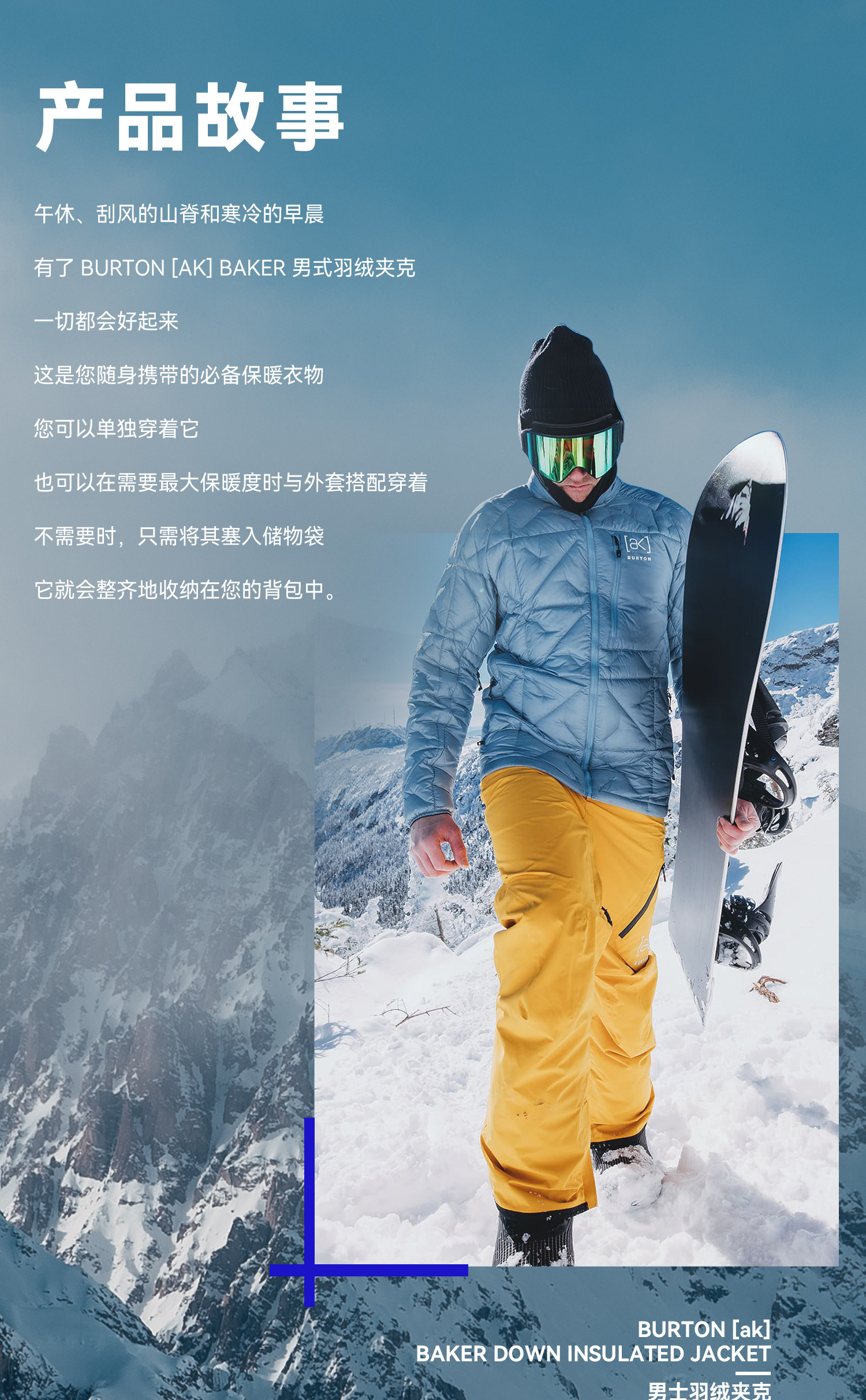 Burton 25/26 Outdoor Winter Skiing Sports Ak Baker down Hoodless down Warm Mid-Layer