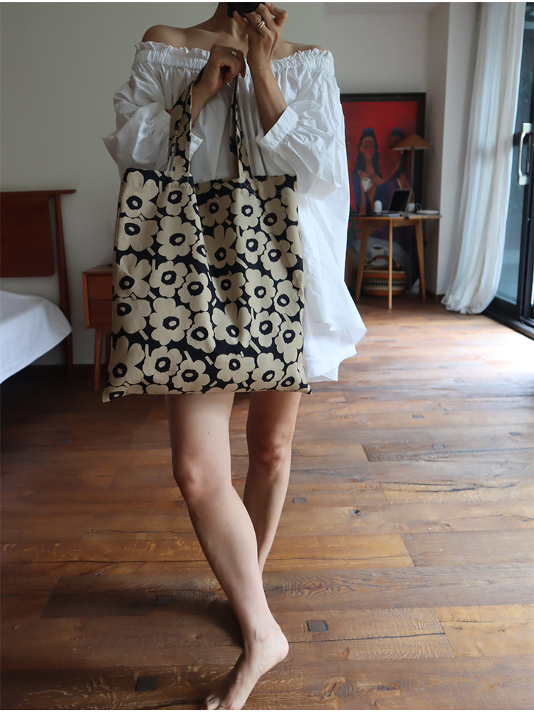 Scandinavian Classic Floral Pattern Canvas Shopping Bag Cloth Bag Handbag Series