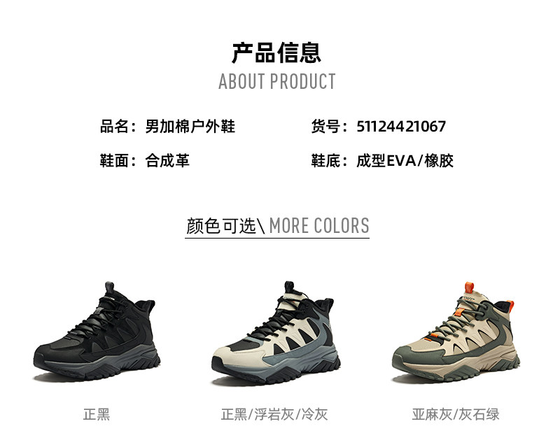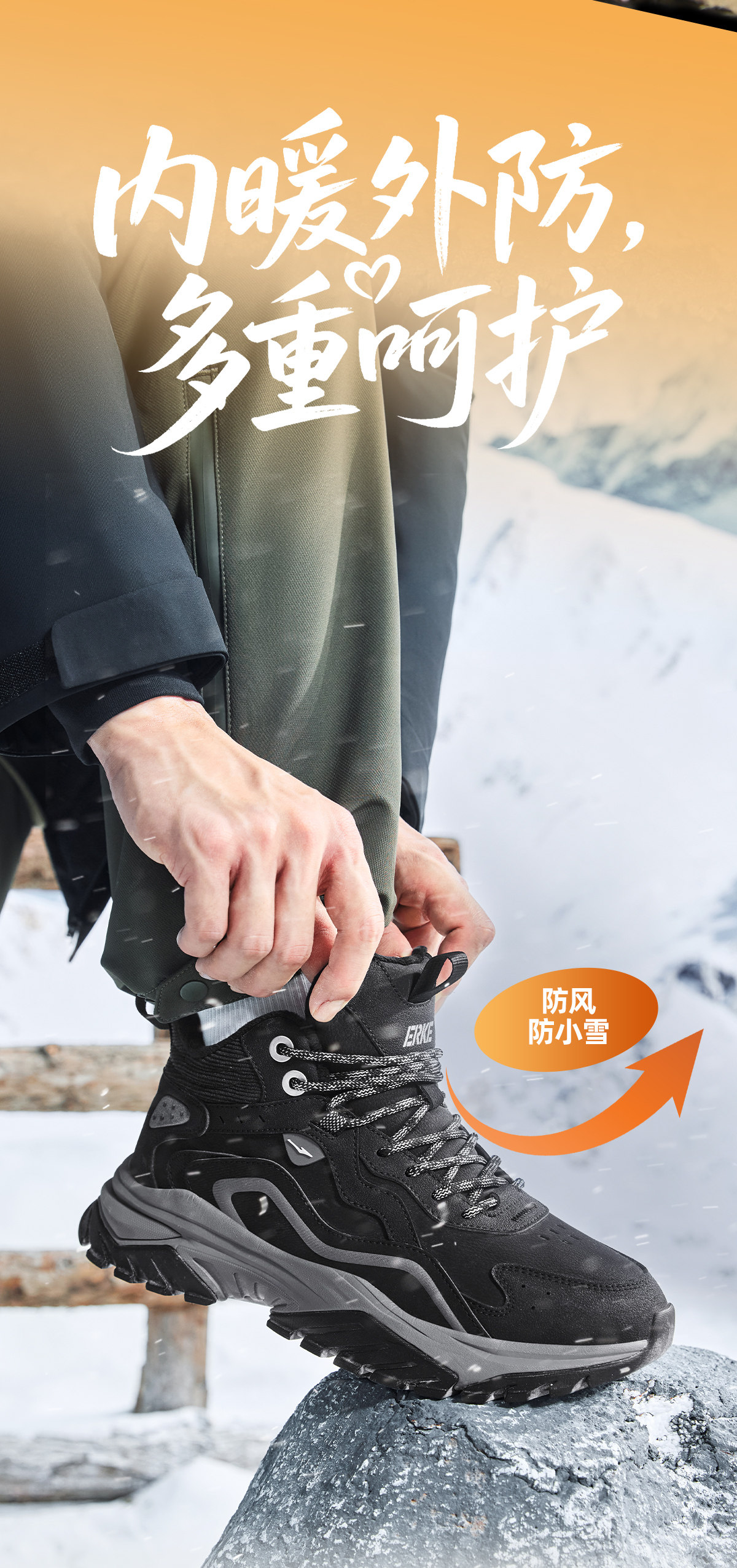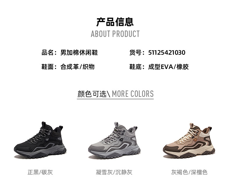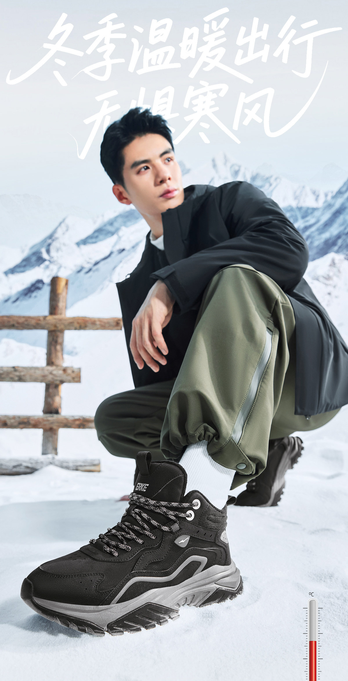 Hongxing Erke Men's Winter Casual Shoes, Large Cotton Shoes, Warm Northern Thickened Fleece-Lined Snow Boots, Sports Shoes