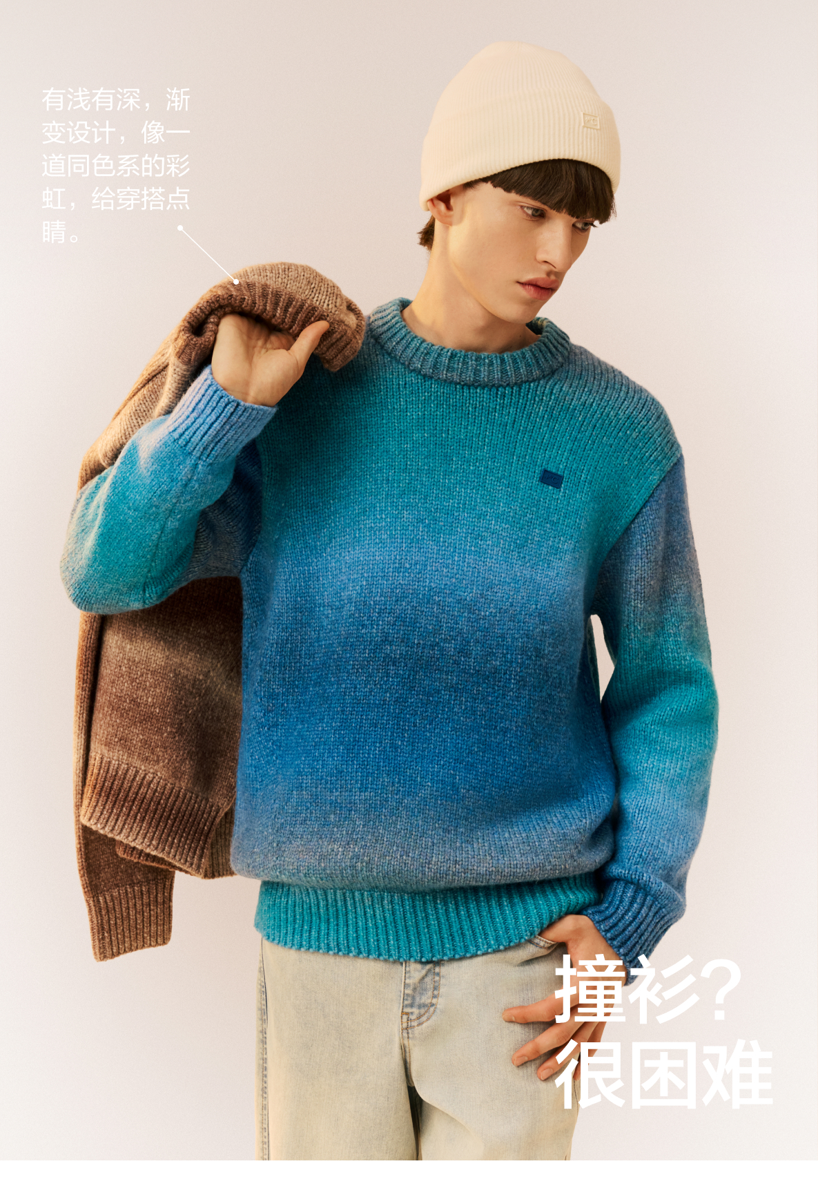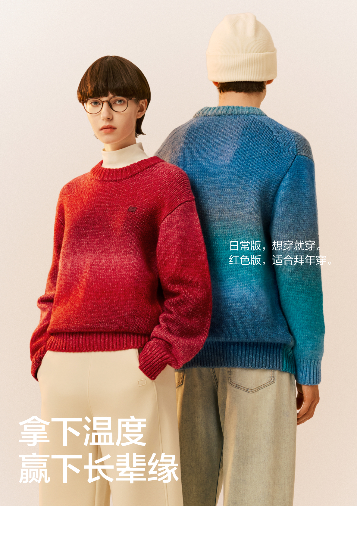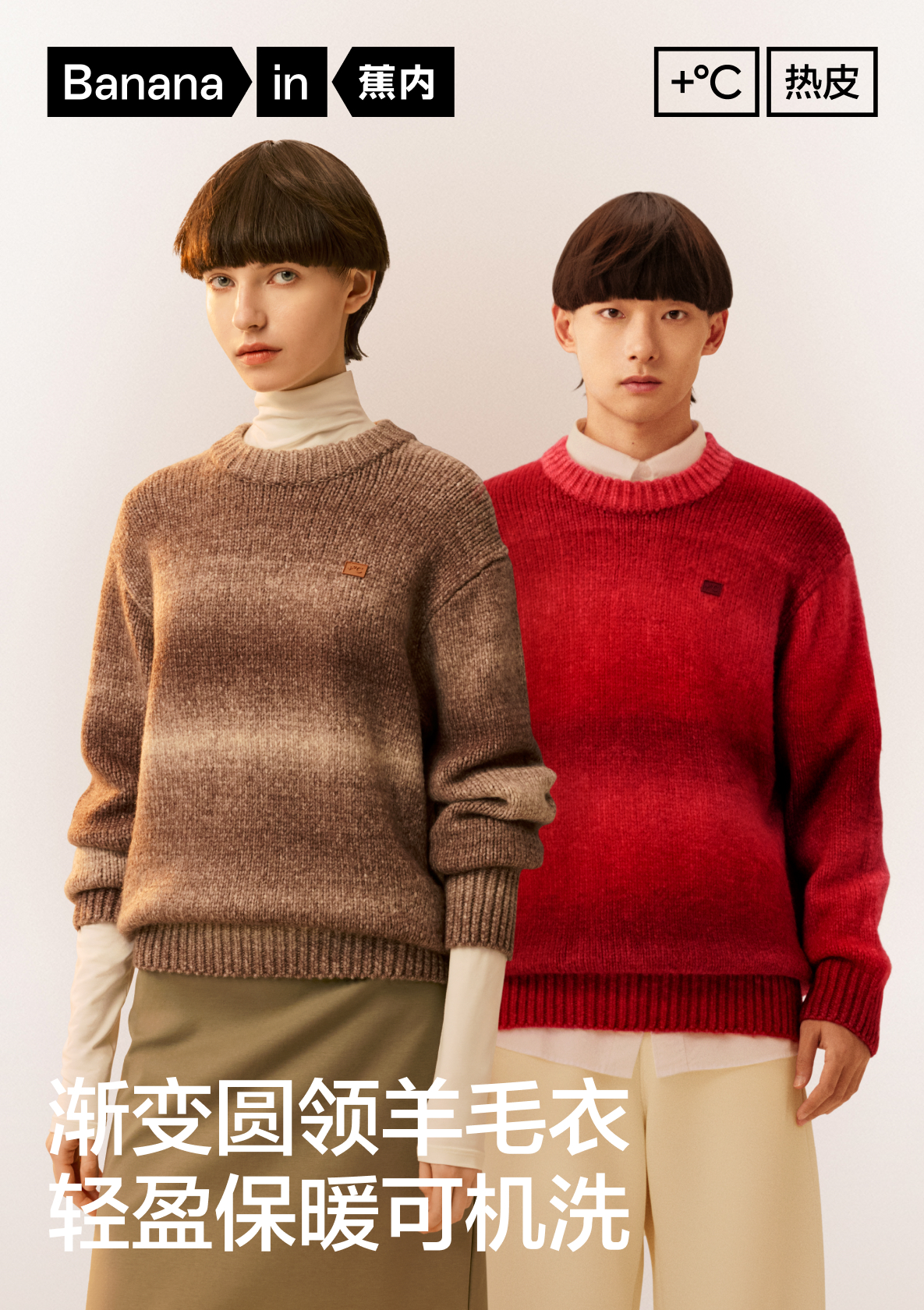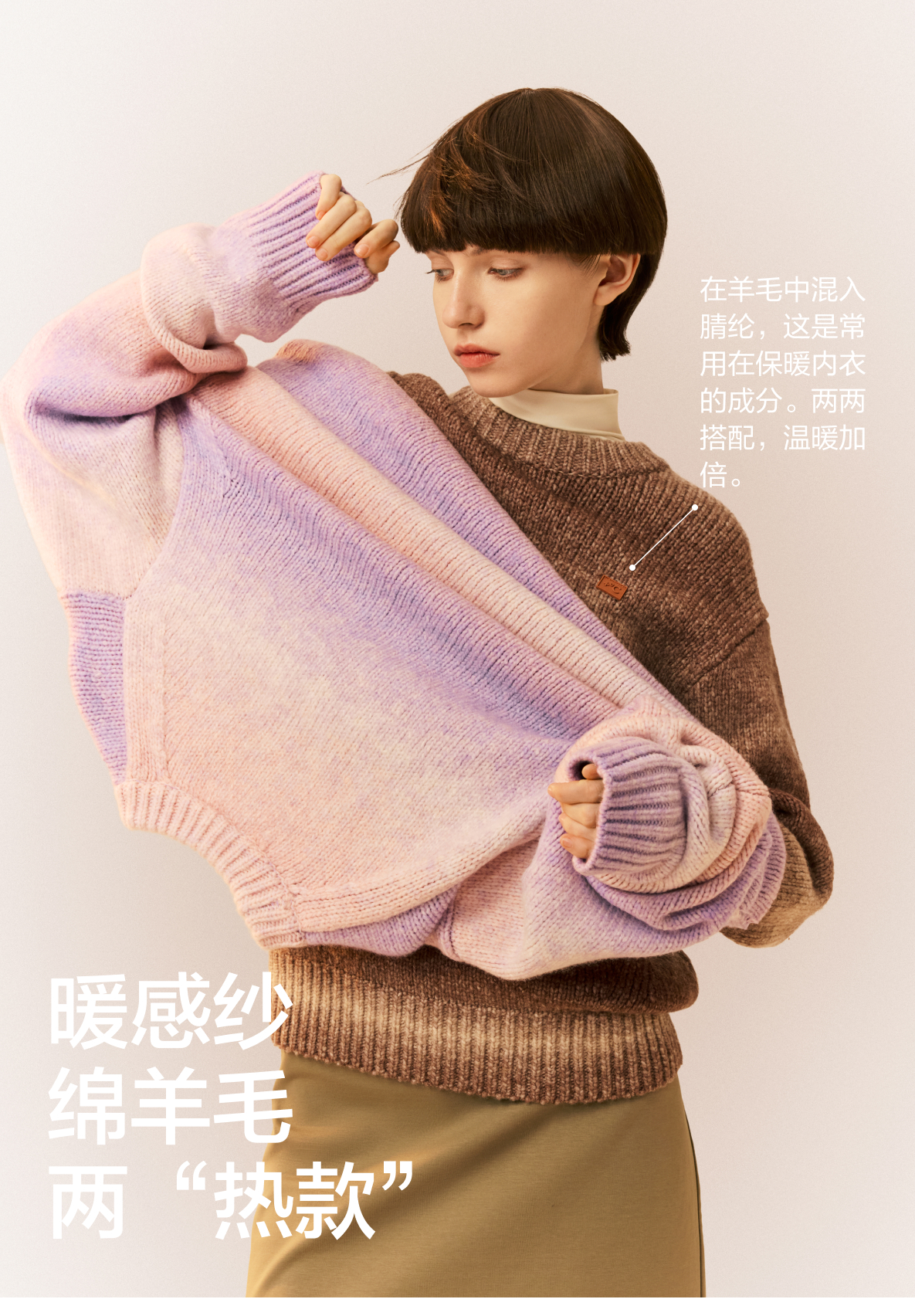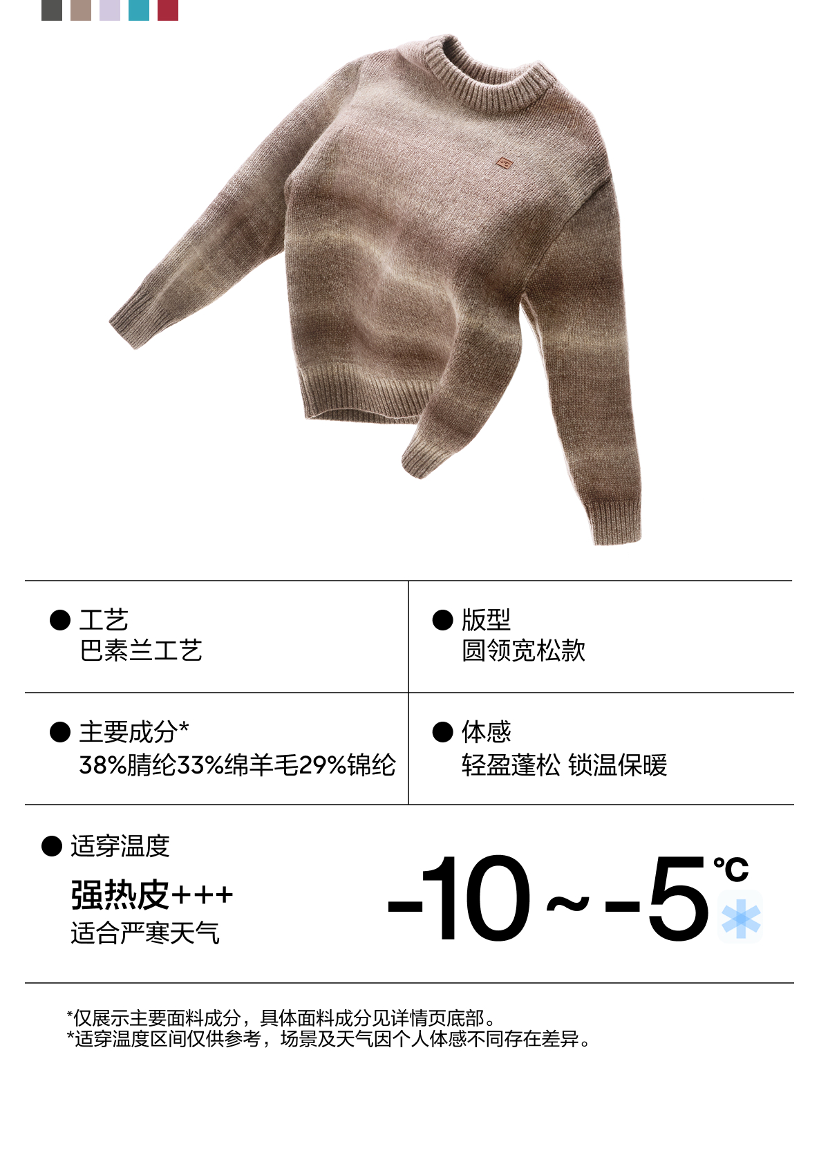 【Wang Yibo's Style】Jiao Nei 503+++ Unisex Temperature-Locking Gradient Crew Neck Pullover Sweater, Warm Wool
