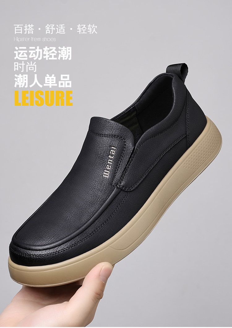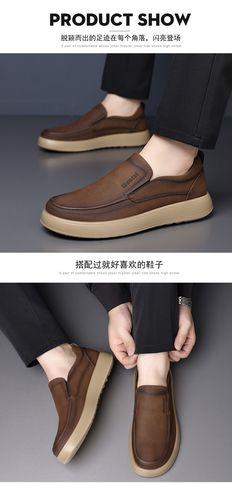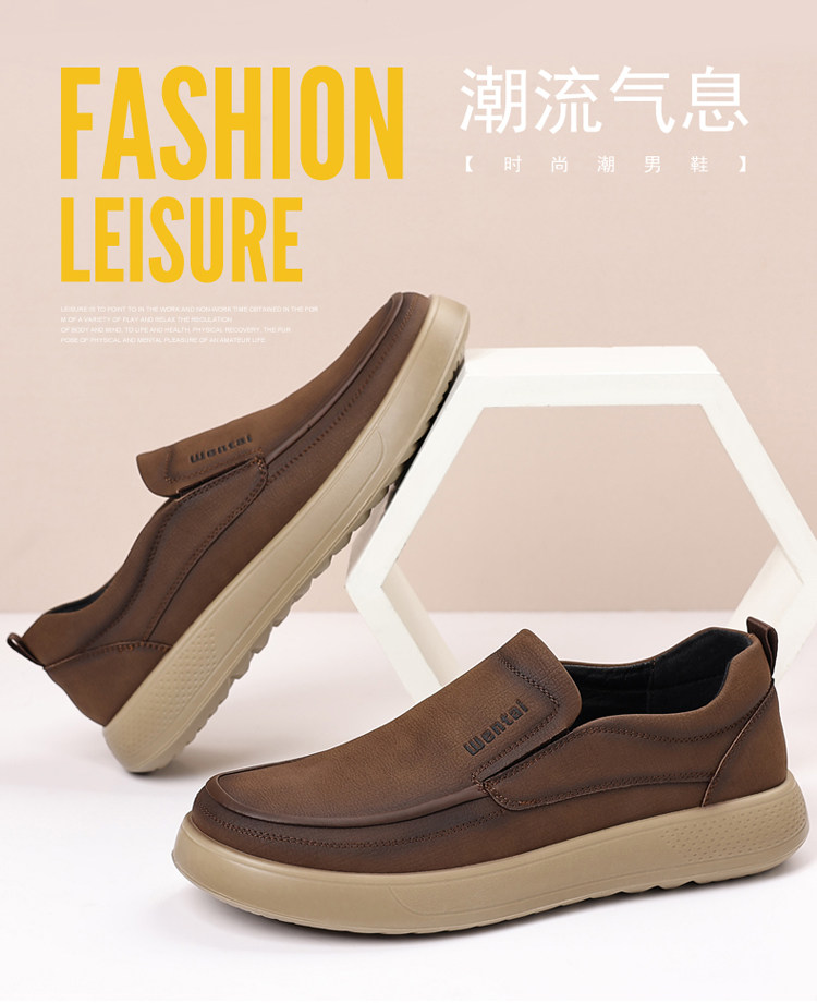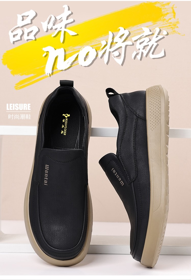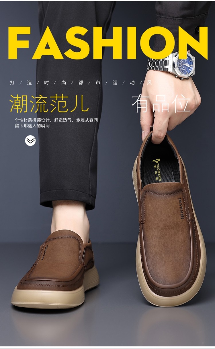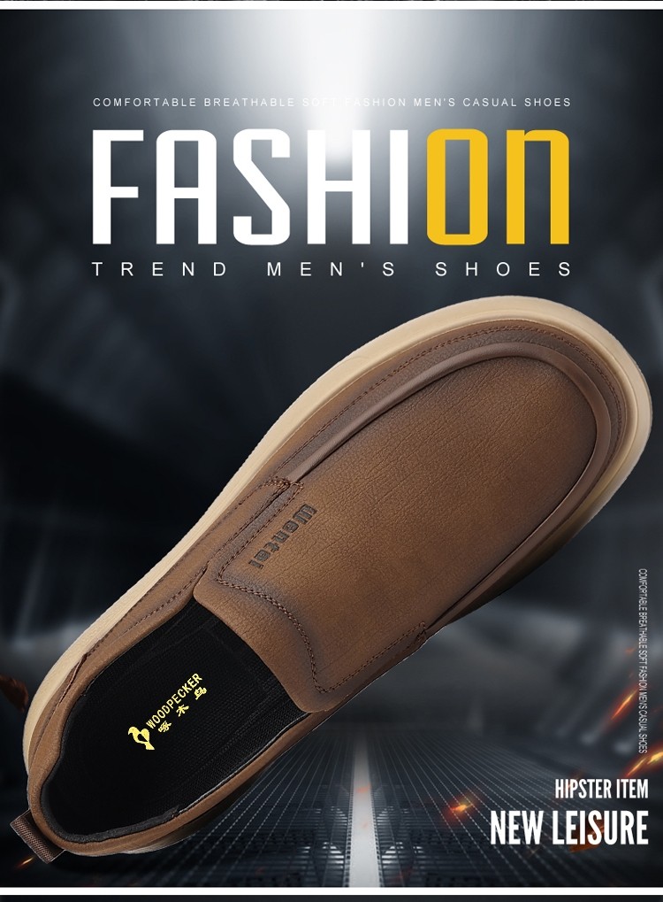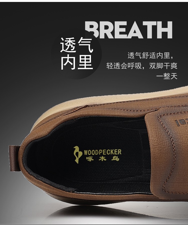 Woodpecker Men's Shoes Genuine Leather Business Casual Leather Shoes Men's Soft-Soled Breathable Lightweight Dad Shoes Slip-On Loafers