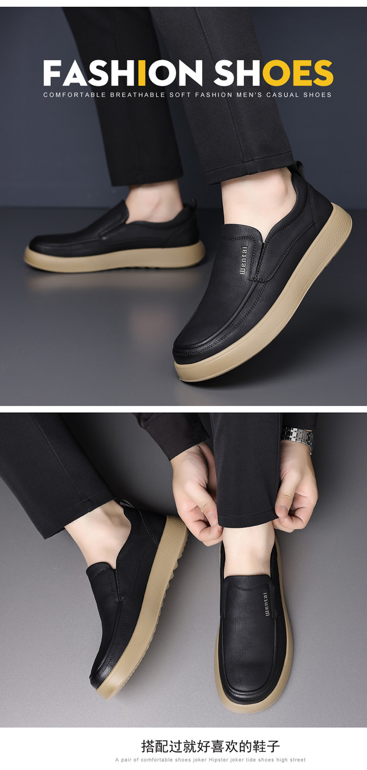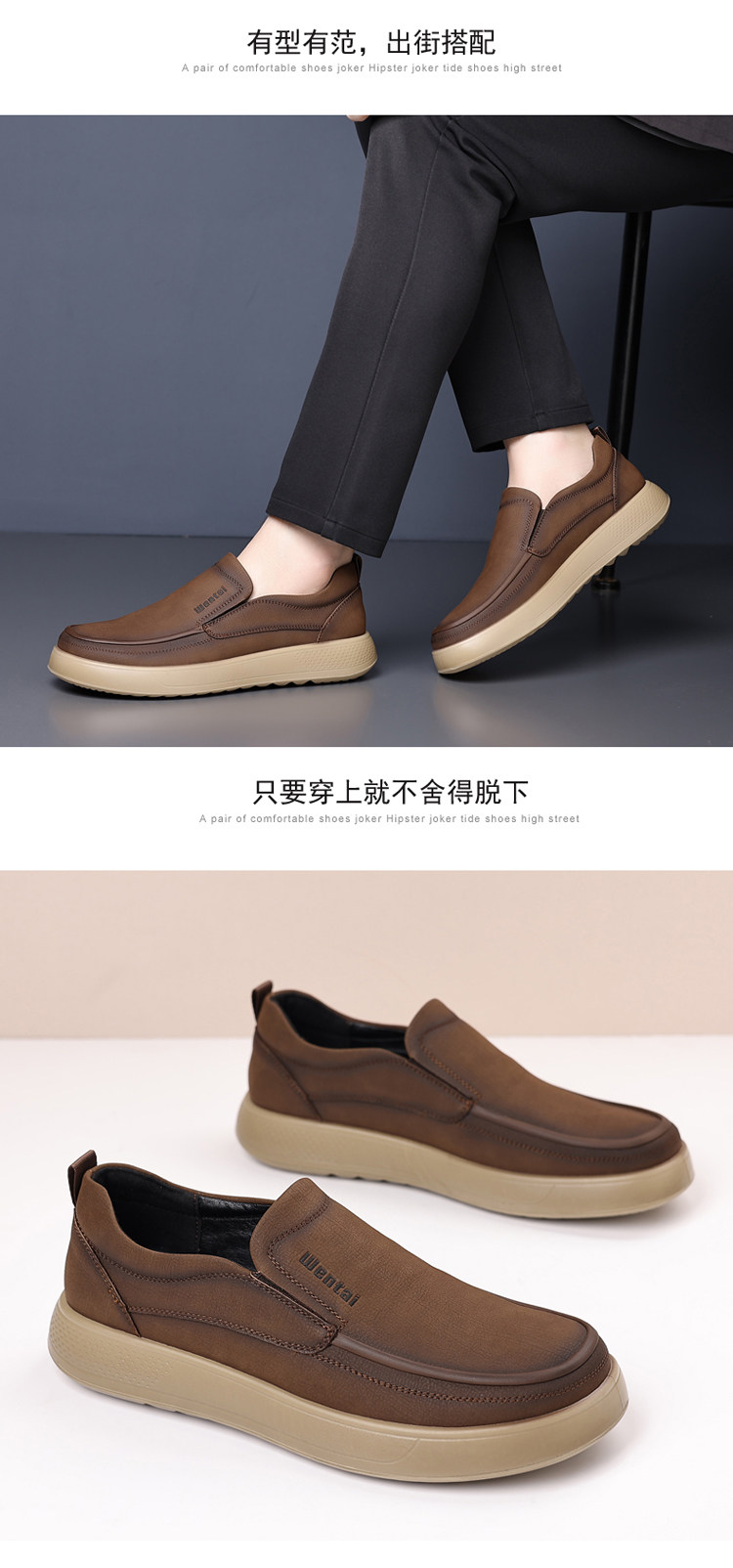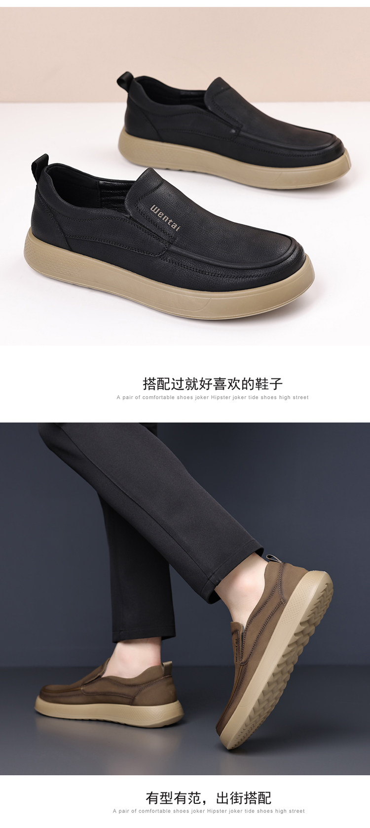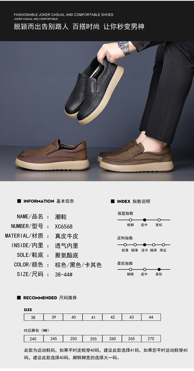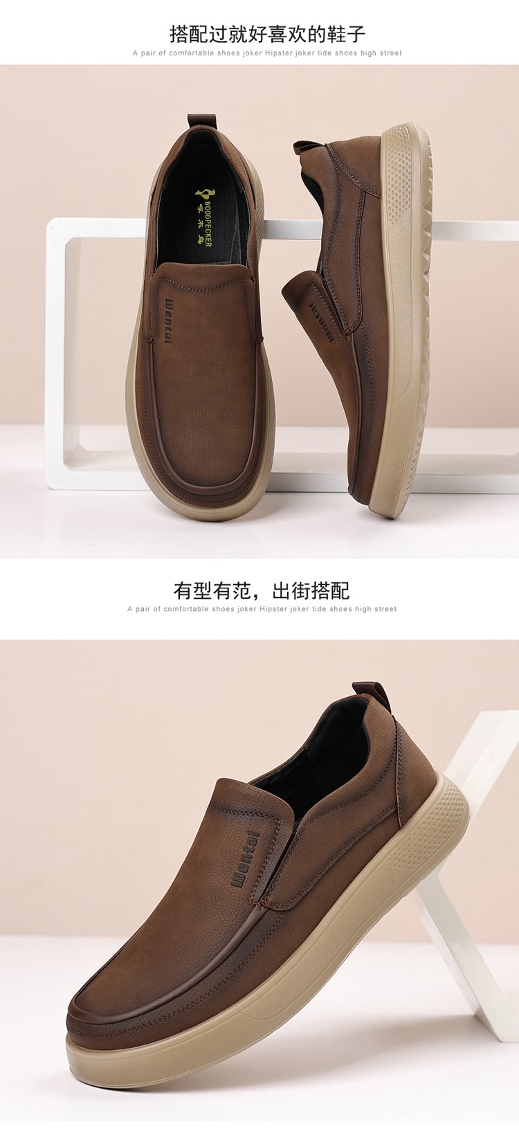 Woodpecker Men's Shoes Genuine Leather Business Casual Leather Shoes Men's Soft-Soled Breathable Lightweight Dad Shoes Slip-On Loafers