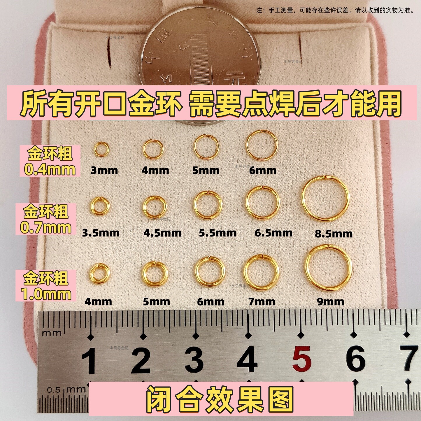 Gold Open Ring, Pure Gold 999 Solid Gold Closed Ring, DIY Round Ring Pendant Connecting Ring Accessory