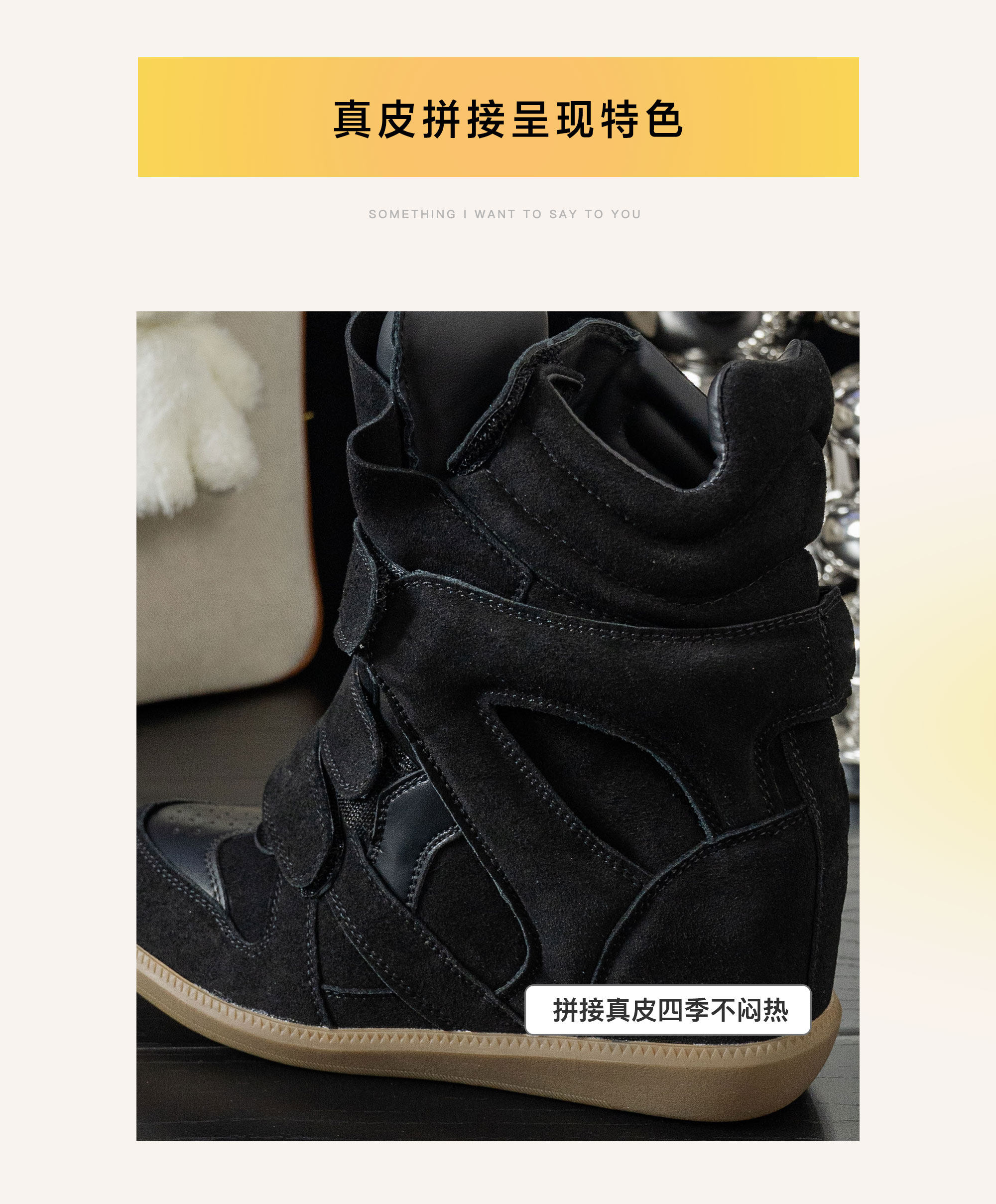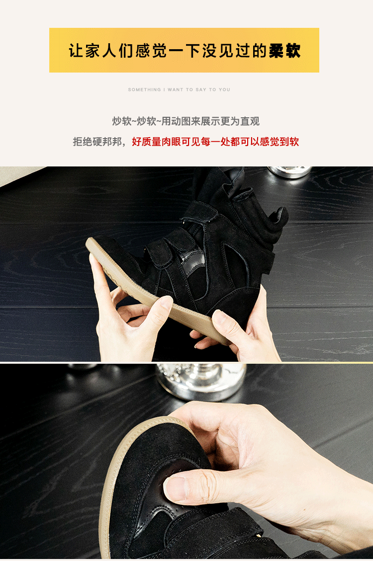 Shu Deng European and American Style 7cm Invisible Height-Increasing High-Top Shoes 2025 New Versatile Velcro Genuine Leather High-Top Women's Shoes