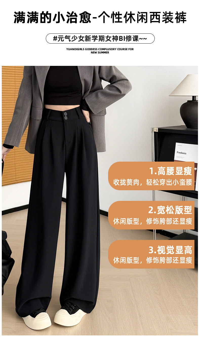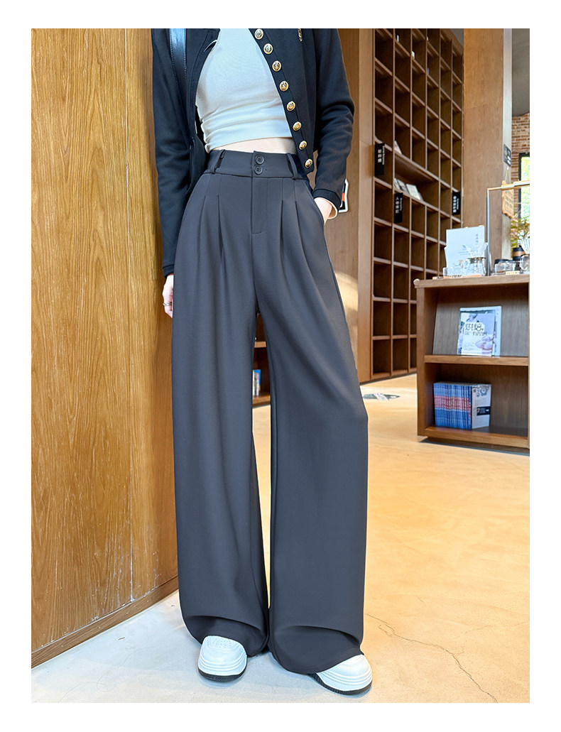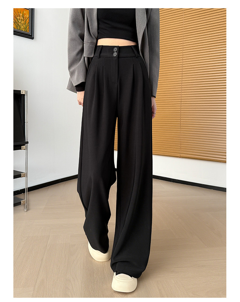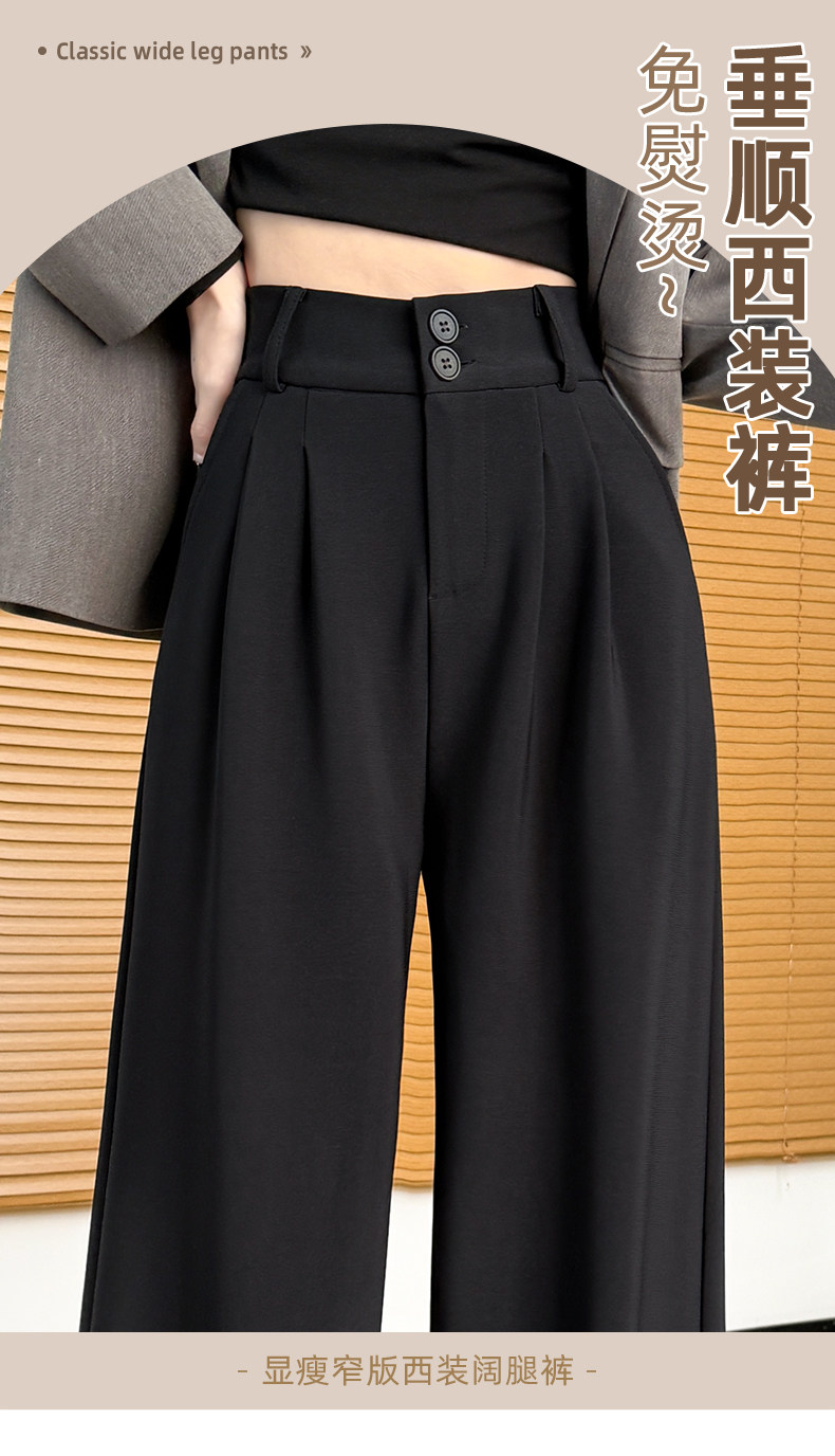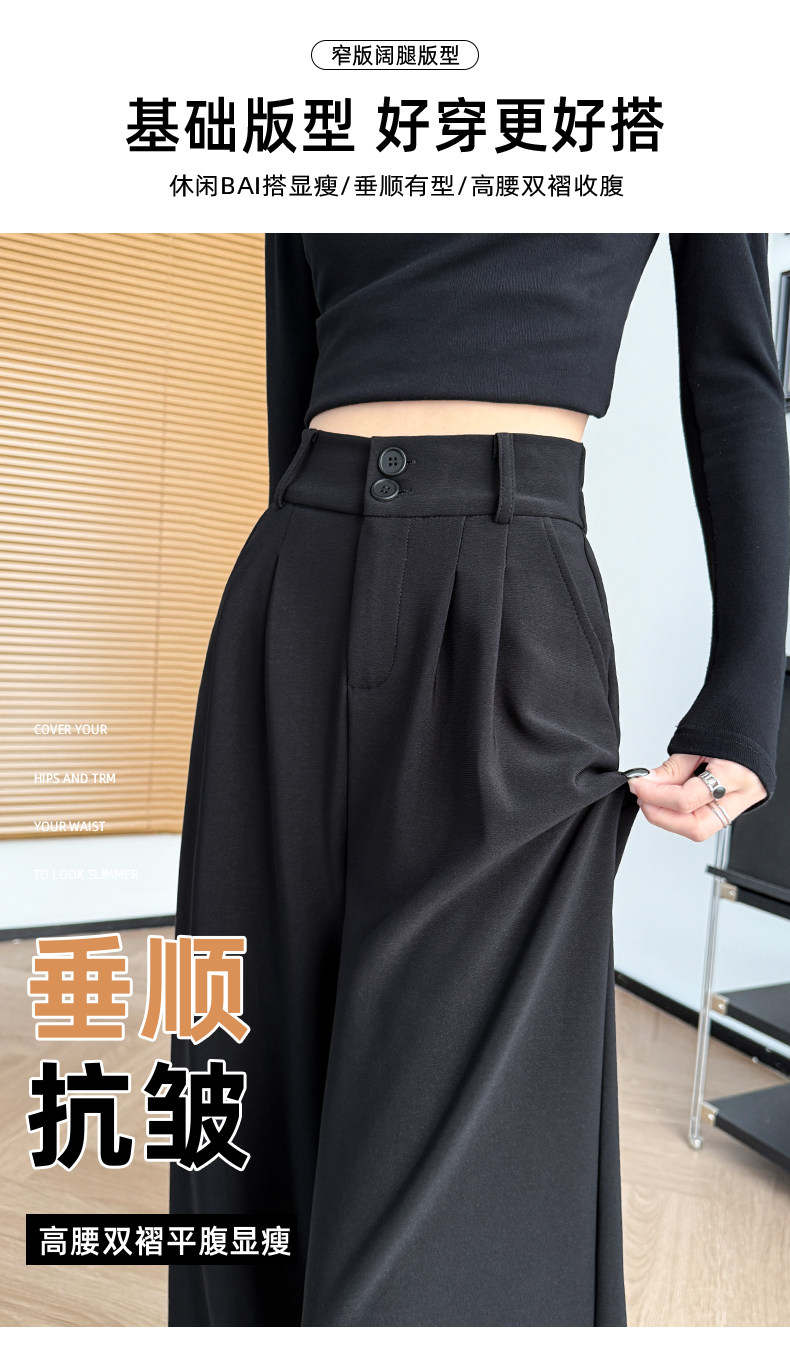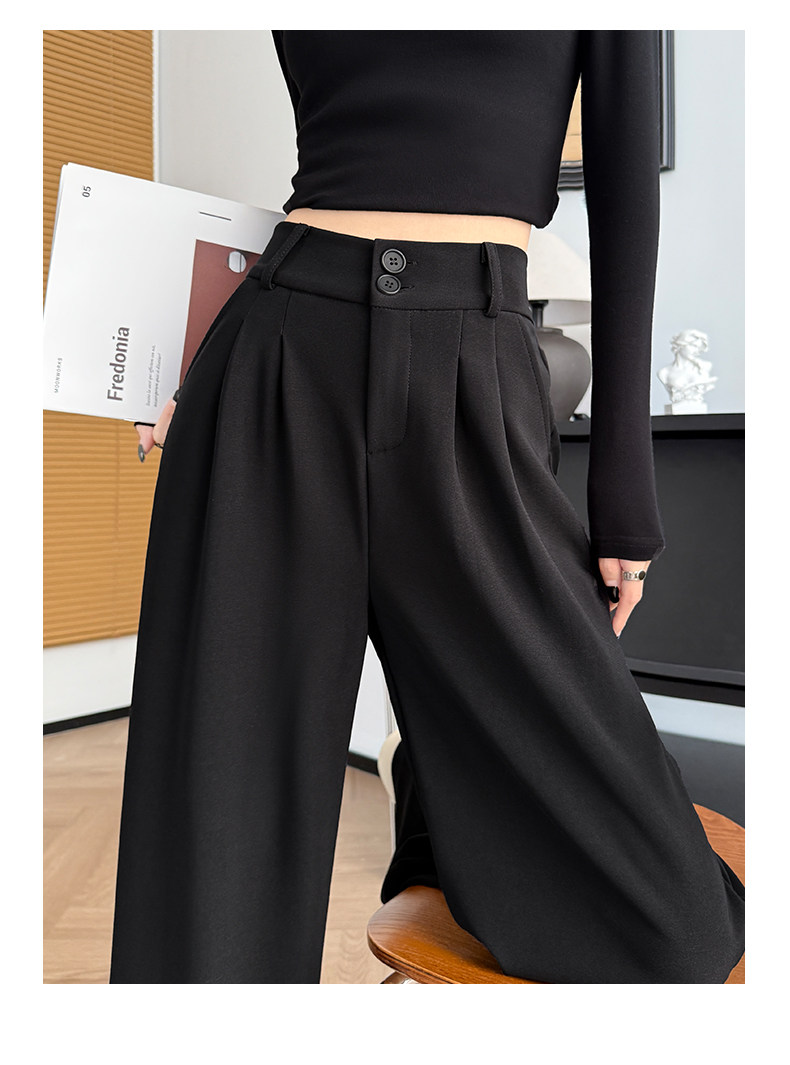 Suit-Style Wide-Leg Pants for Women 2026 New Spring and Autumn Petite High-Waisted Slim-Fit High-End Drapey Black Straight-Leg Pants