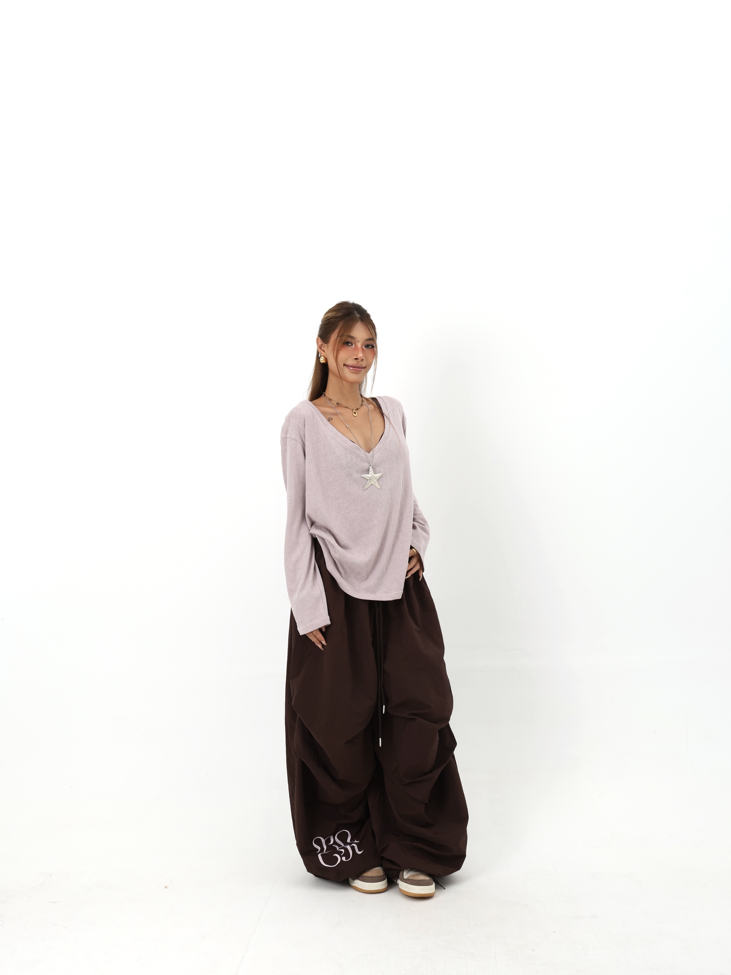 Blinggirls Autumn Lazy Sunscreen American Style Airy Relaxed V-Neck Loose Long Sleeve T-Shirt Top