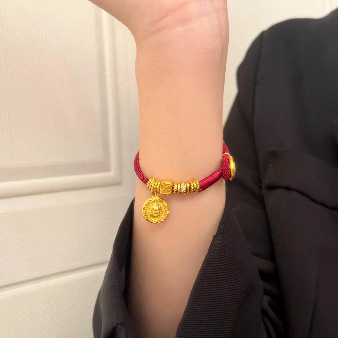 Shenzhen Shuibei Gold Five Road God of Wealth Coin Red String 999 Pure Gold Pendant Bracelet Lucky Disc Bracelet for Women