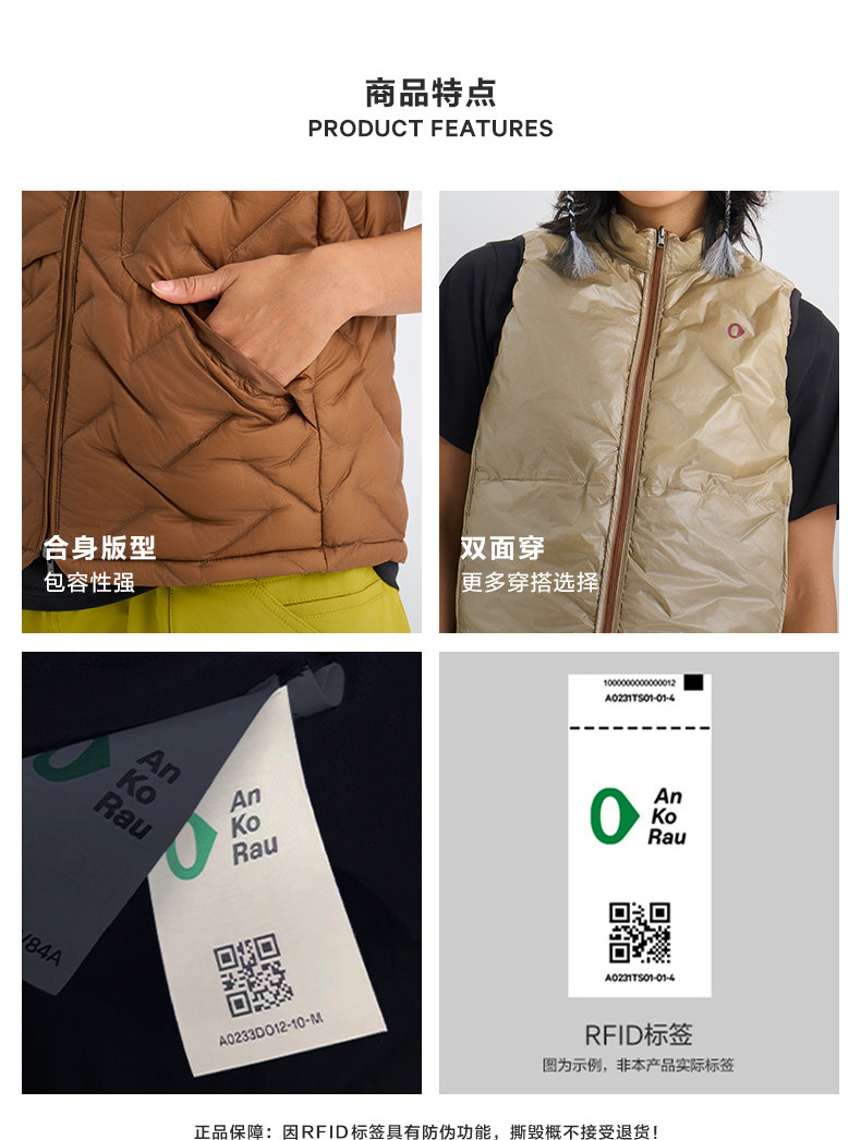 G0 Women's Winter New Product Outdoor Water-Repellent 800 Fill Power Water-Repellent Goose down Lightweight Vest | Ankorau an Gao Ruo