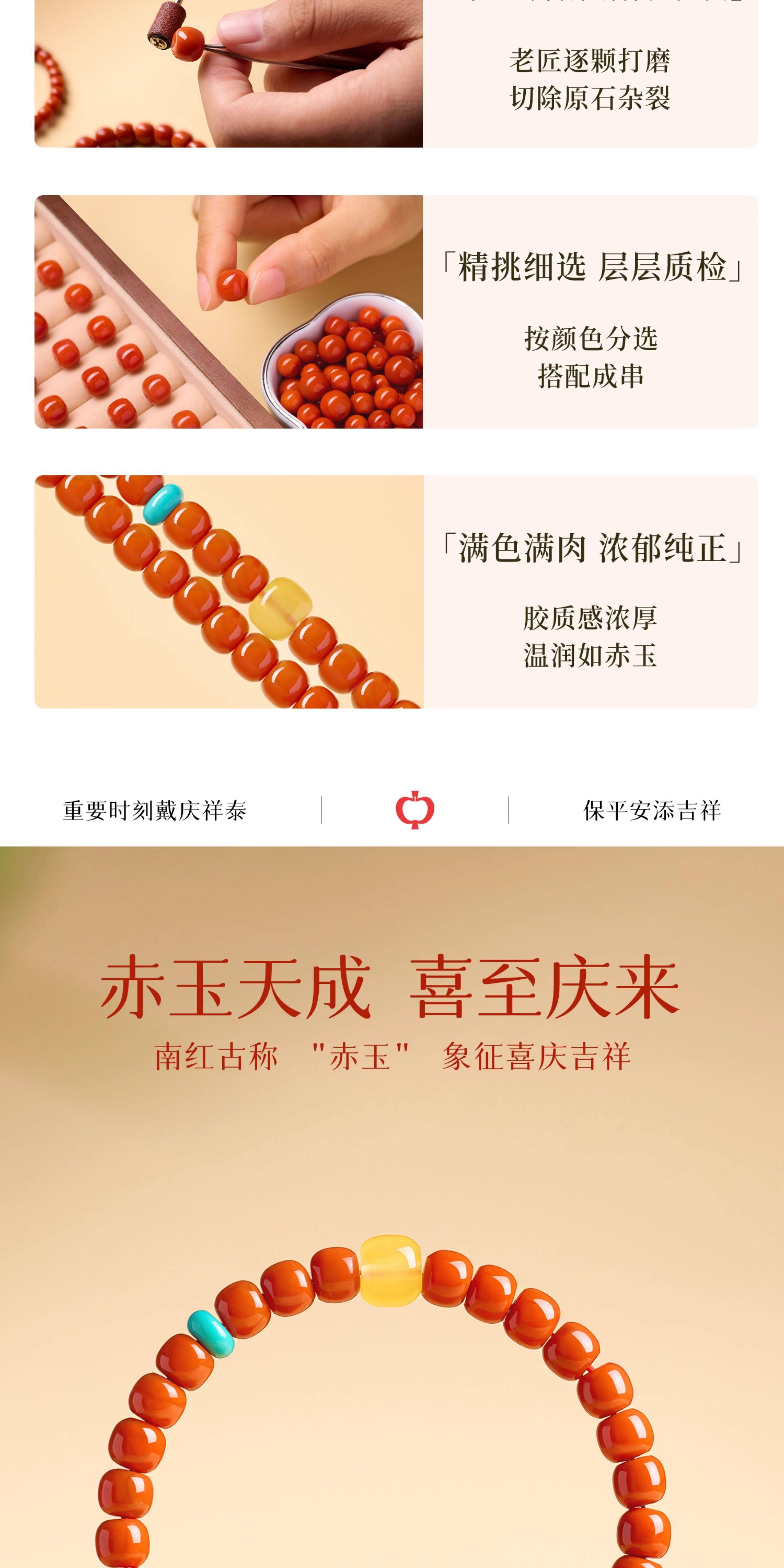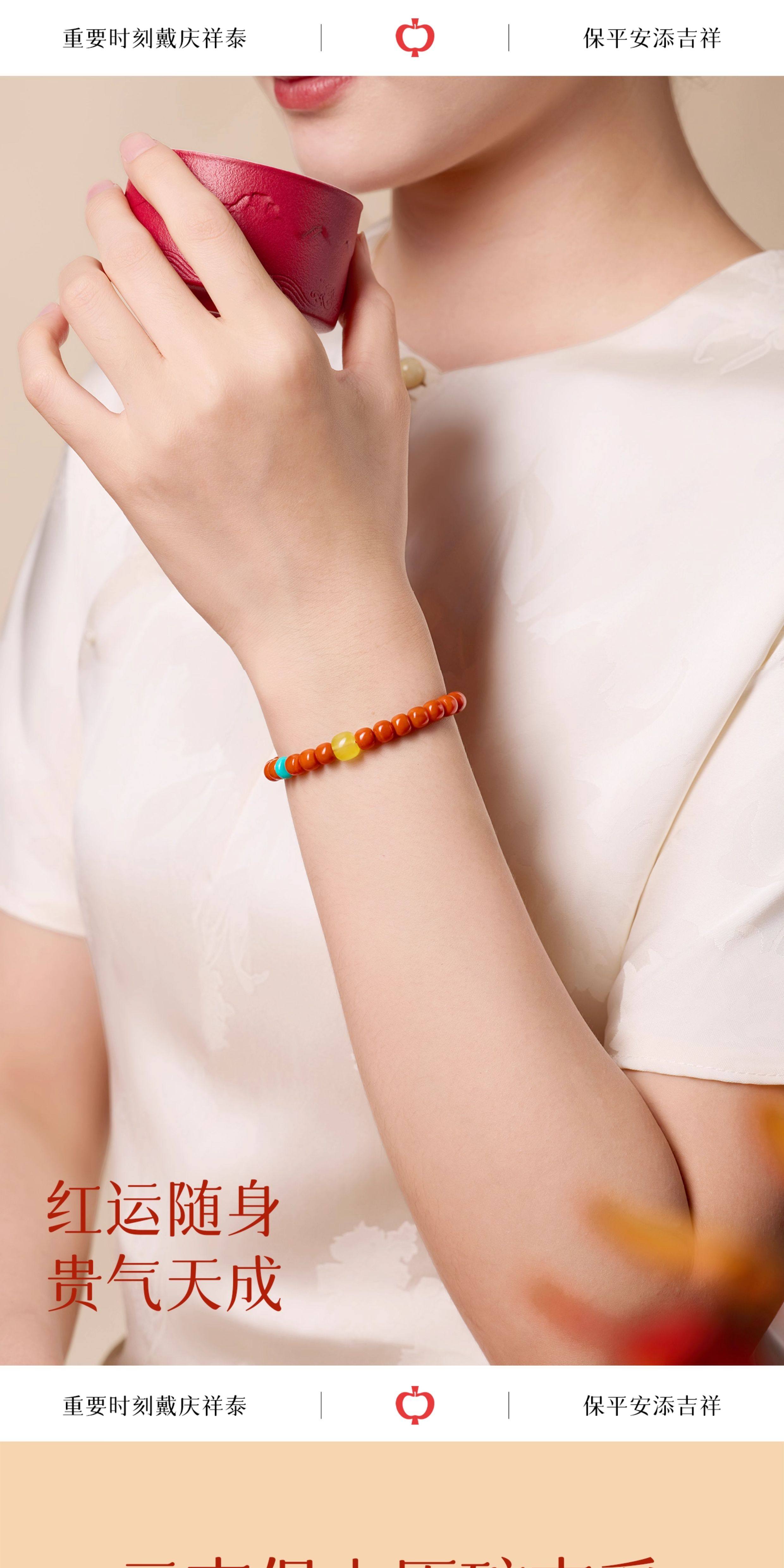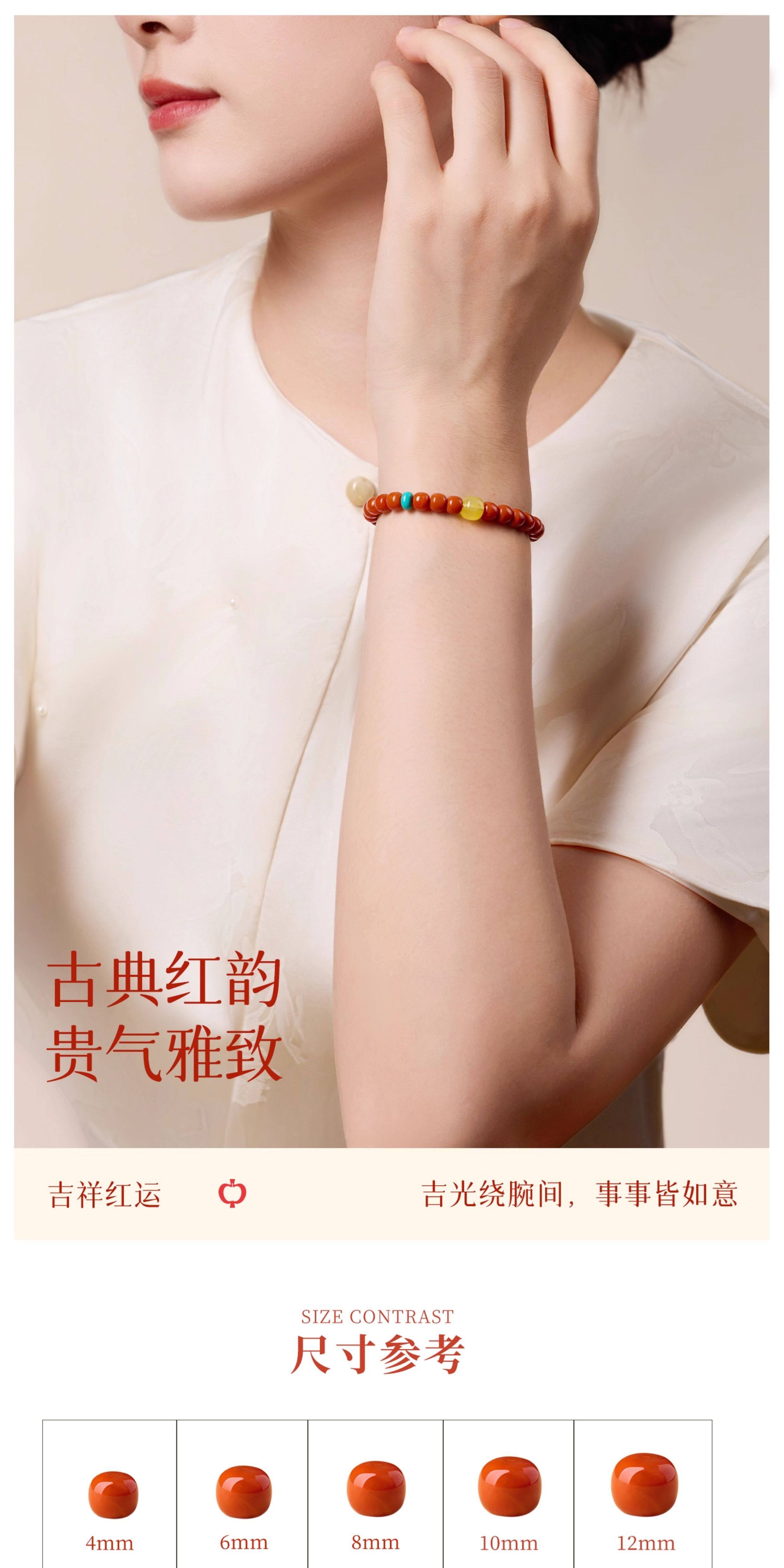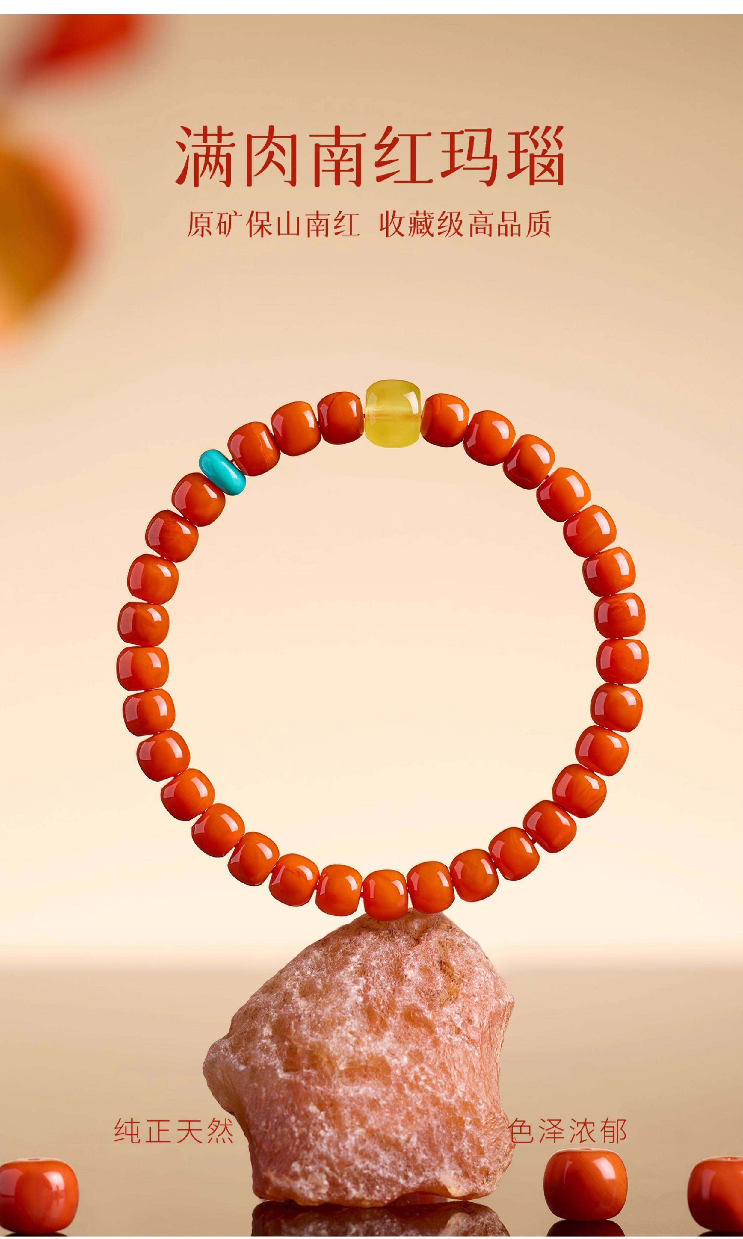 Qingxiangtai Shishi Ruyi Southern Red Agate Bracelet Natural Yunnan Bracelet for Women Red Agate Zodiac Year of the Horse Bracelet
