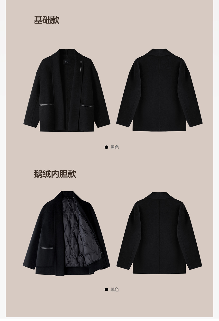 Herbel/Black and White Woolen Coat for Men, 2025 Winter New Warm Coat with Scarf Collar, Wool Coat