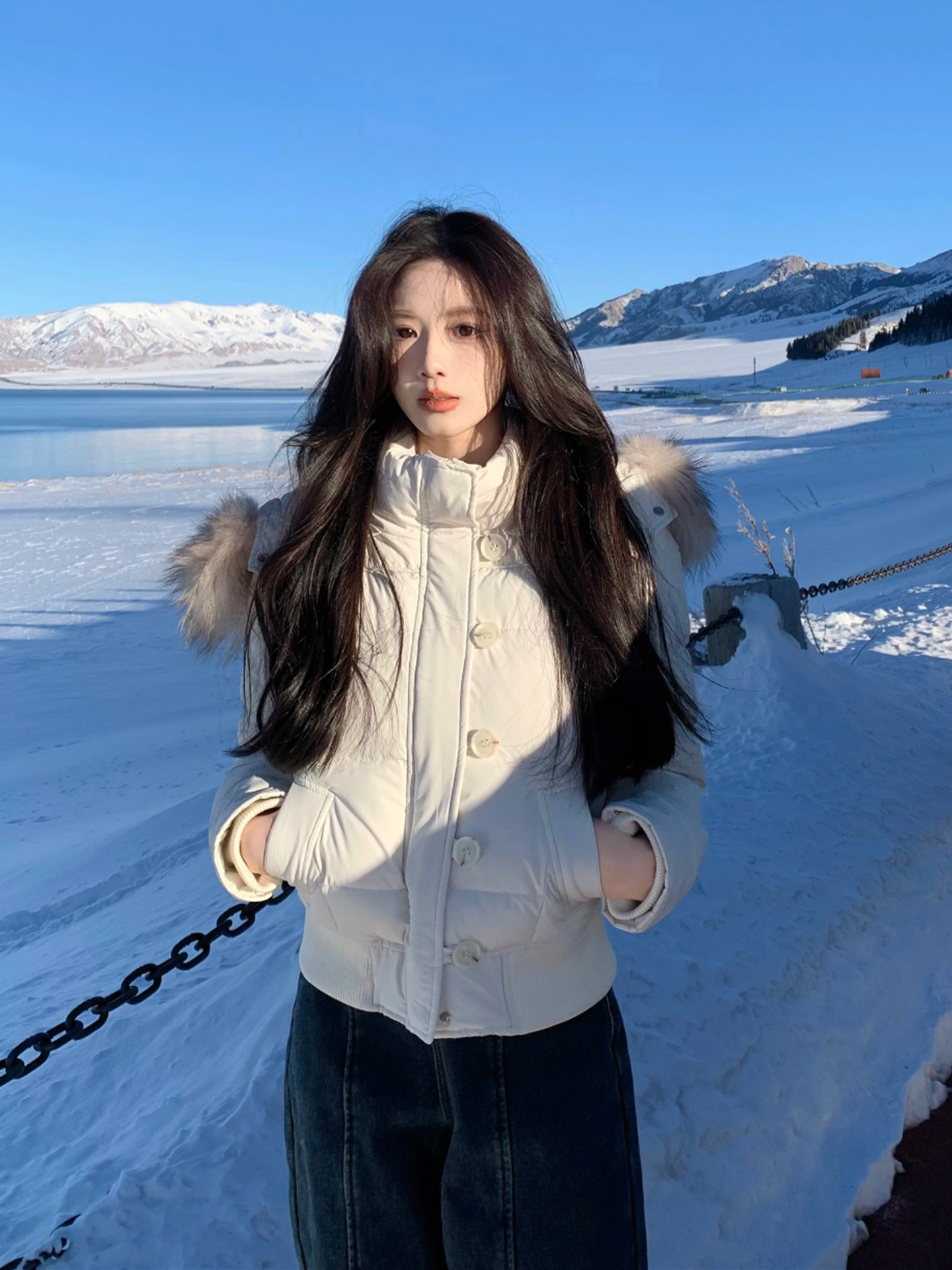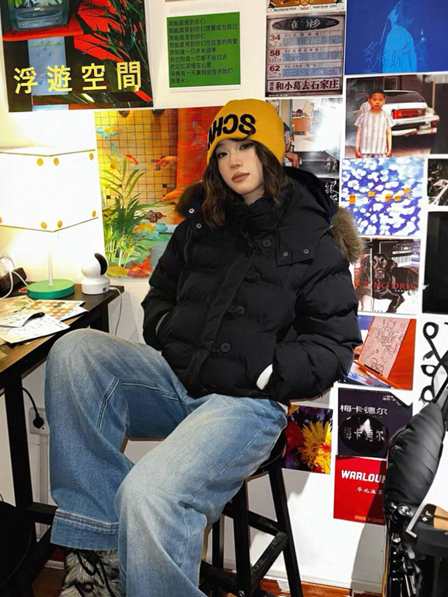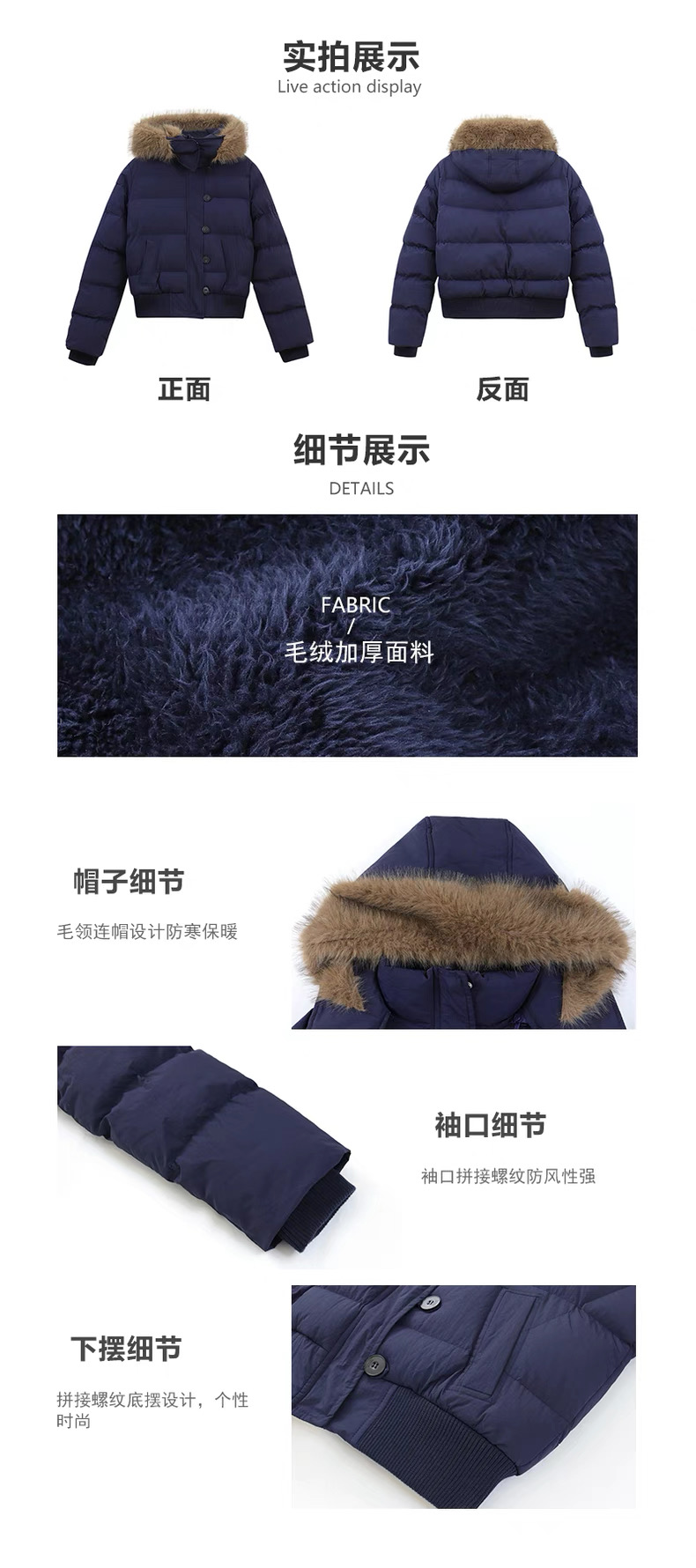 Winter down Cotton Jacket for Women 2025 New Style, Fleece-Lined and Thickened, American Short Style, Petite Size, Warm Cotton Coat and Jacket