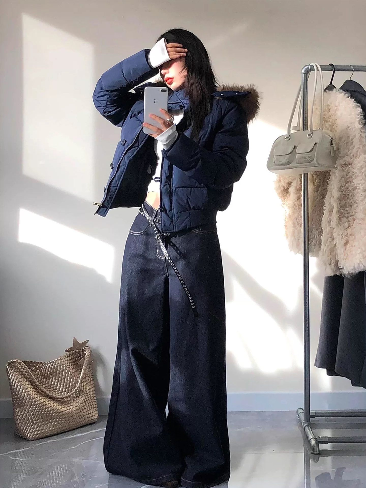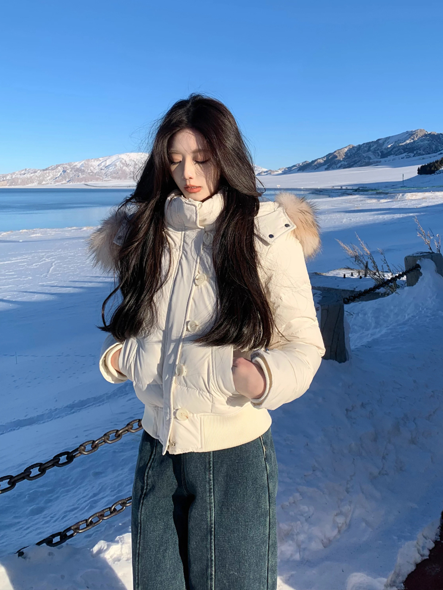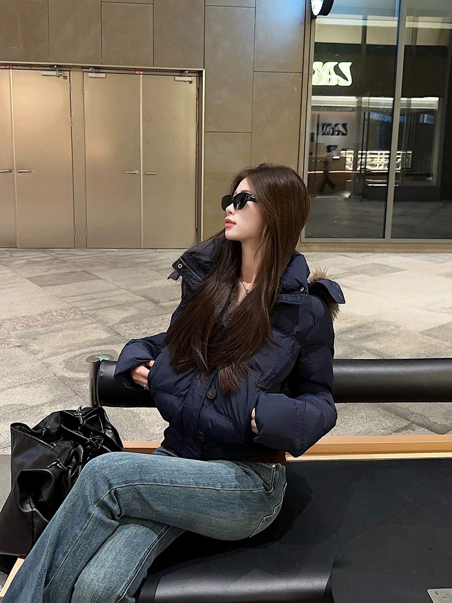 Winter down Cotton Jacket for Women 2025 New Style, Fleece-Lined and Thickened, American Short Style, Petite Size, Warm Cotton Coat and Jacket