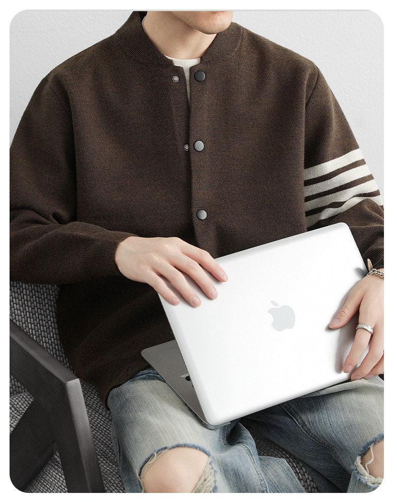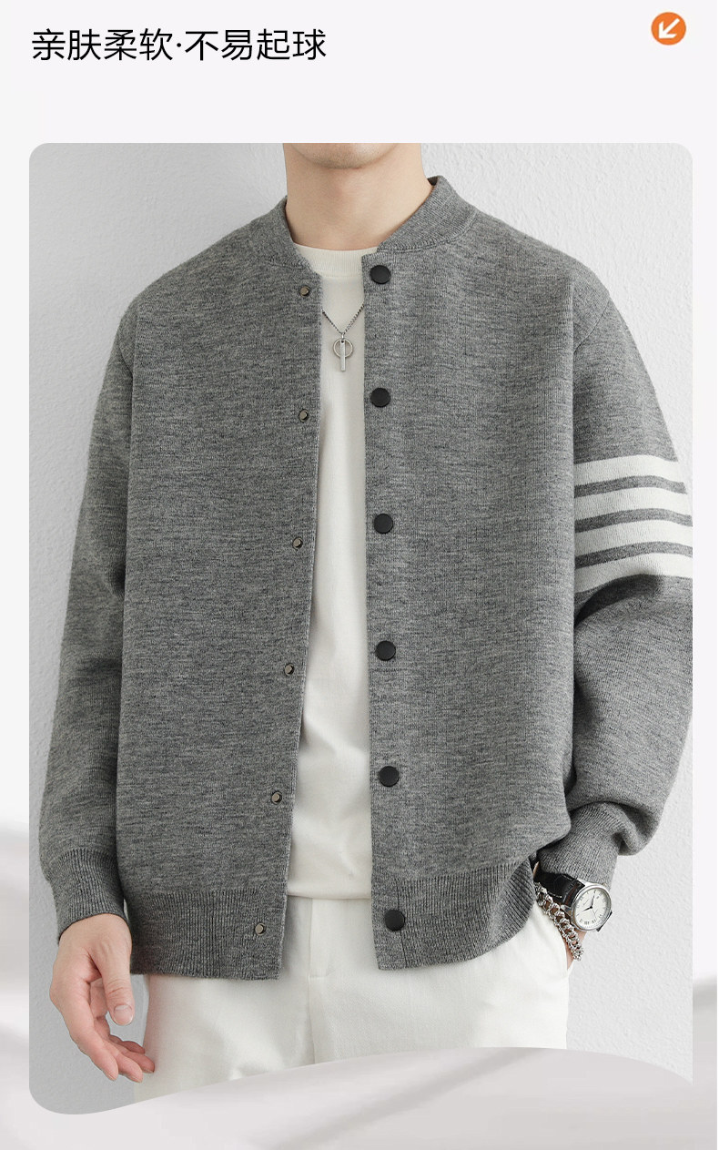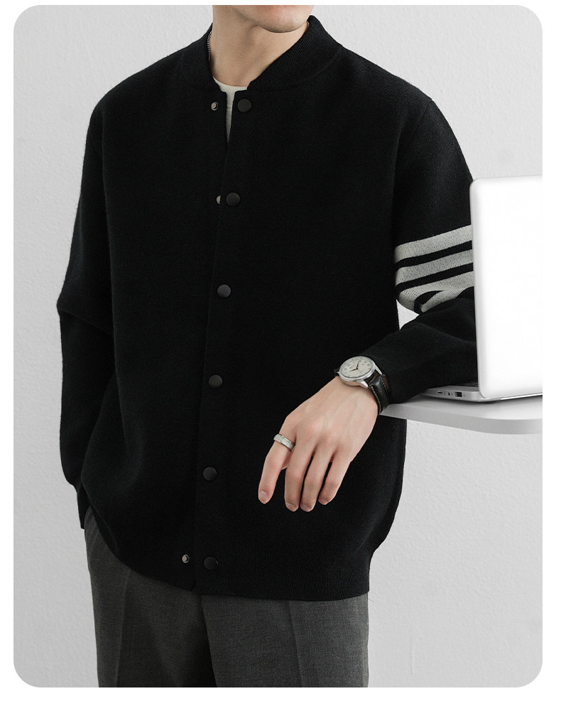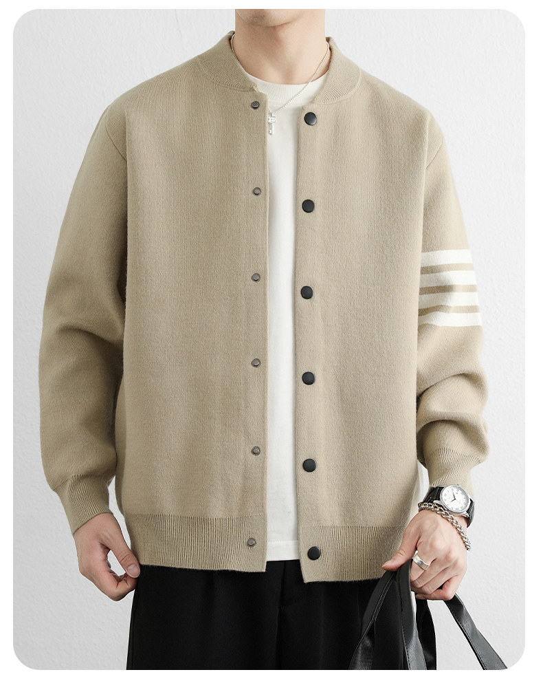 Romon Knitted Cardigan Jacket for Men, New Spring and Autumn Sweater, Loose Casual Jacket, Autumn and Winter Sweater, Baseball Jacket
