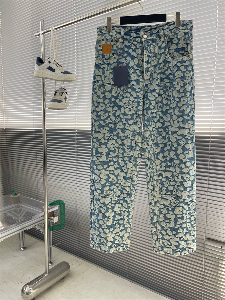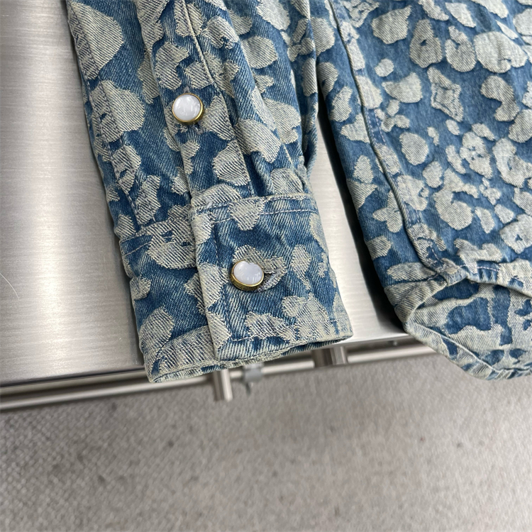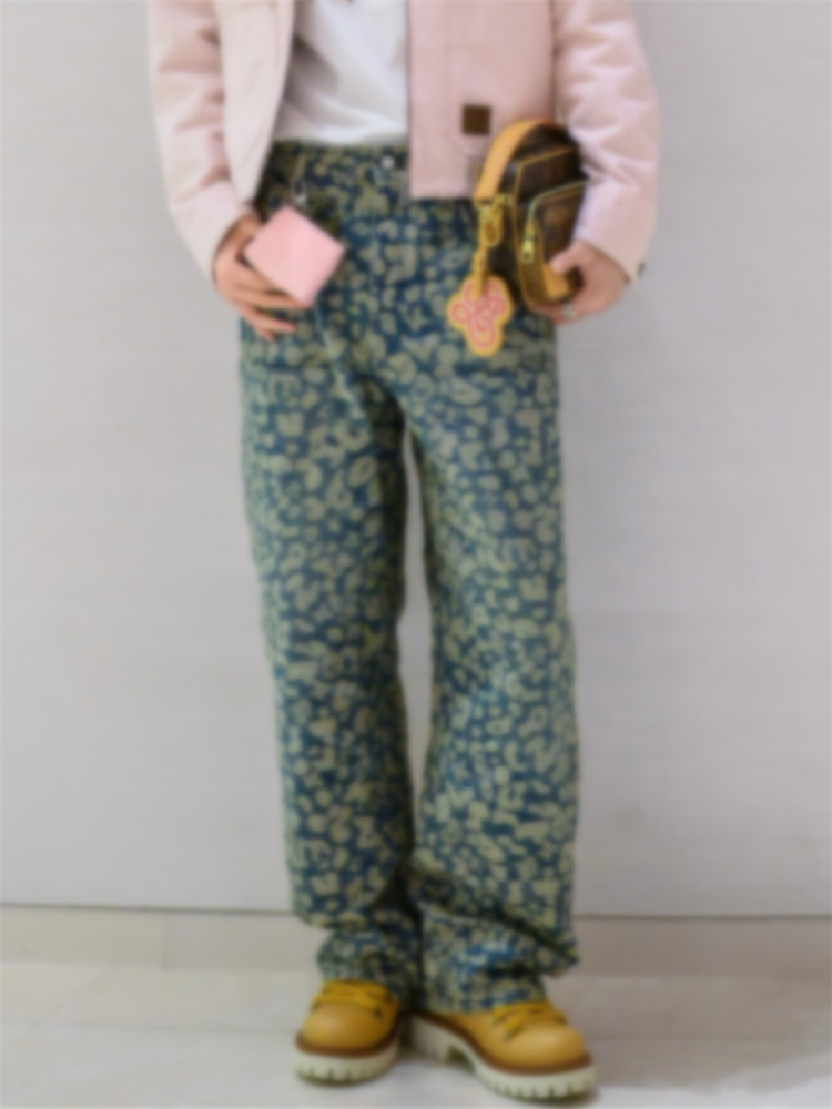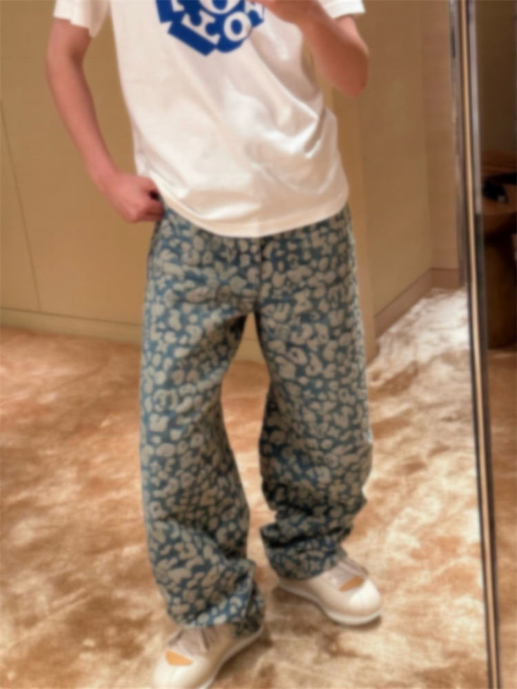 2025 Autumn/Winter New European and American Trendy Brand Leopard Print Workwear Denim Jacket Men's Long Pants Loose Suit Women's