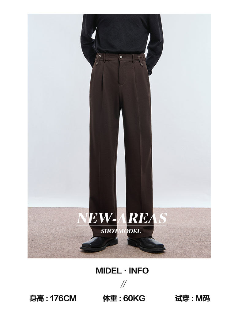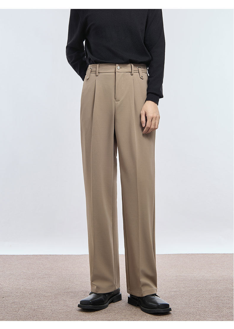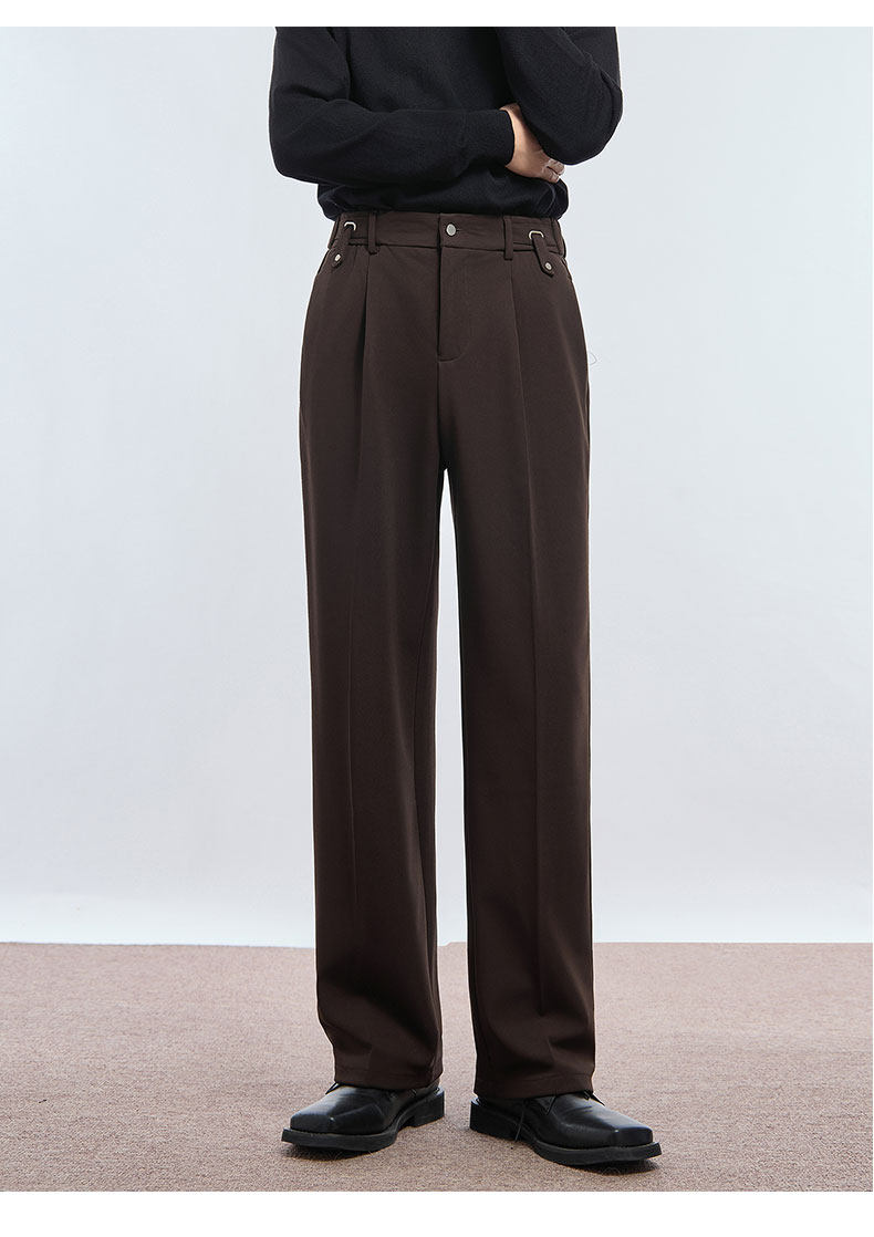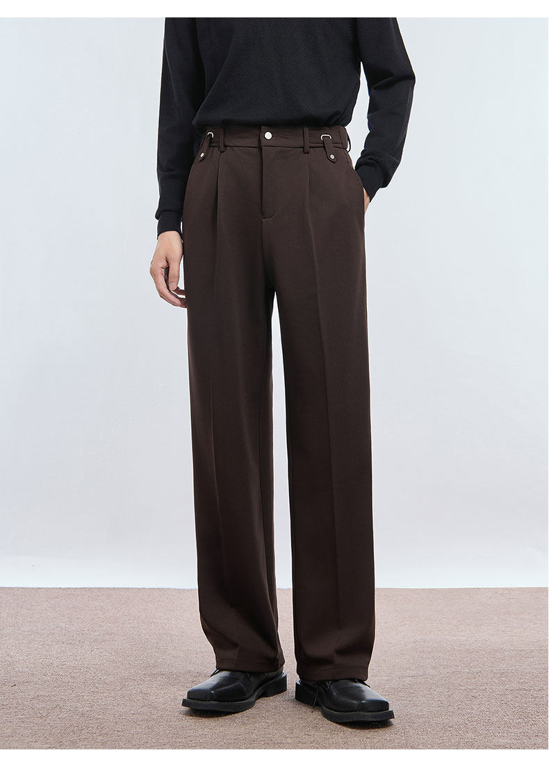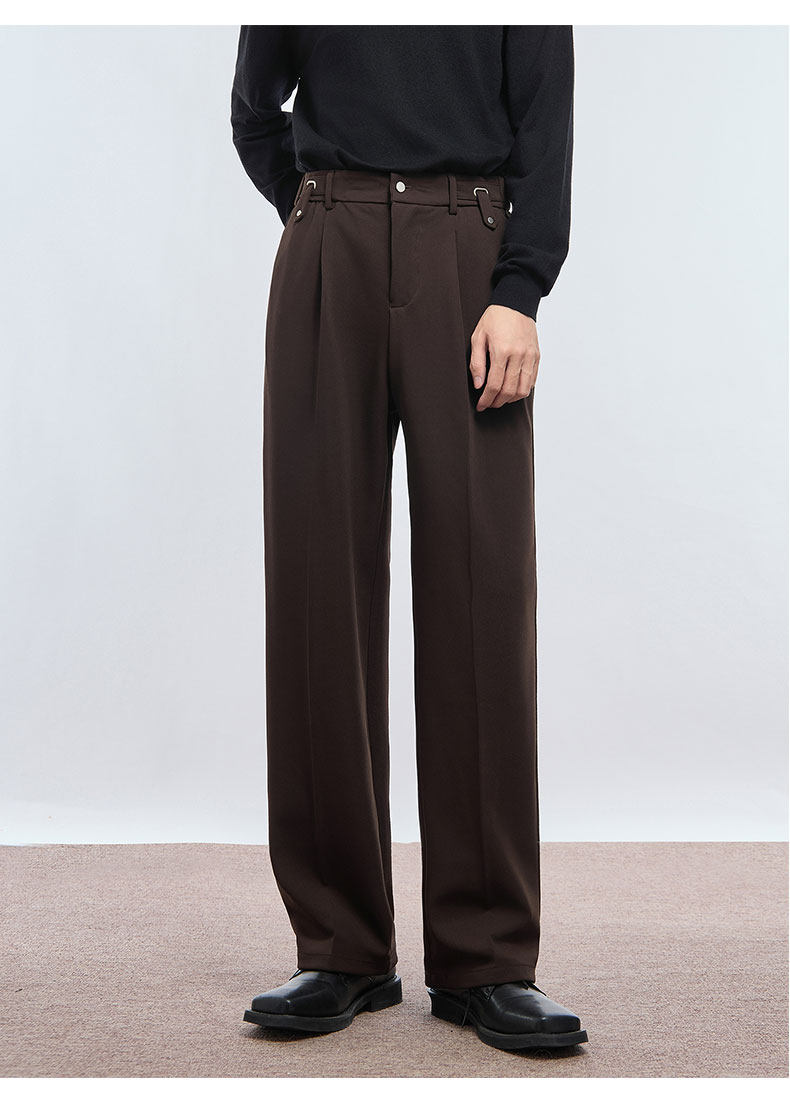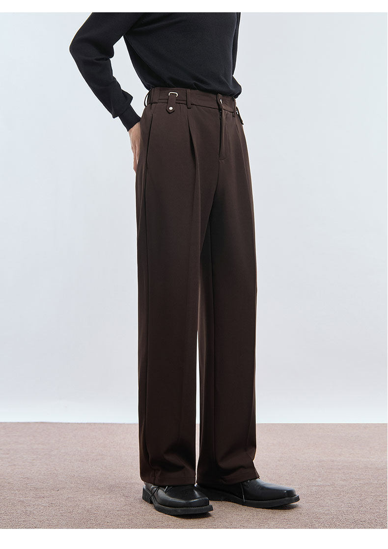 Newareas Spring and Autumn Pleated Design Coffee-Colored Drape Straight-Leg Dress Pants for Men, Old Money Style, Wrinkle-Free High-Waisted Suit Pants
