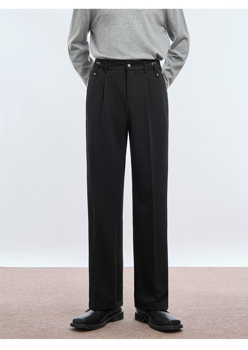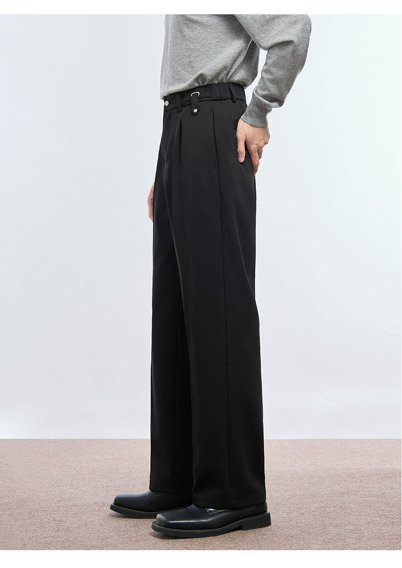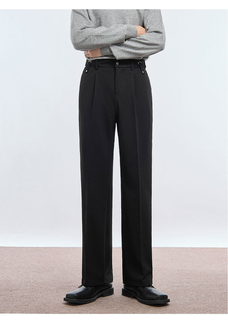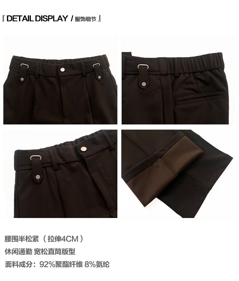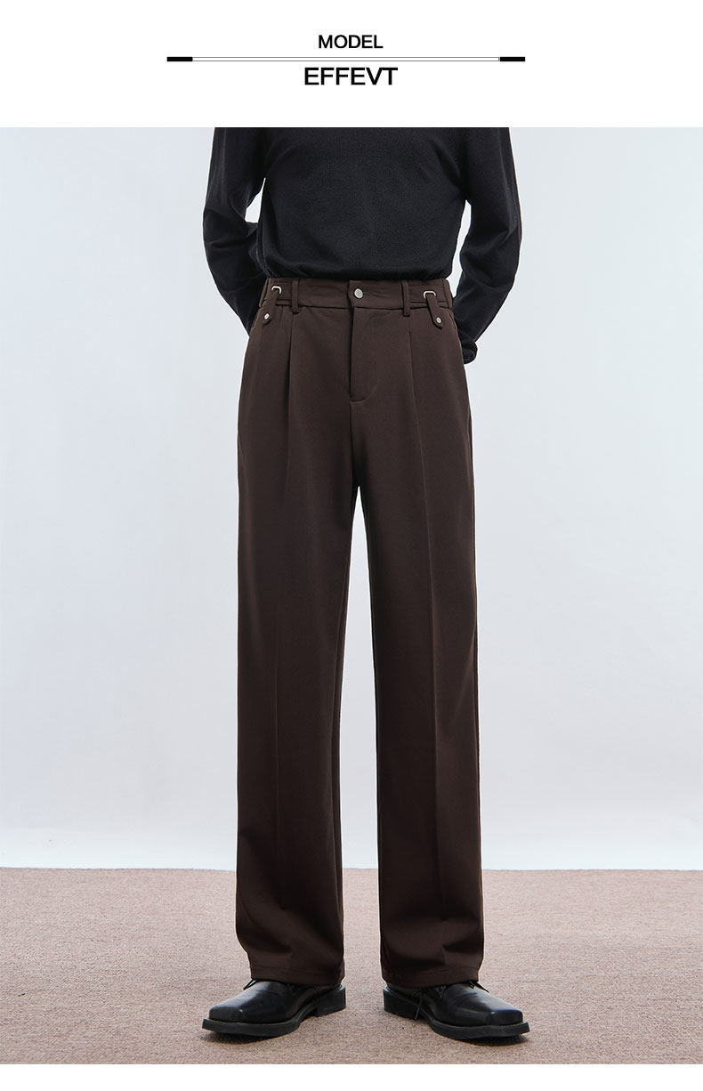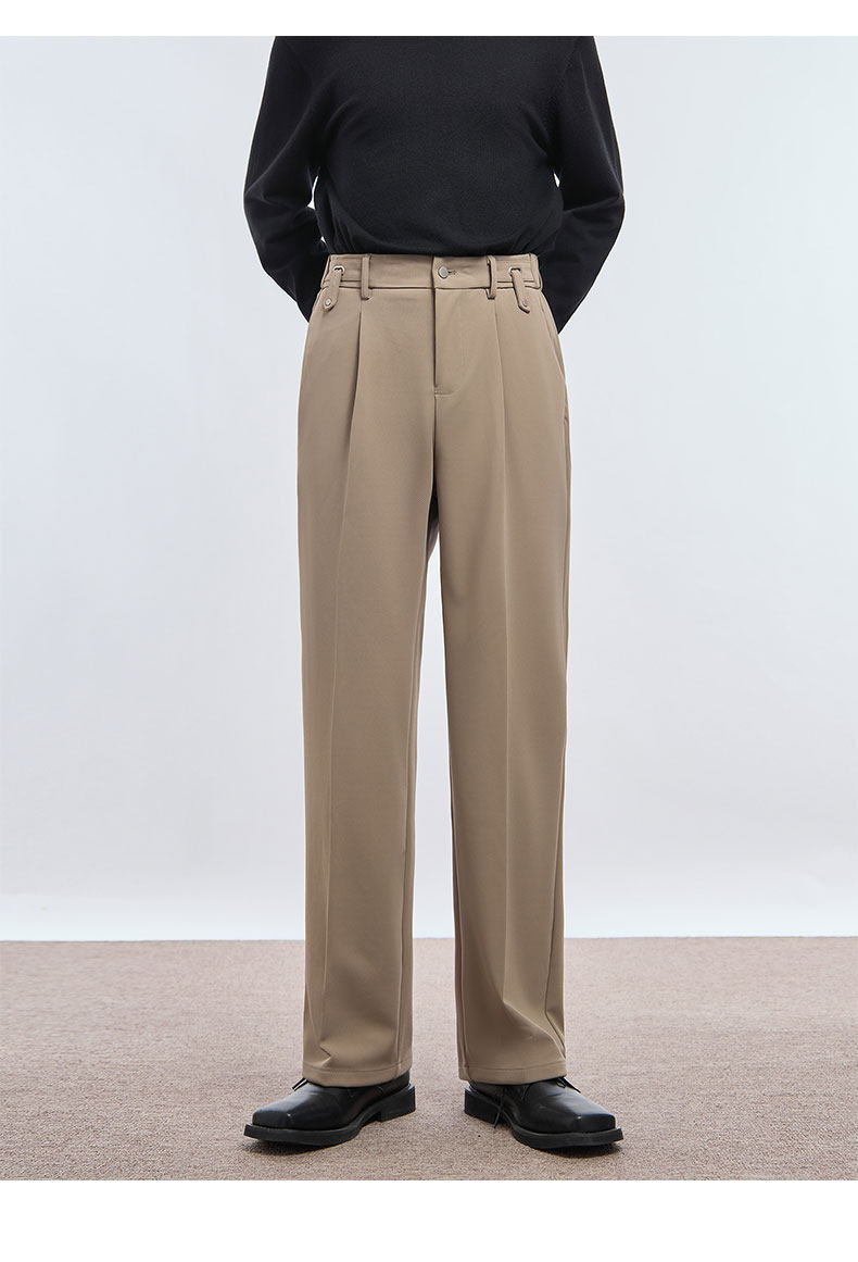 Newareas Spring and Autumn Pleated Design Coffee-Colored Drape Straight-Leg Dress Pants for Men, Old Money Style, Wrinkle-Free High-Waisted Suit Pants