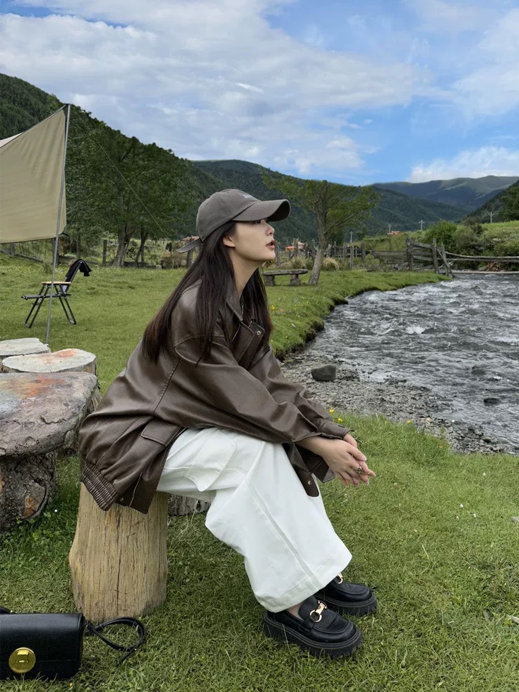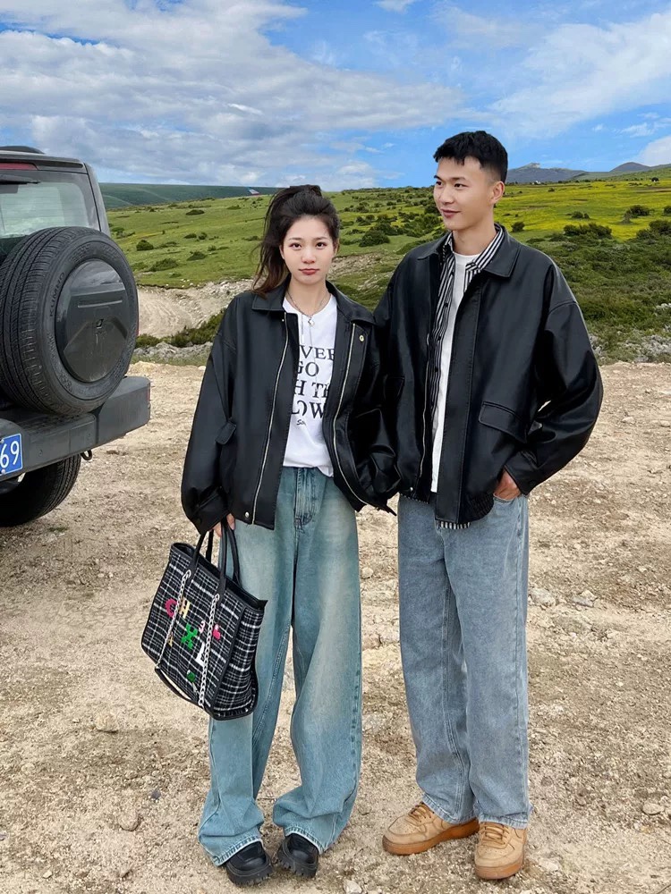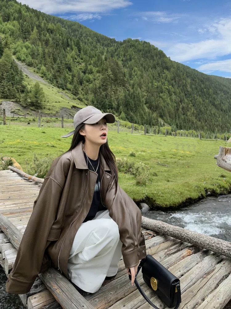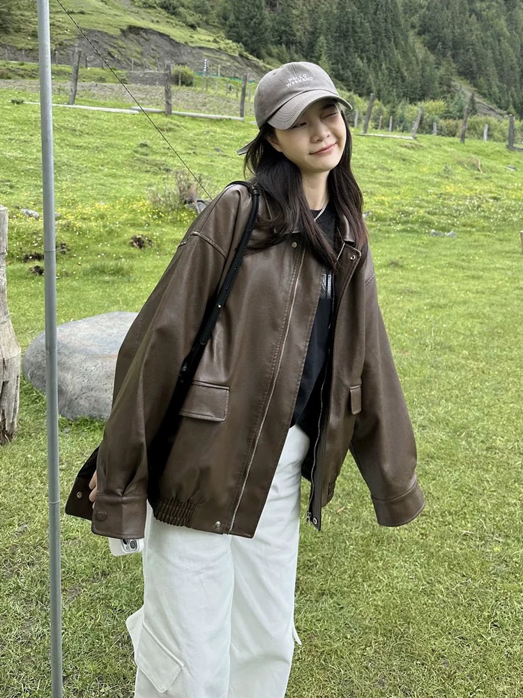 Women's Leather Jacket 2025 New Autumn and Winter High-End Style Petite Fleece-Lined Thickened Biker Leather Jacket Top