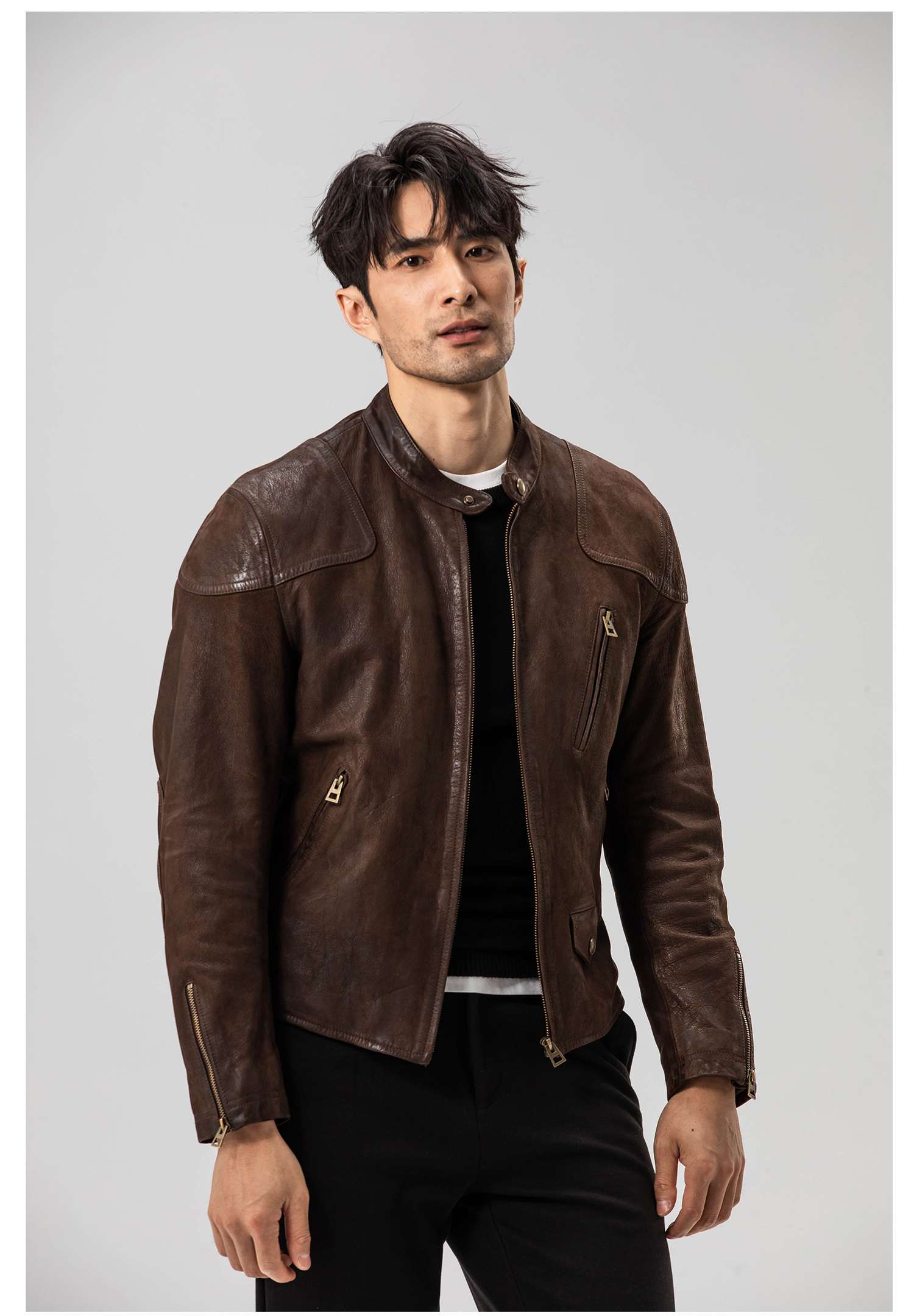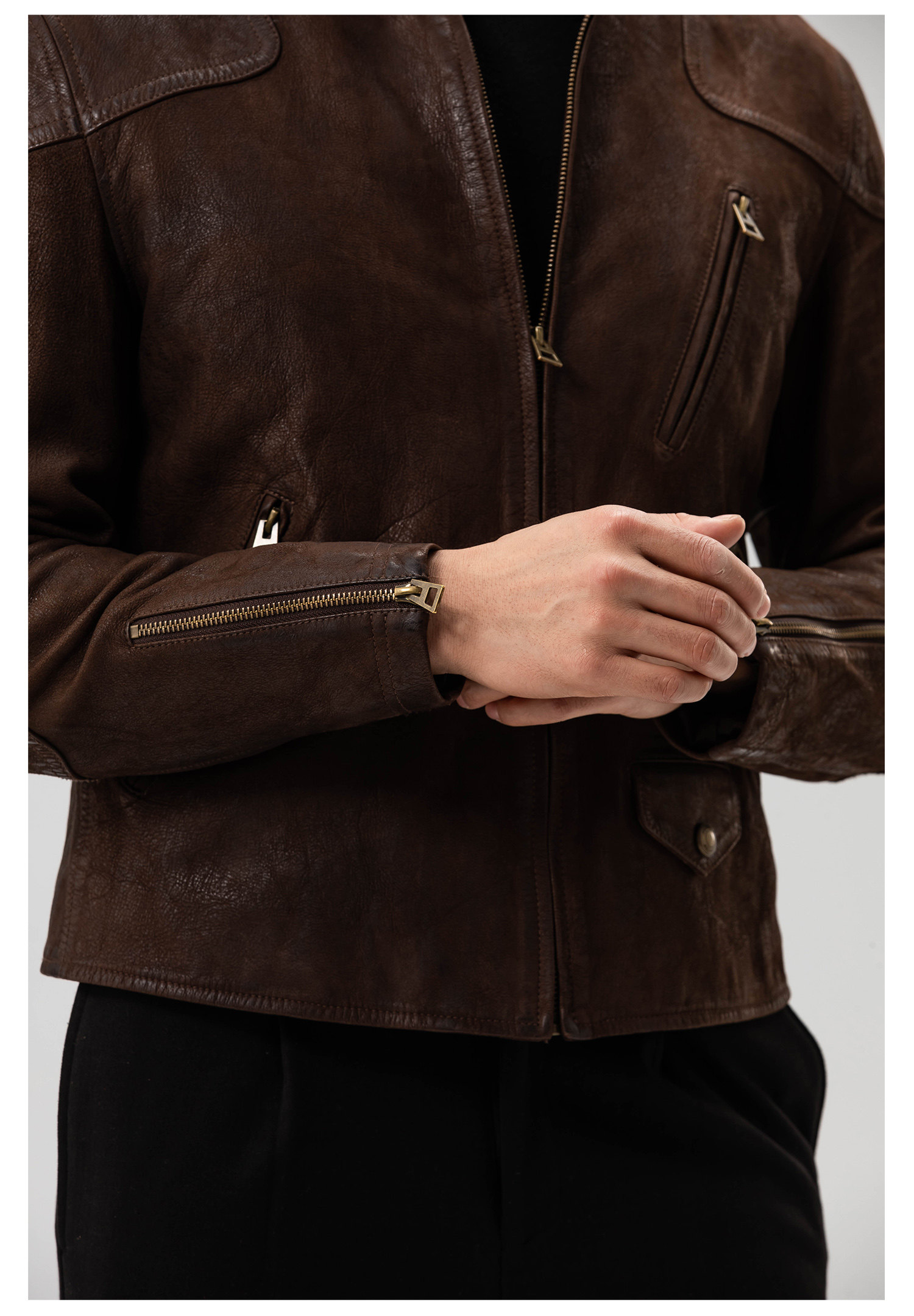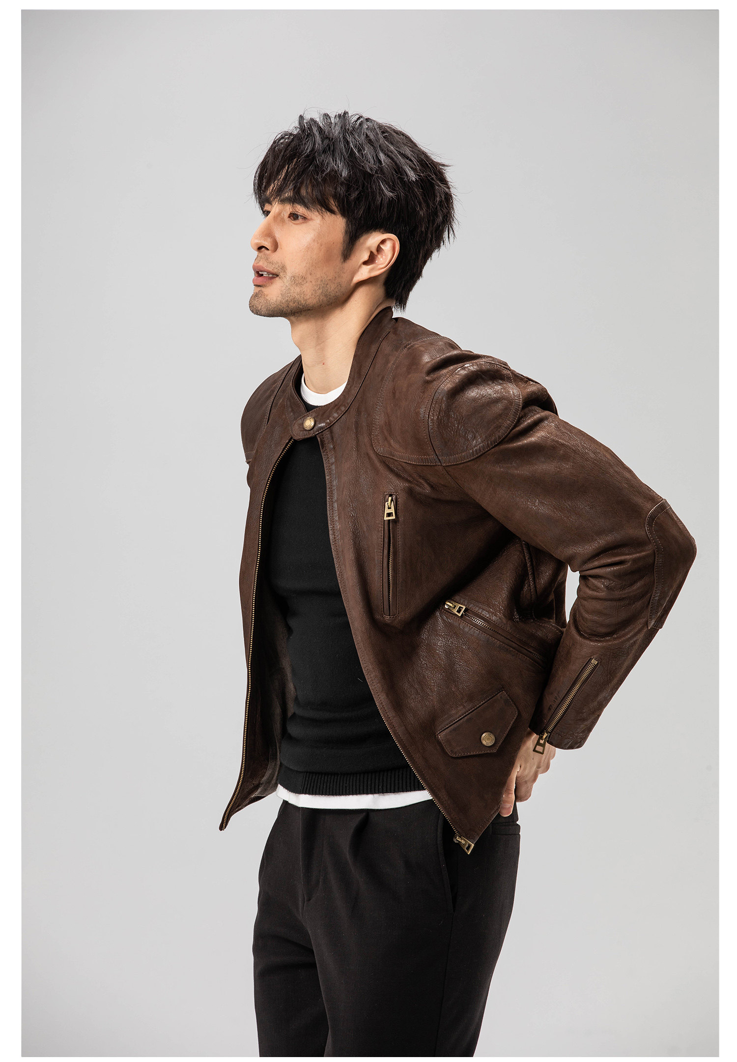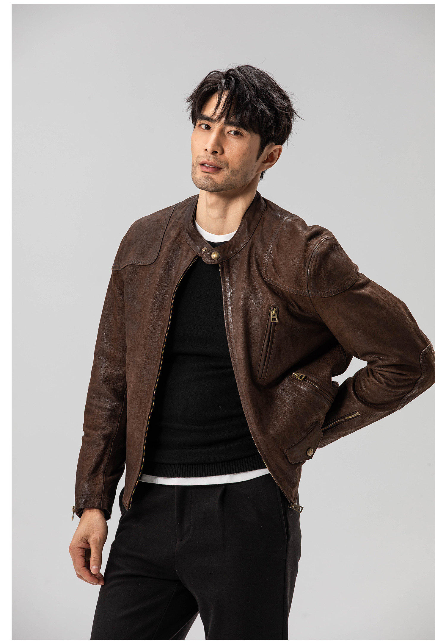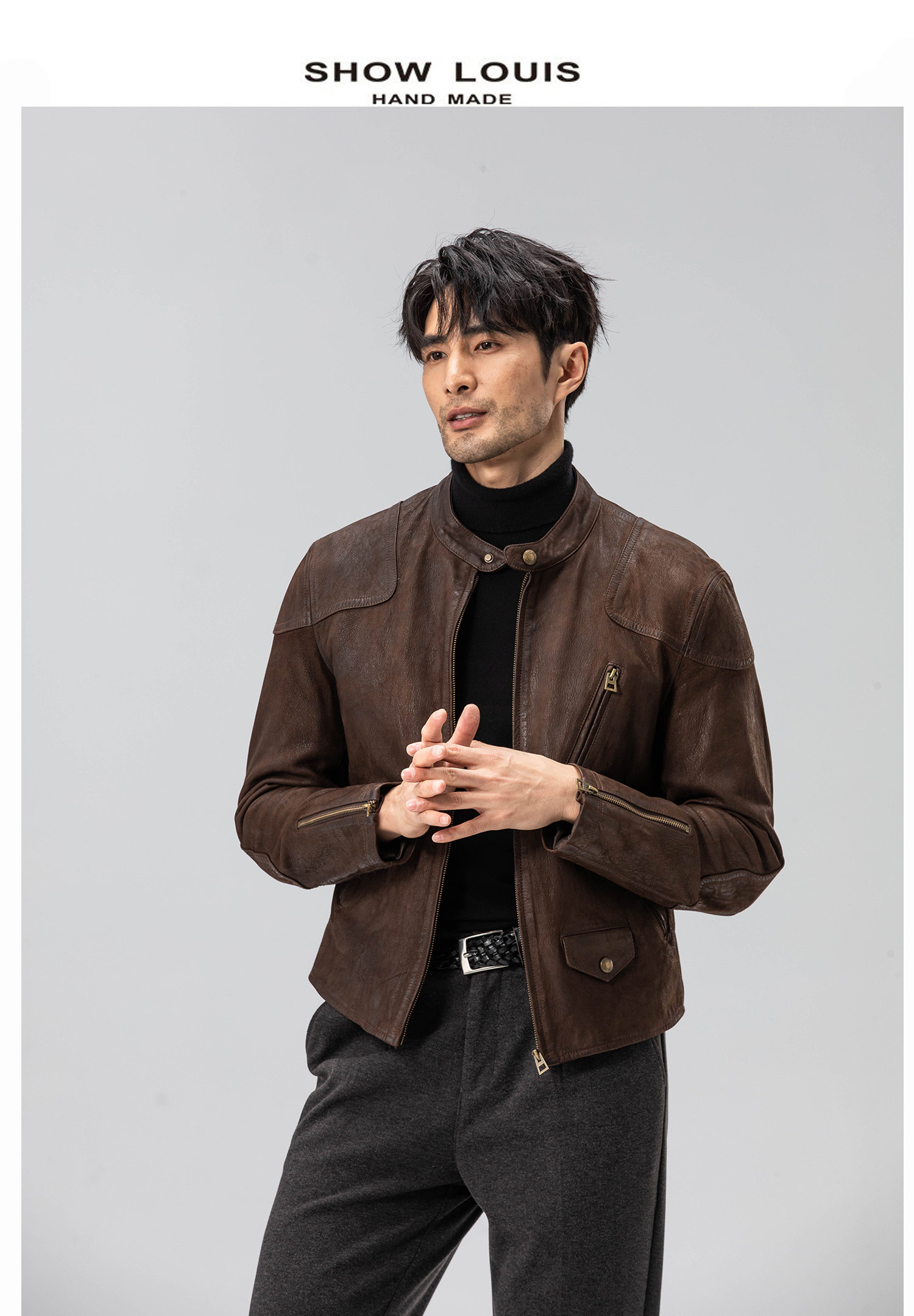 Show Louis Venom Rrl Modified Short Goatskin Heavy Washed Vintage Motorcycle Leather Jacket