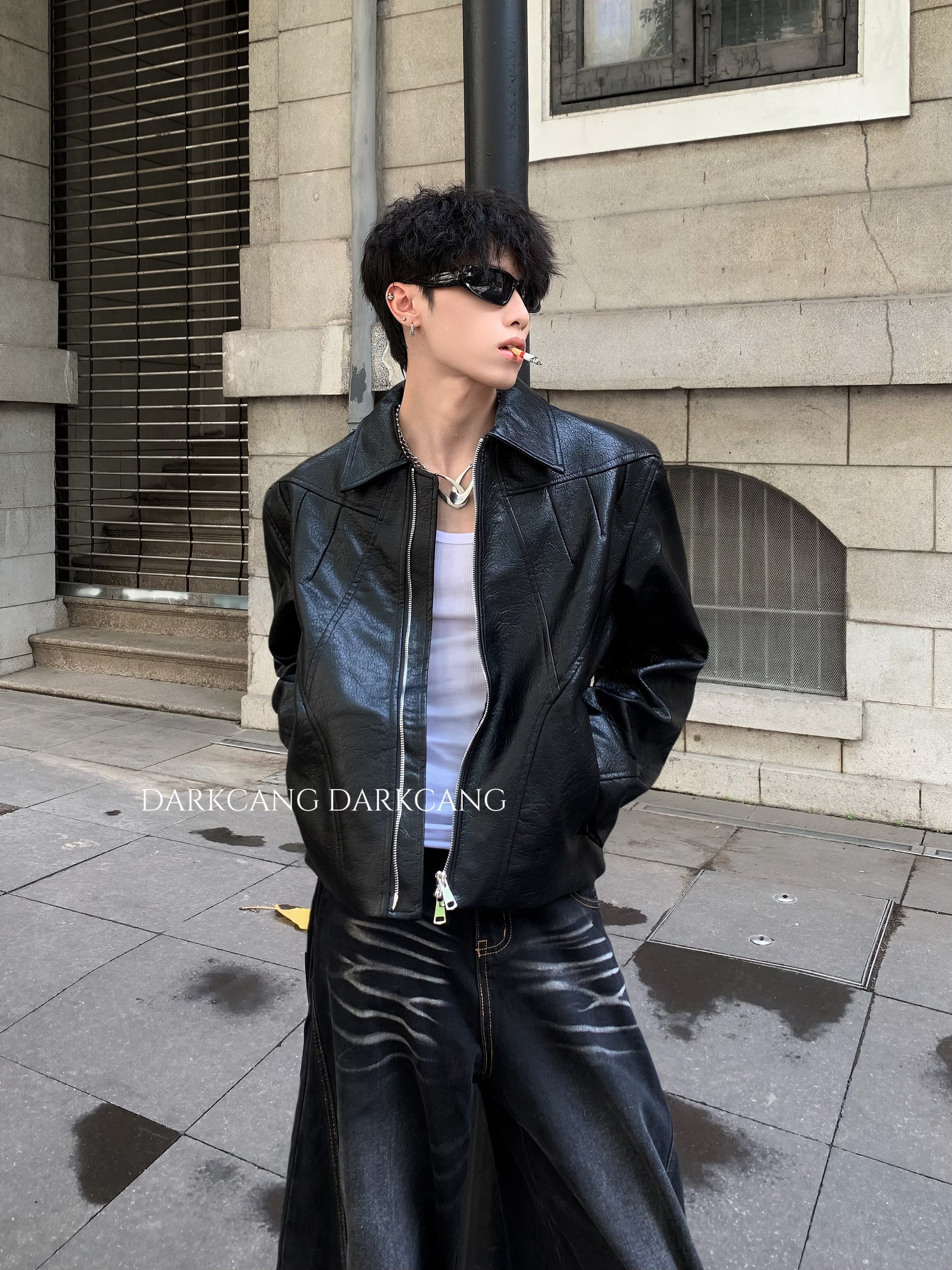 Heican Society/American-Style Heavy-Duty Design Short Padded Leather Jacket for Men, High-End, Cool and Clean-Fit Coat