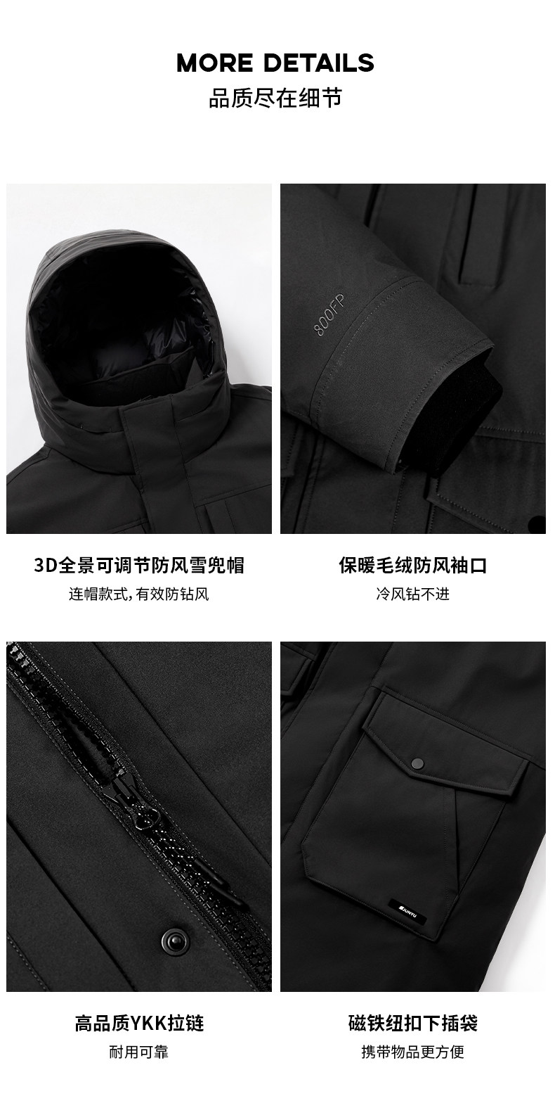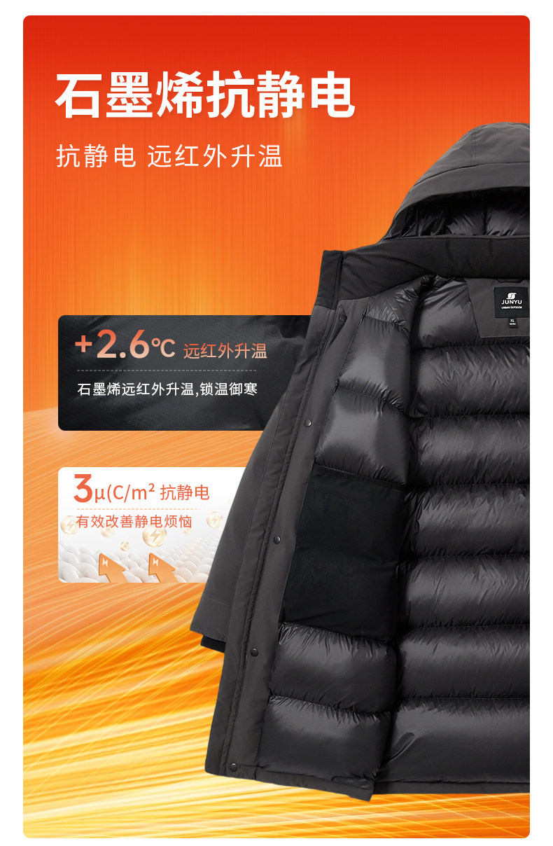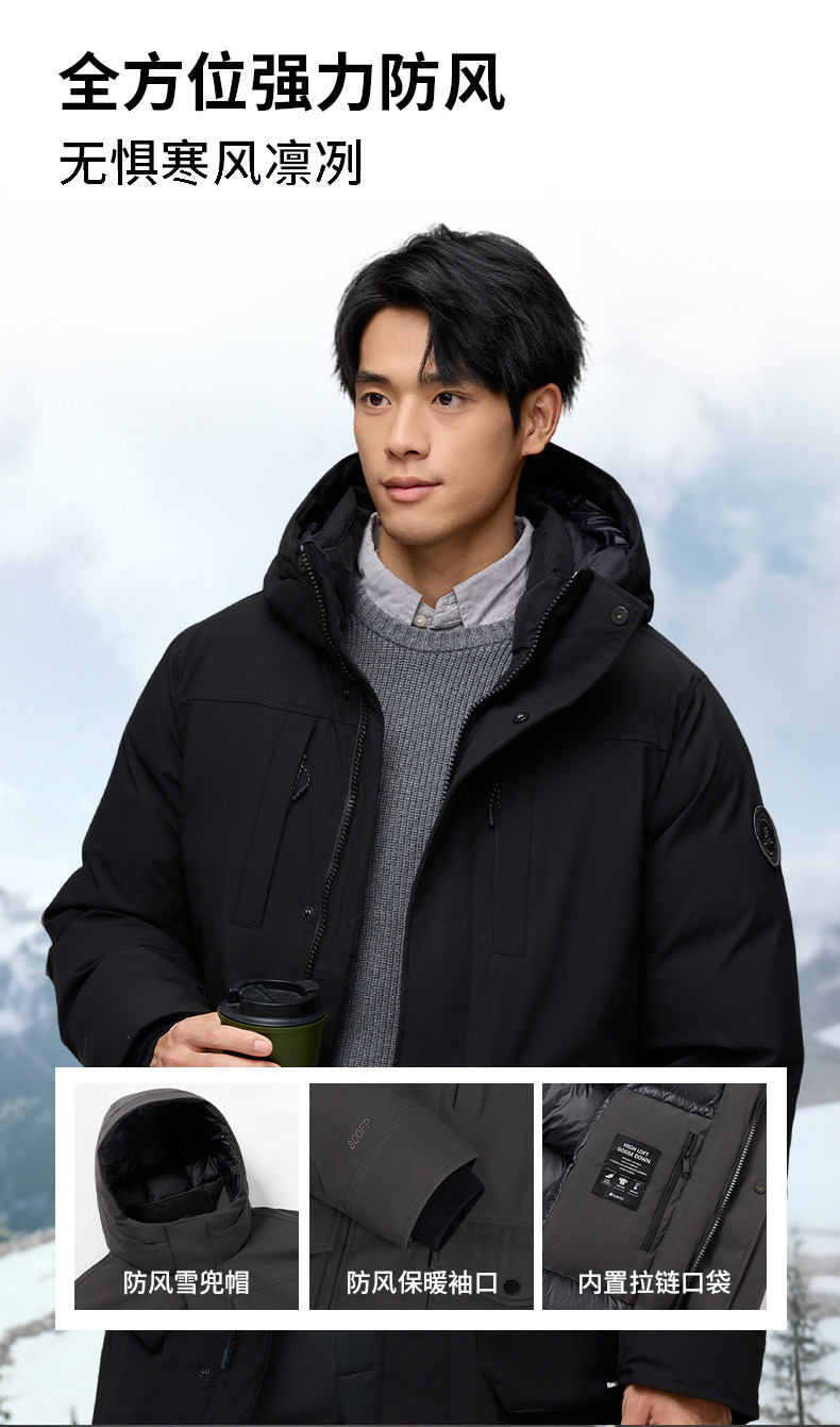Junyu 800 Fill Power down Jacket for Men, Mid-Length, 2025 New Model, Winter Thickened Warm Business Goose down Jacket for Men 337
