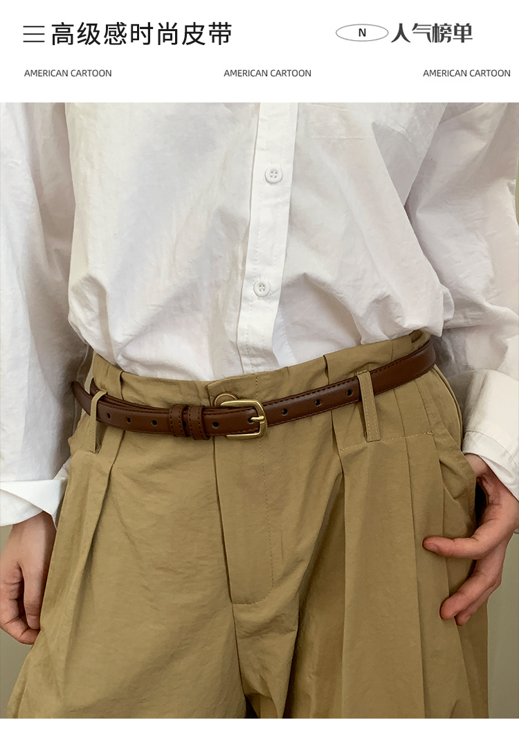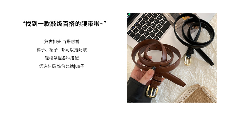 Korean-Style Simple Thin Black Belt for Women, Vintage Versatile Fashion Belt for Men, Suitable for Jeans and Skirts Accessories