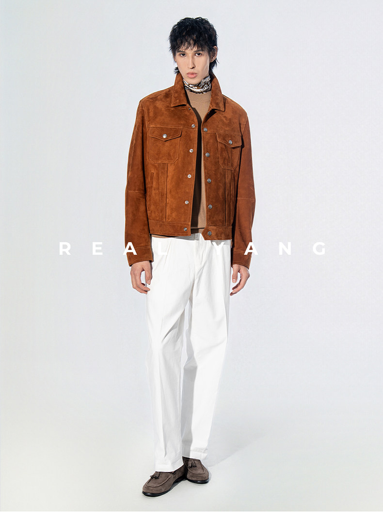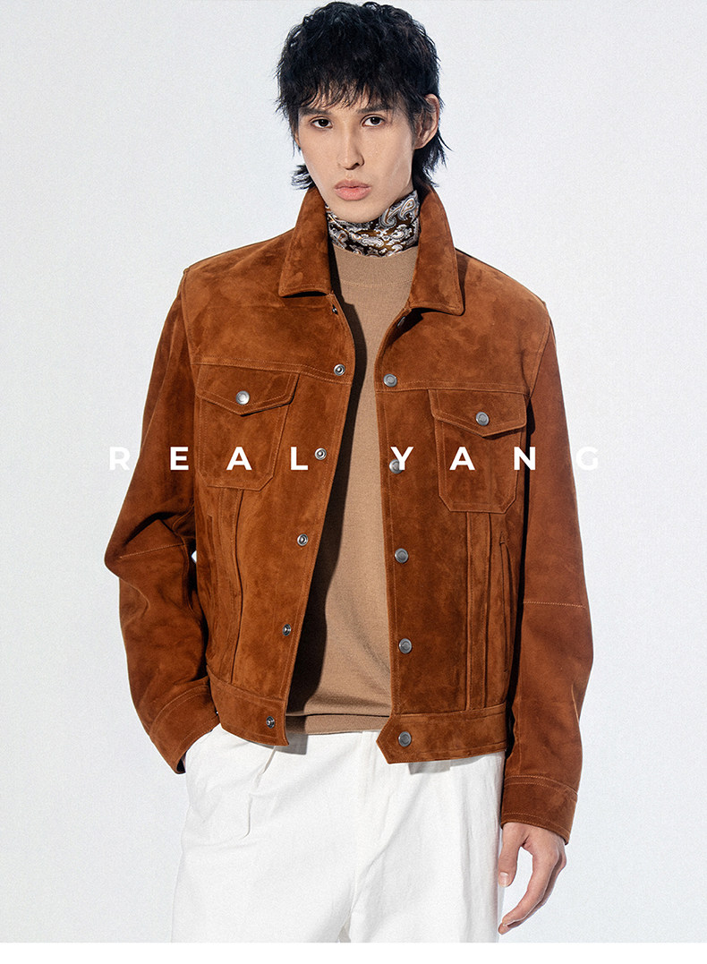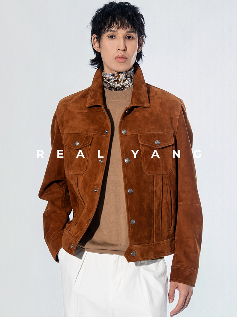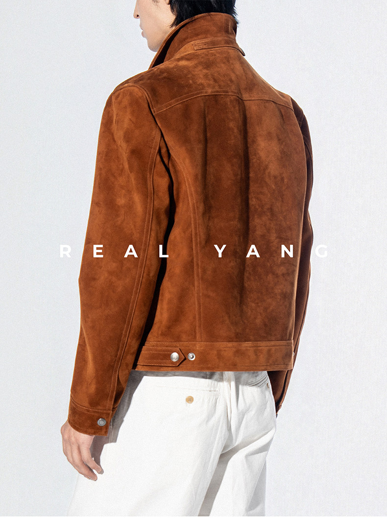 2026 Spring New Product Tf Old Money Style Short Slim Fit Suede Genuine Leather Jacket Men's Outerwear