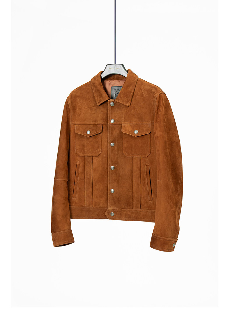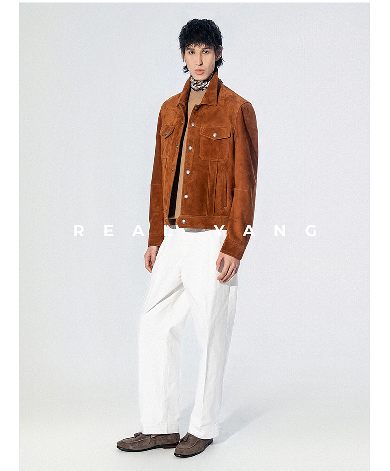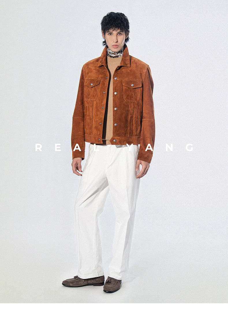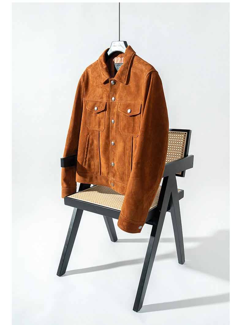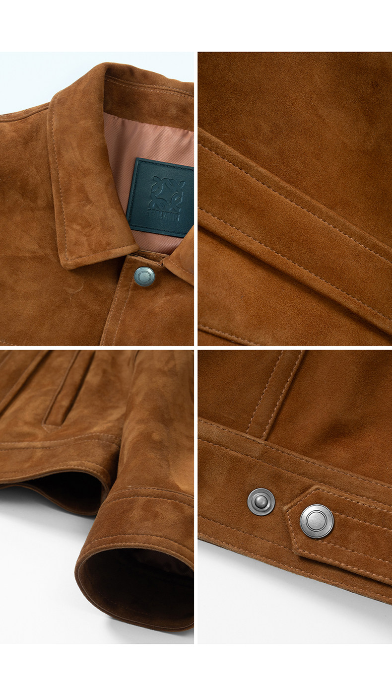2026 Spring New Product Tf Old Money Style Short Slim Fit Suede Genuine Leather Jacket Men's Outerwear