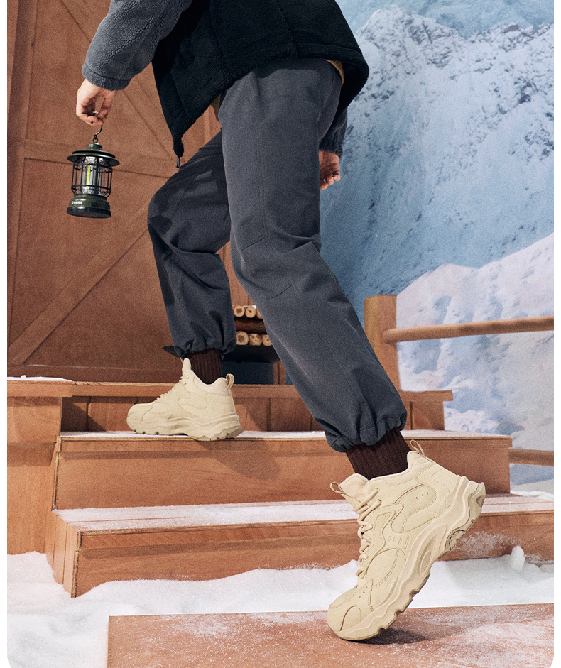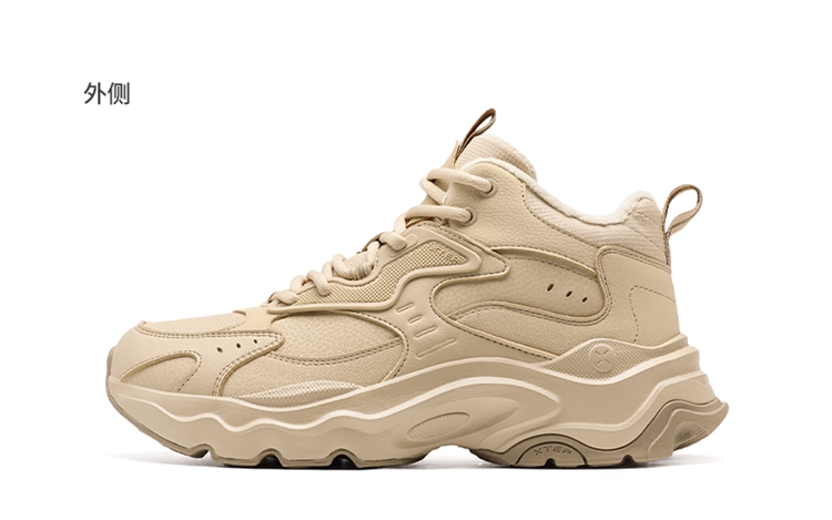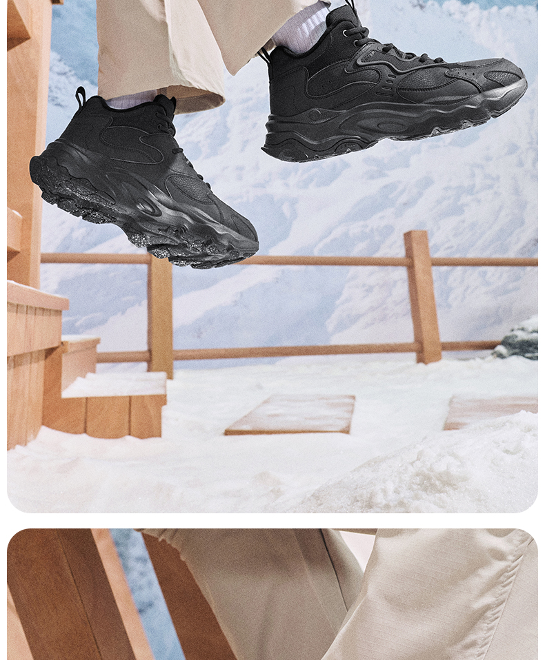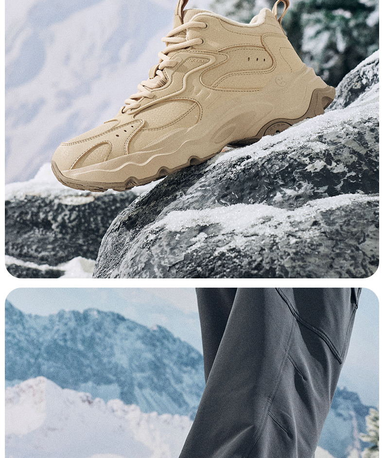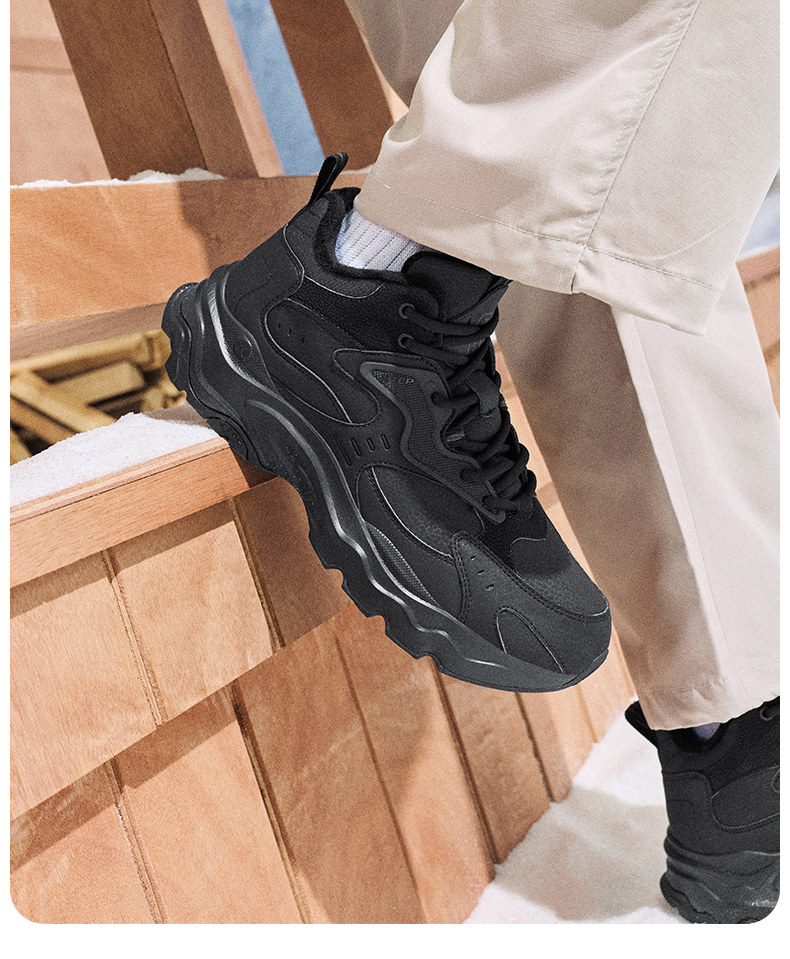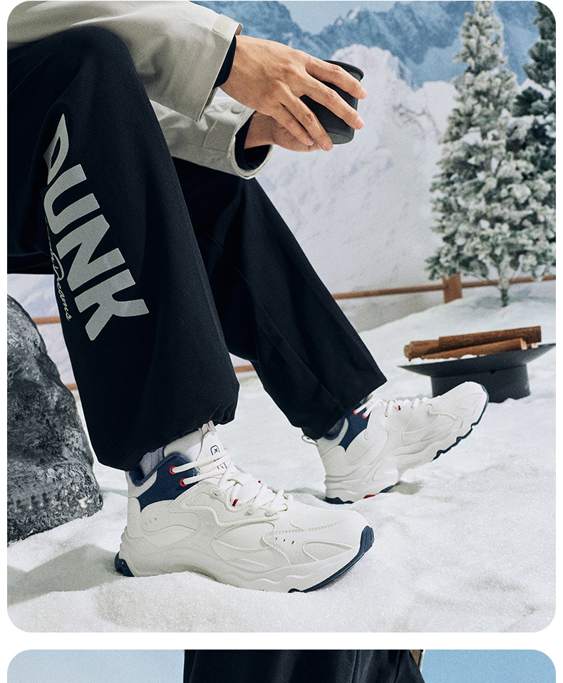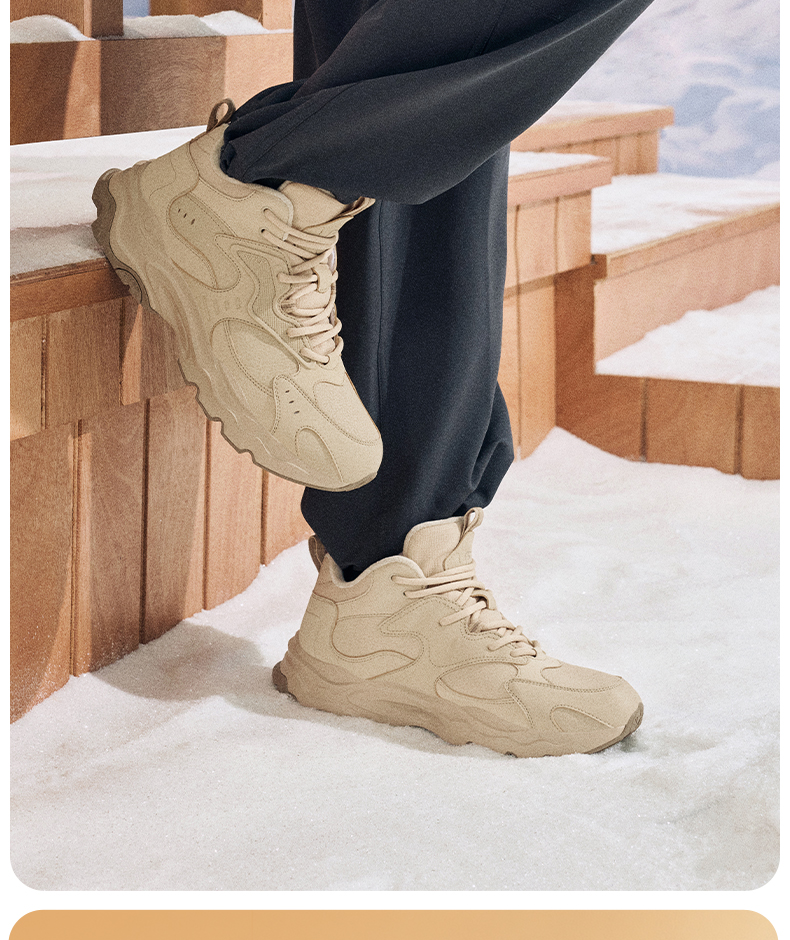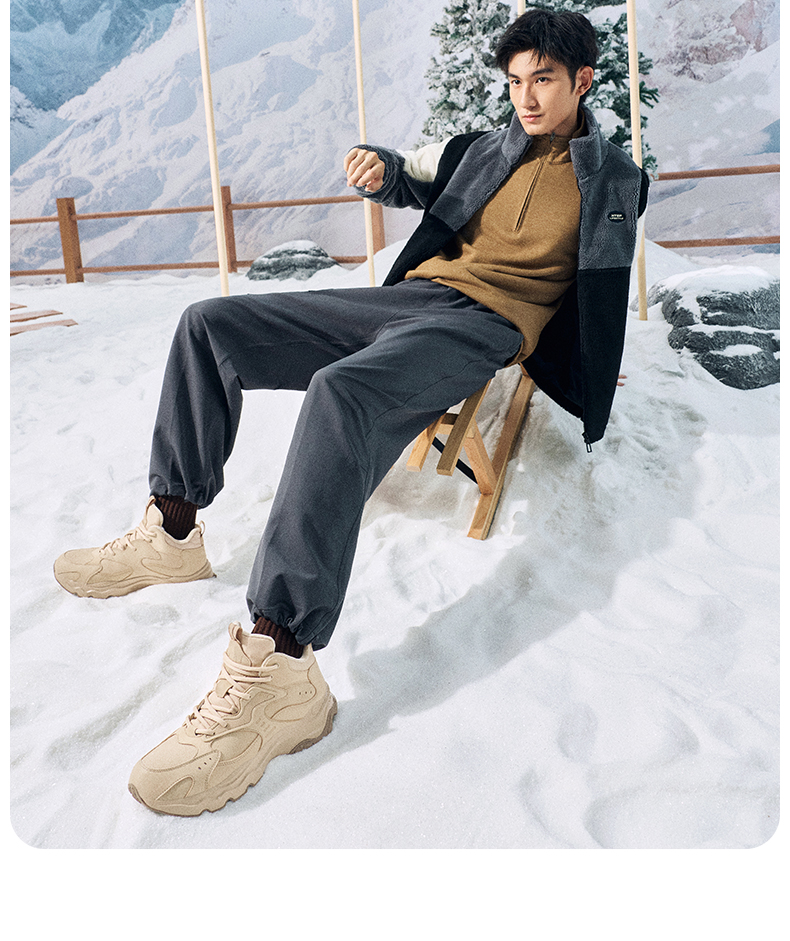 Xtep Nomadic Cotton Shoes Men's Winter High-Top Fleece-Lined Warm Dad Shoes Large Cotton Outdoor Sports Shoes Casual Shoes