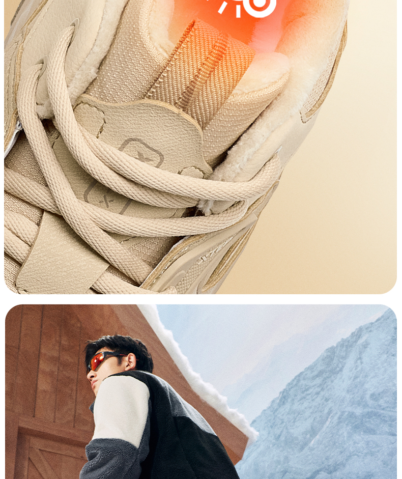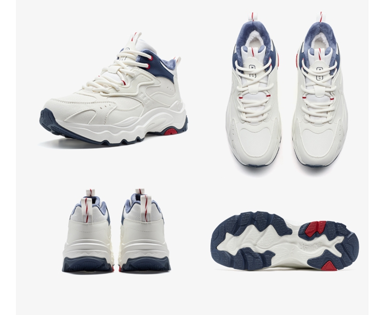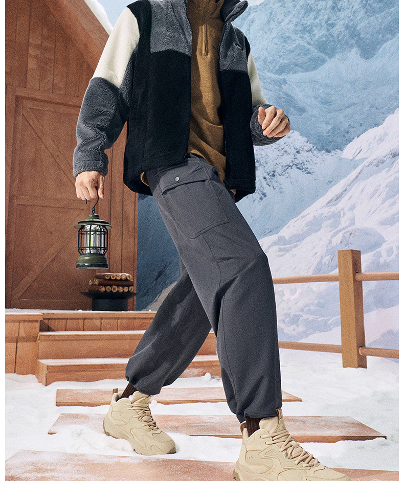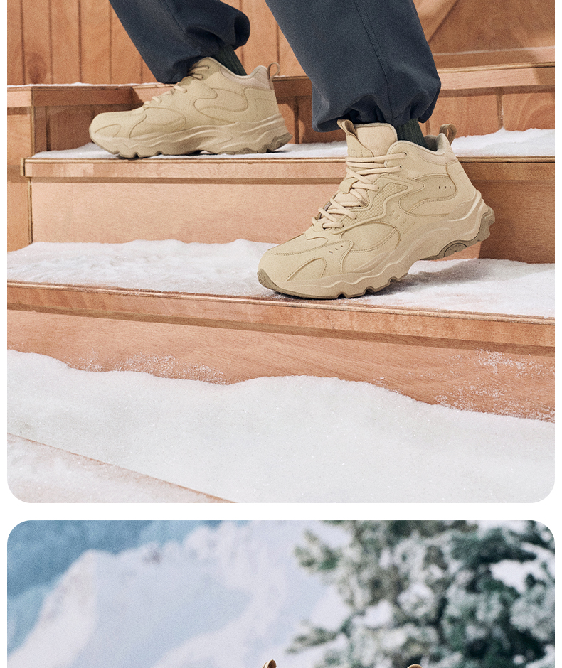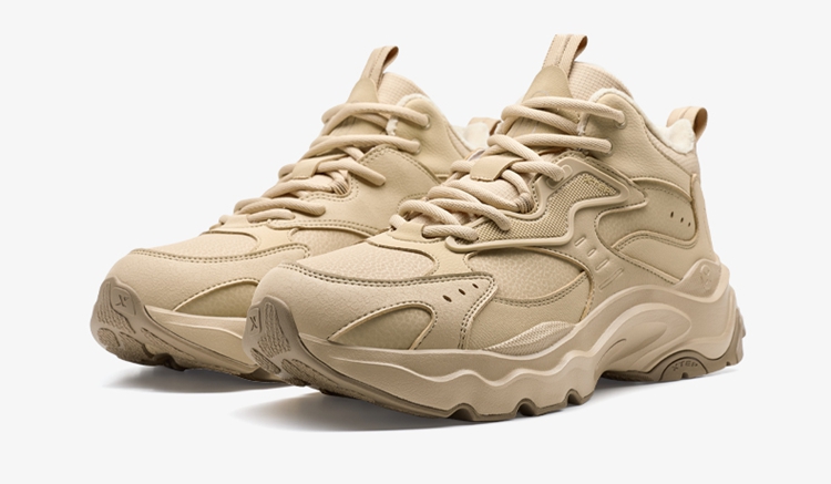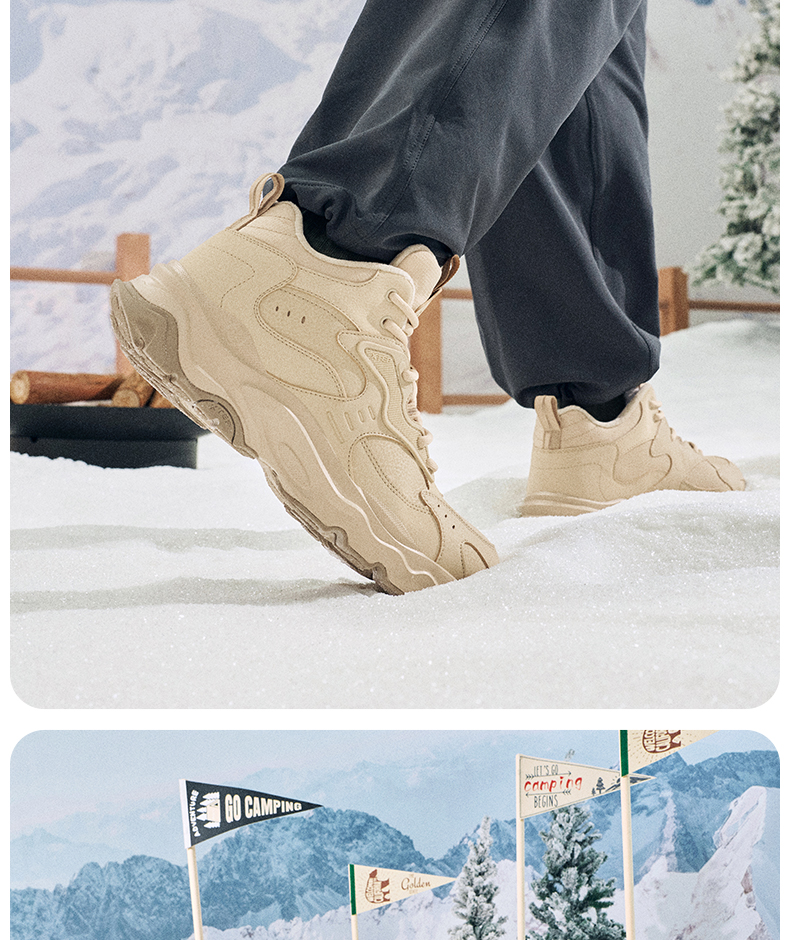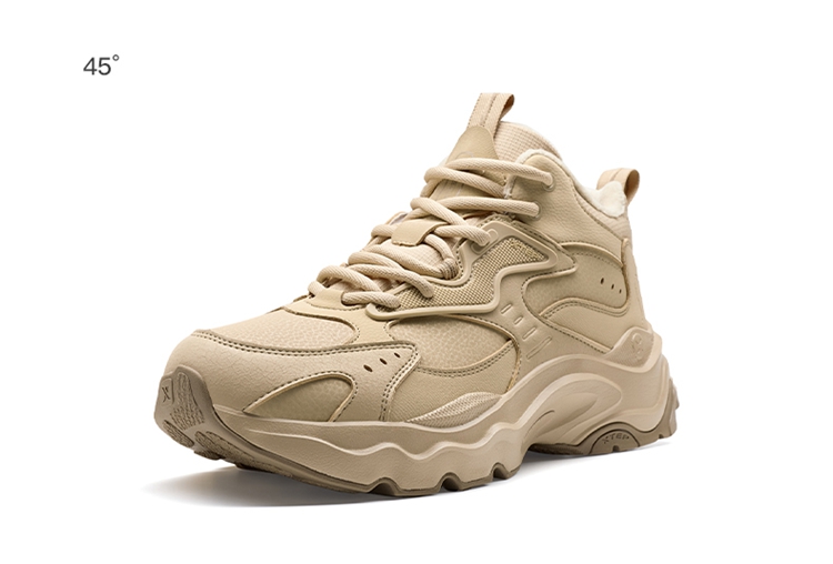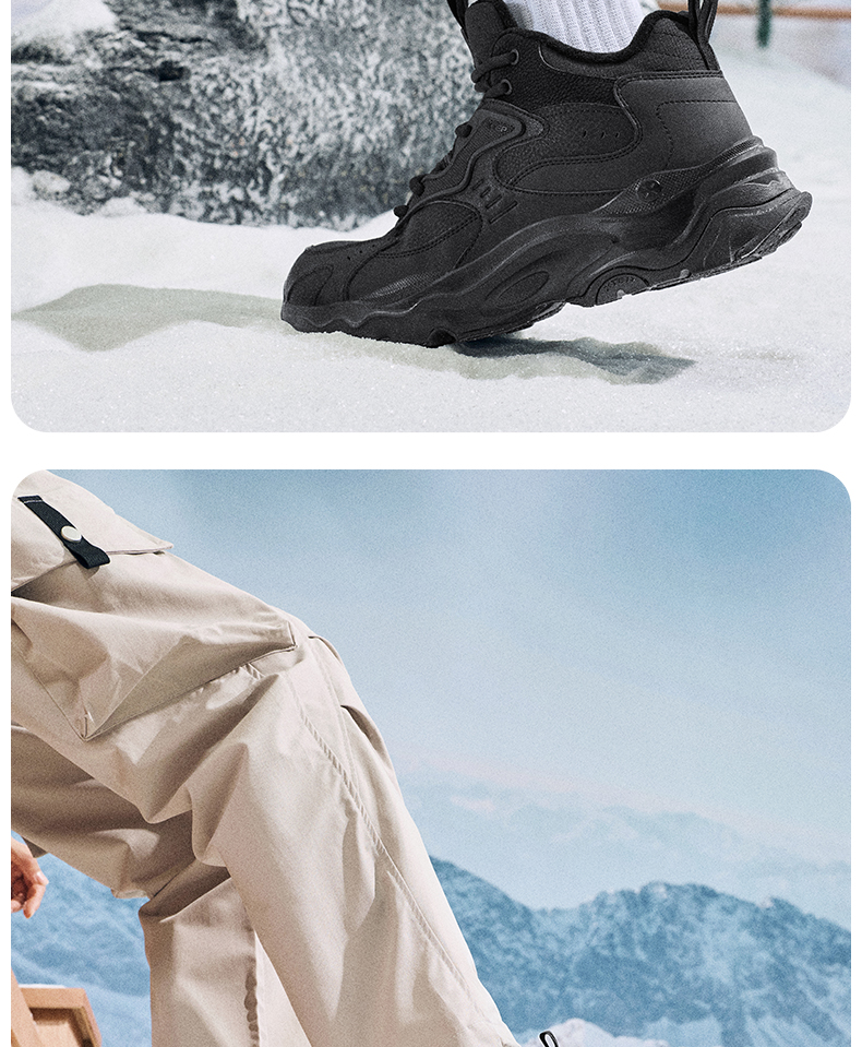 Xtep Nomadic Cotton Shoes Men's Winter High-Top Fleece-Lined Warm Dad Shoes Large Cotton Outdoor Sports Shoes Casual Shoes