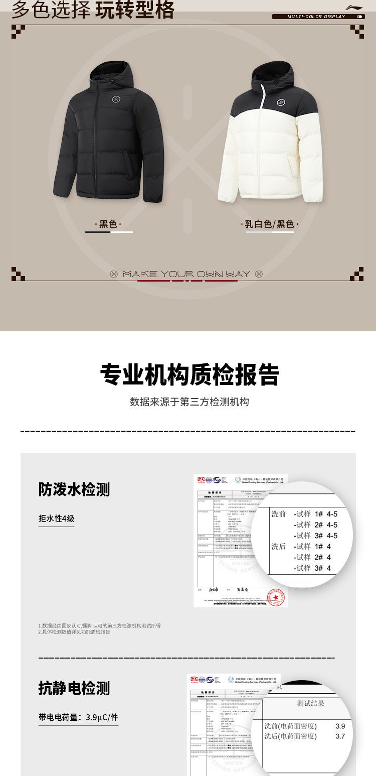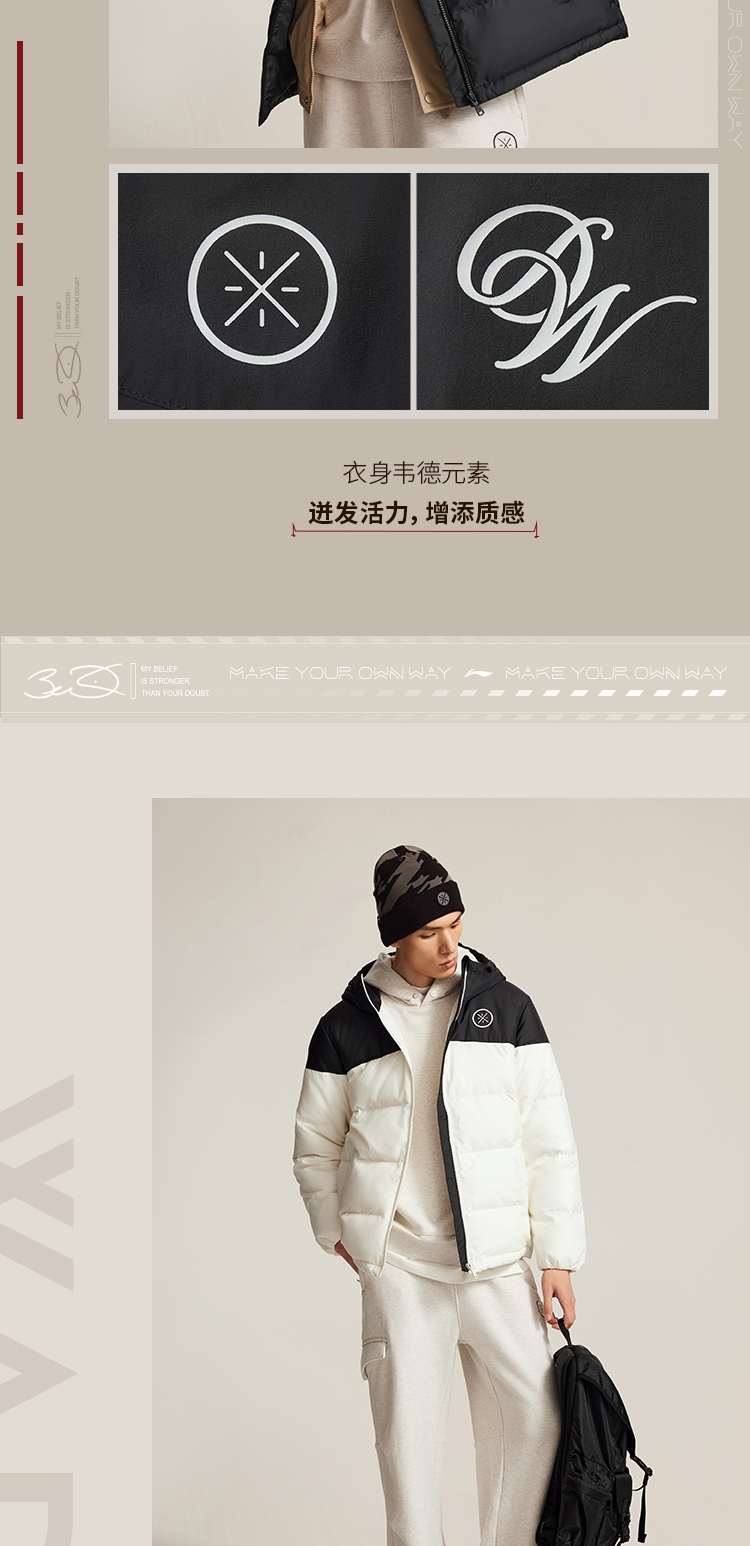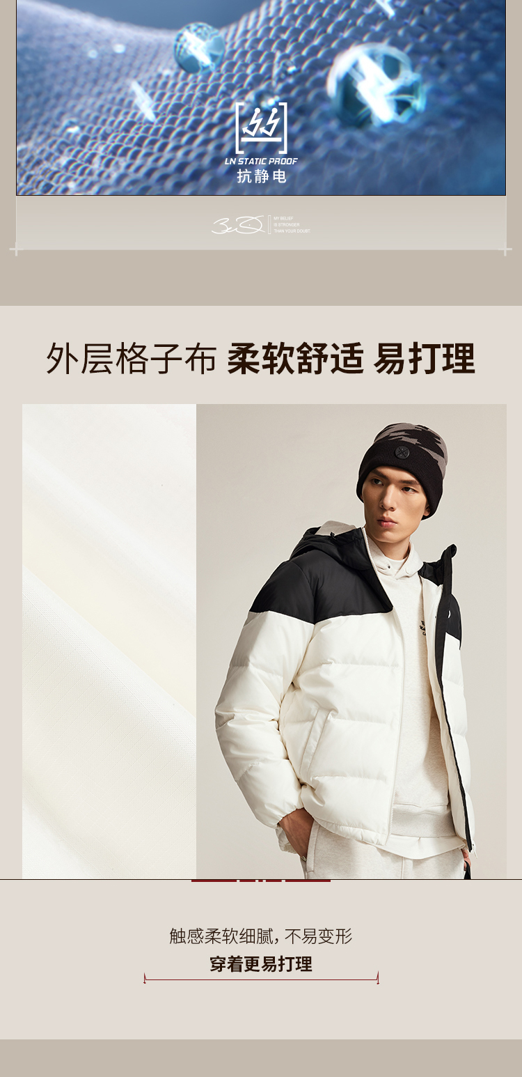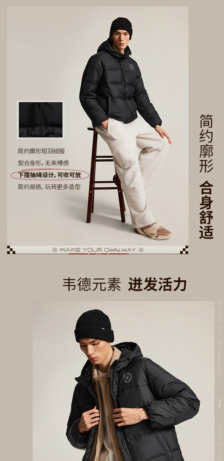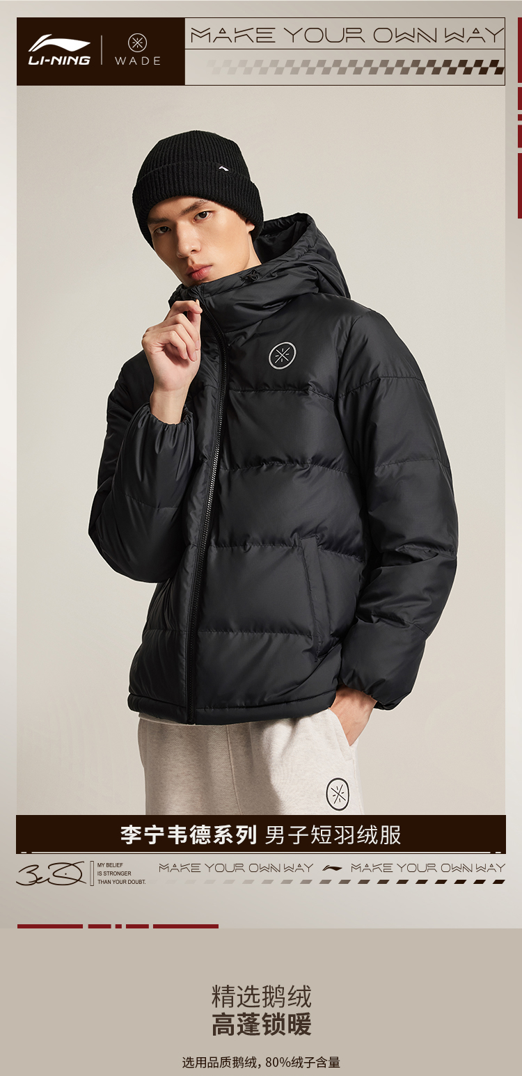 Li-Ning down Jacket for Men, Winter 2025 New Wade Series Short Hooded Top, Goose down Cold-Proof Sportswear