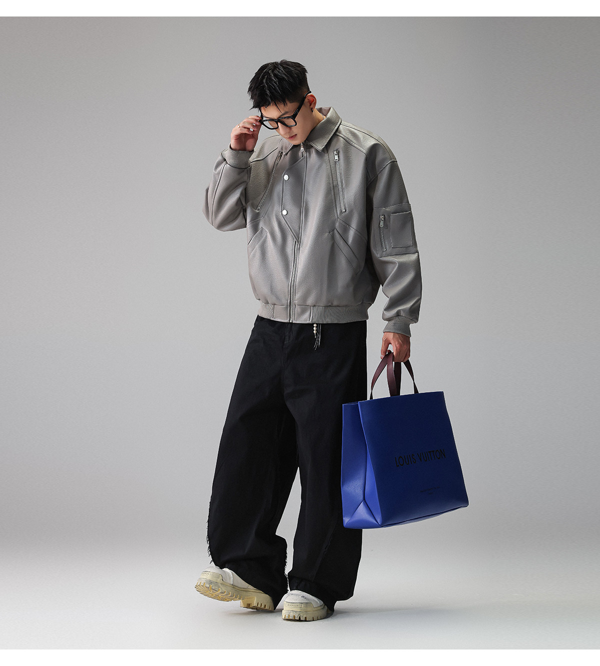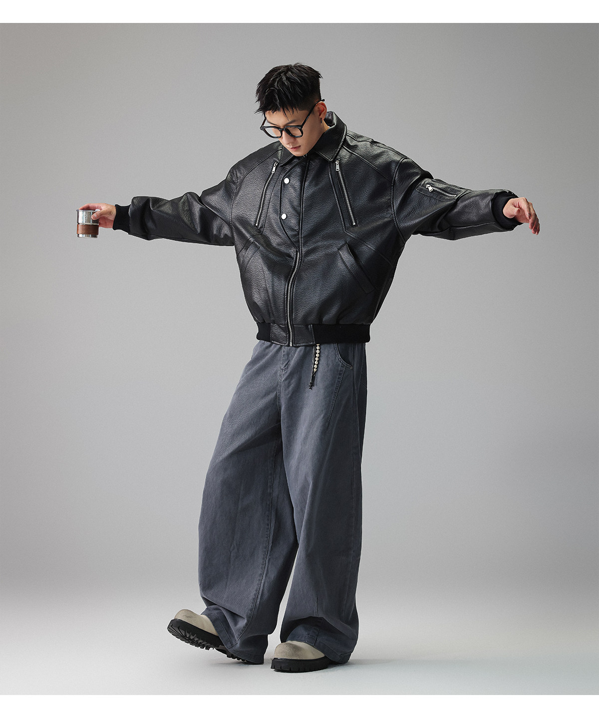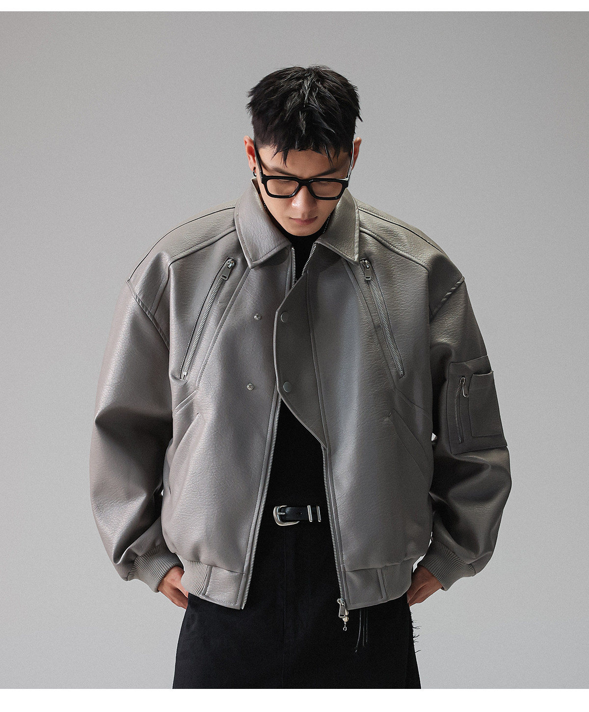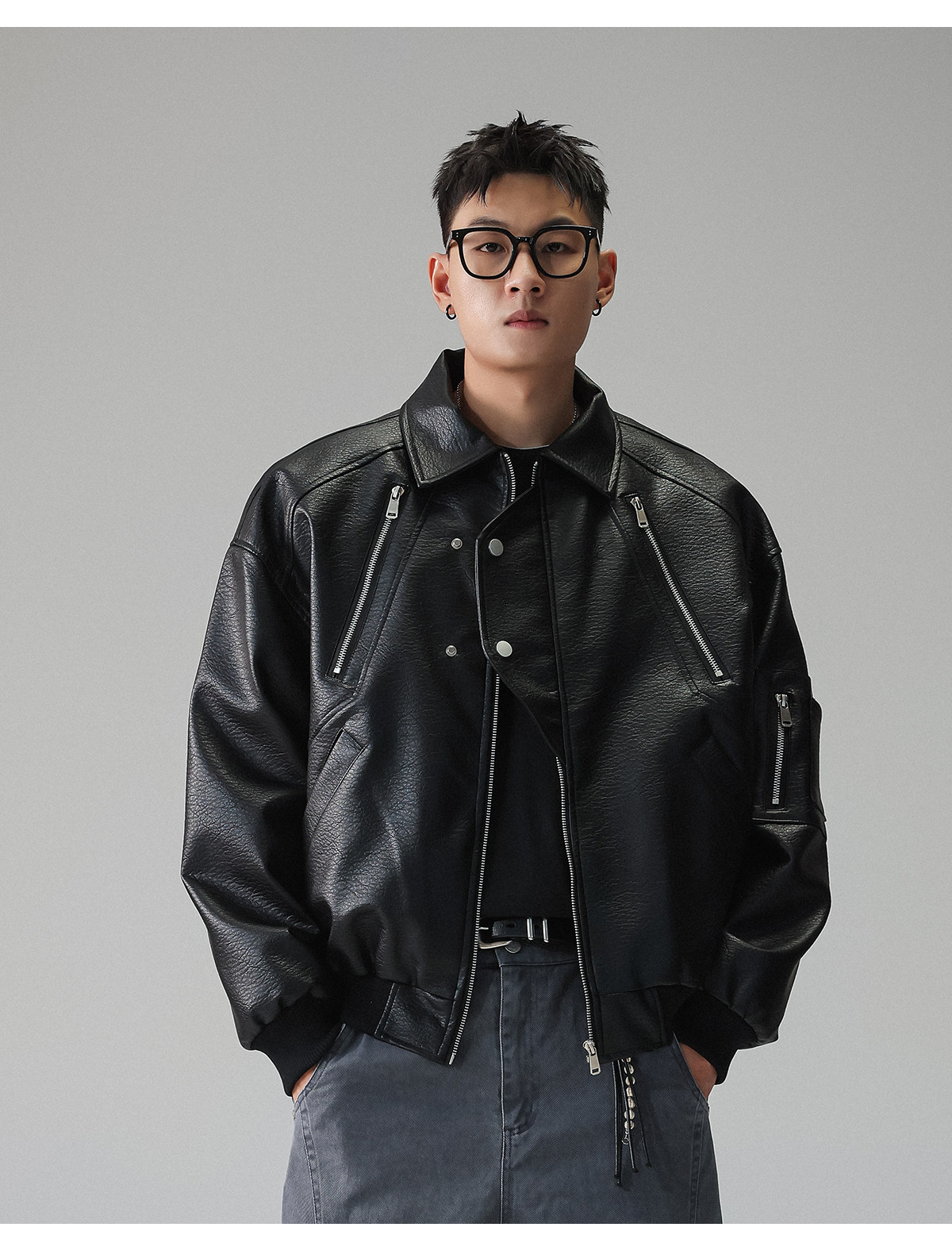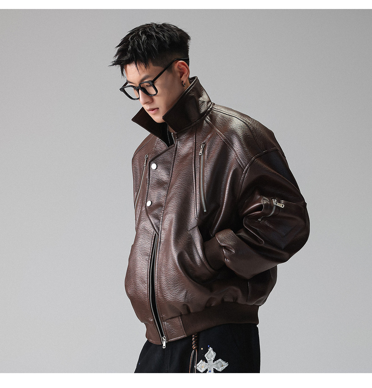 Youshu's "Leather Texture Poetry Realm" Multi-Zip Textured Leather Jacket for Men, Spring American Style Trendy Brand Coat