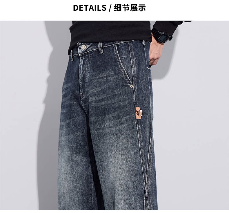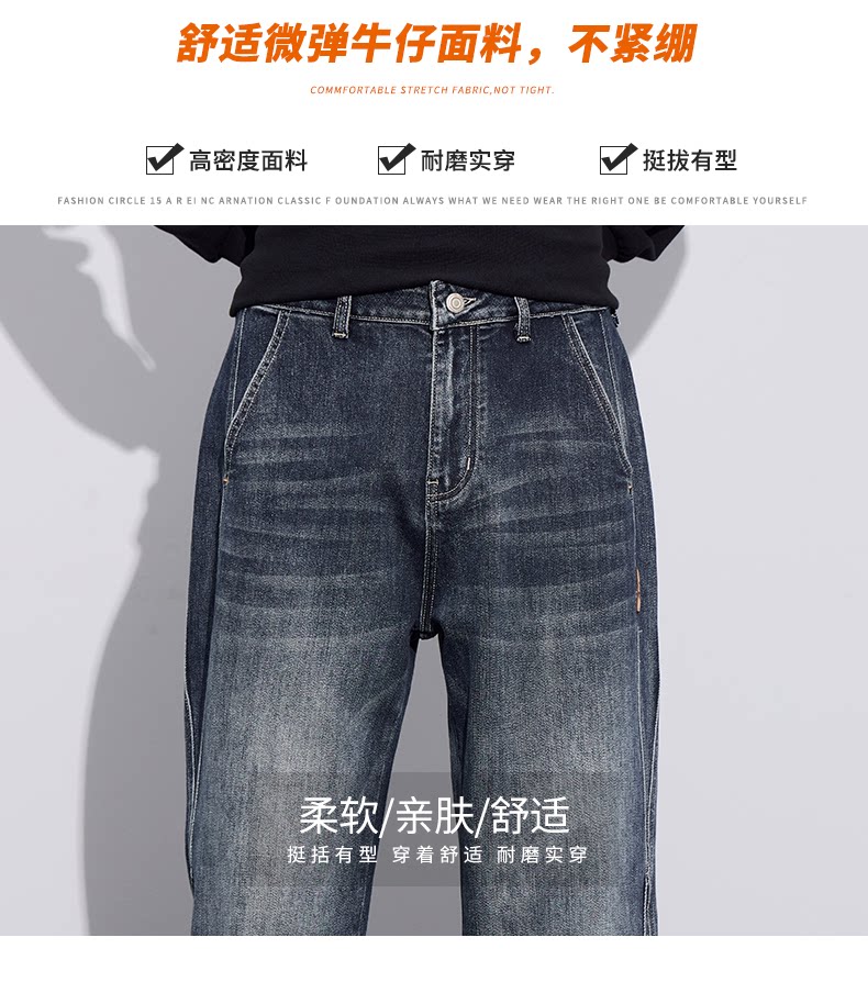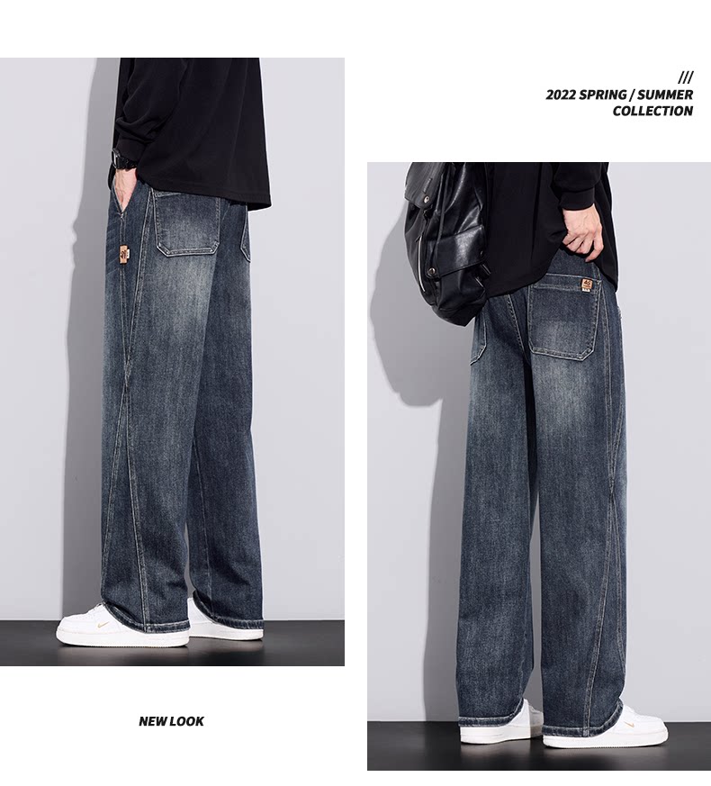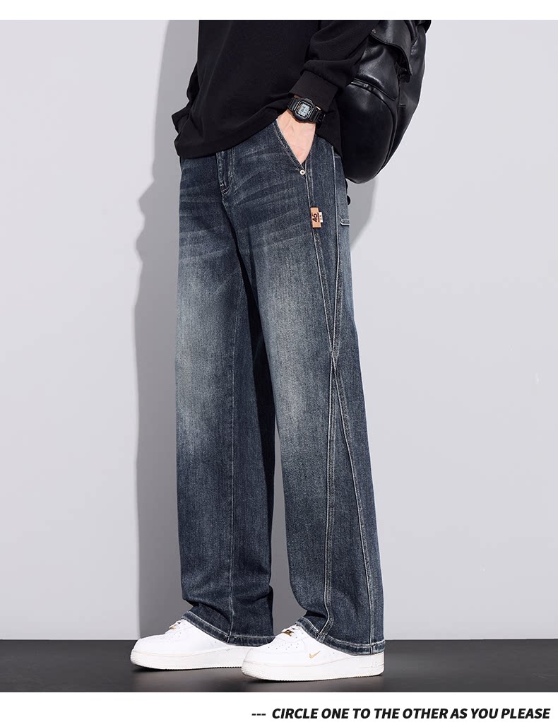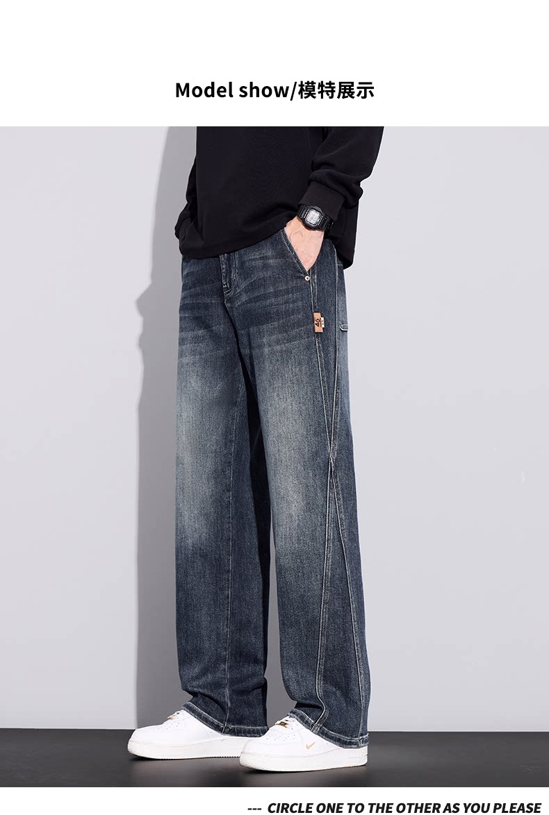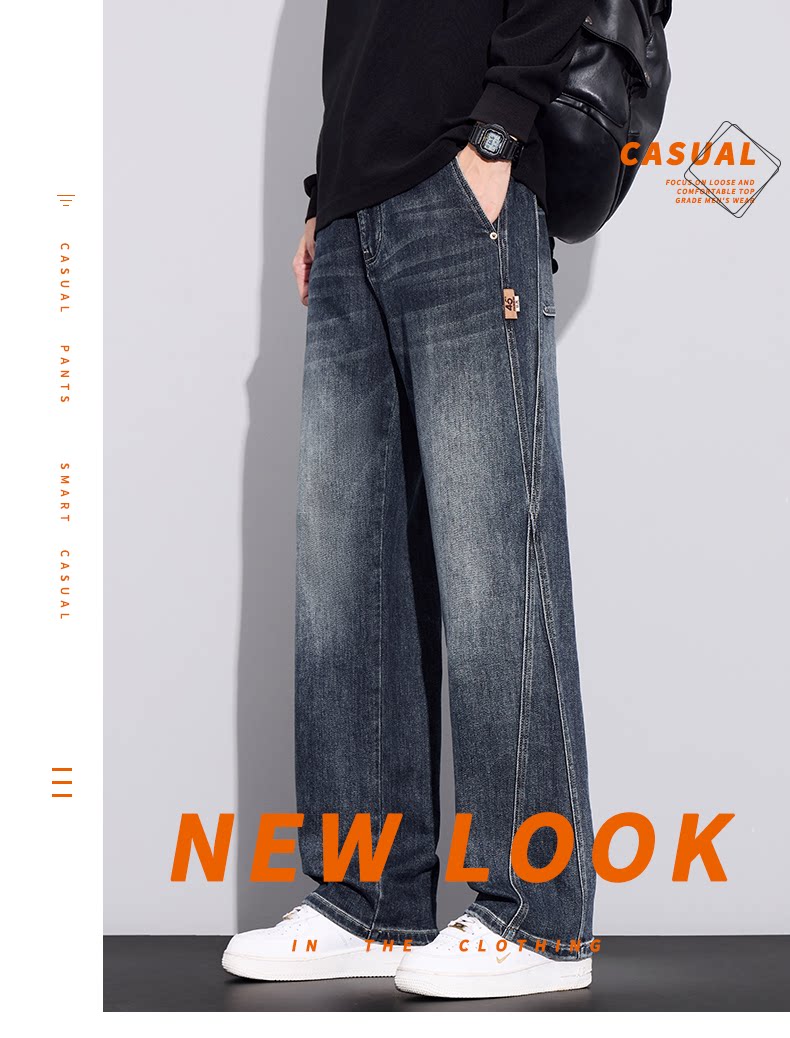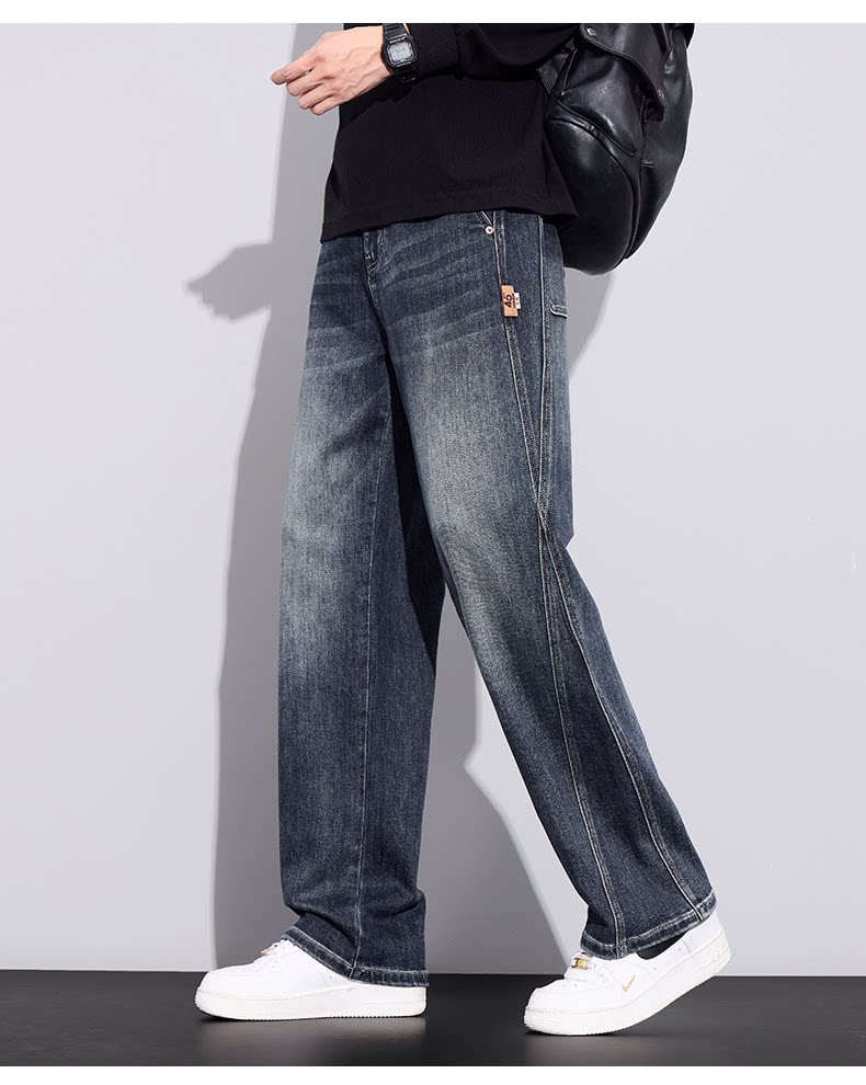 2026 Summer New Men's Straight-Leg Loose Trendy American Retro Washed Casual Stretch Jeans