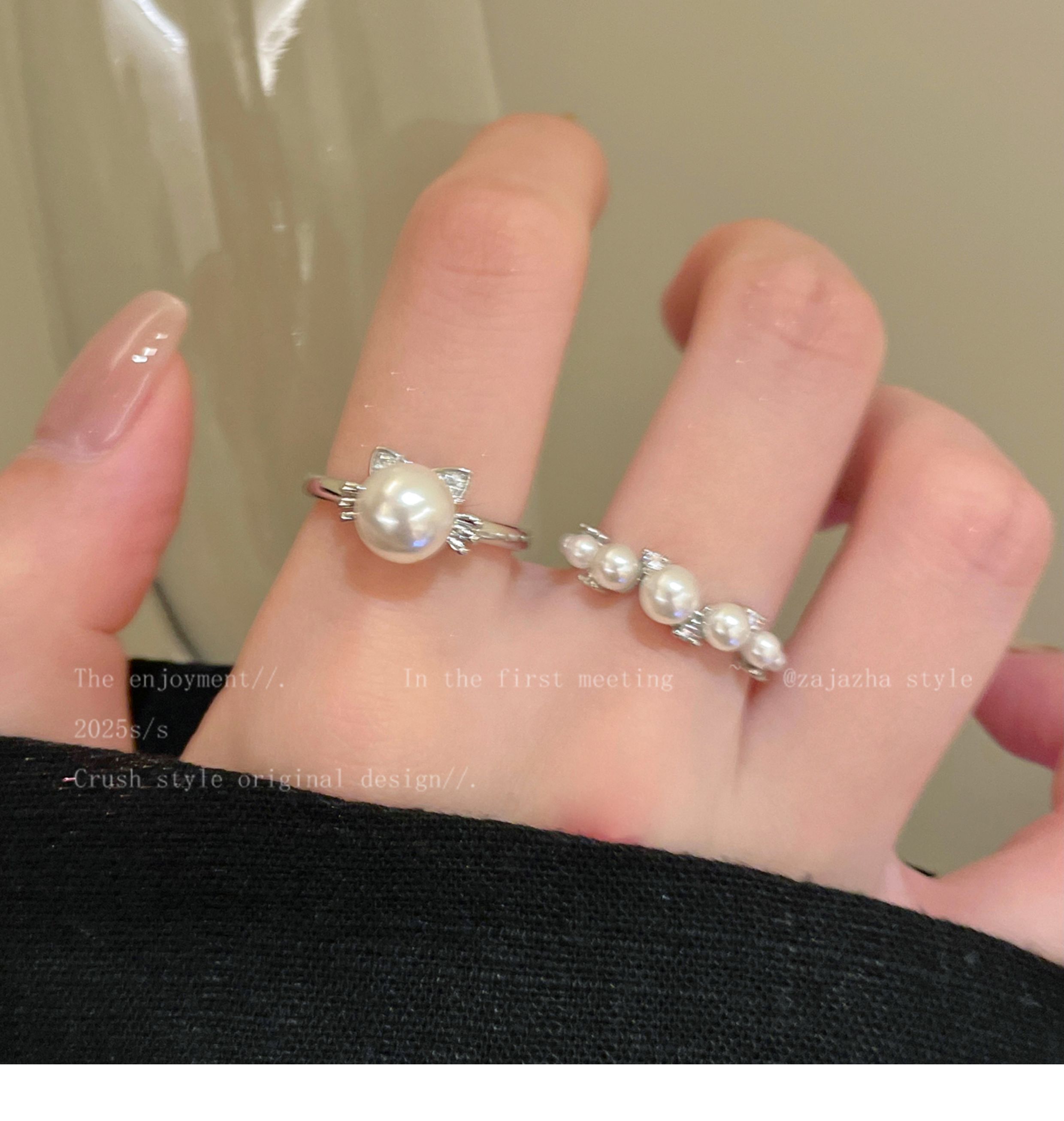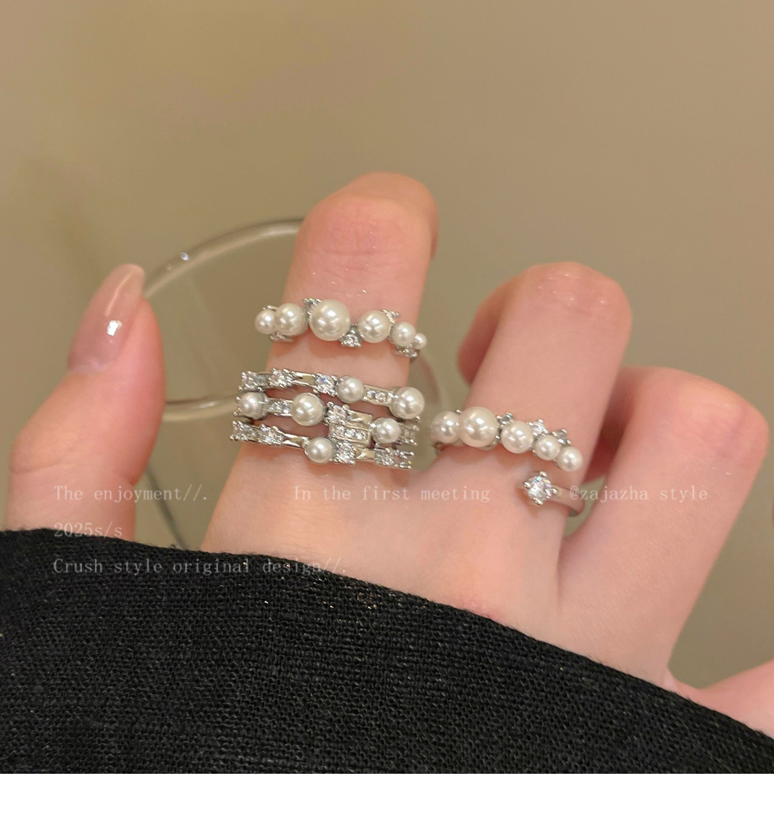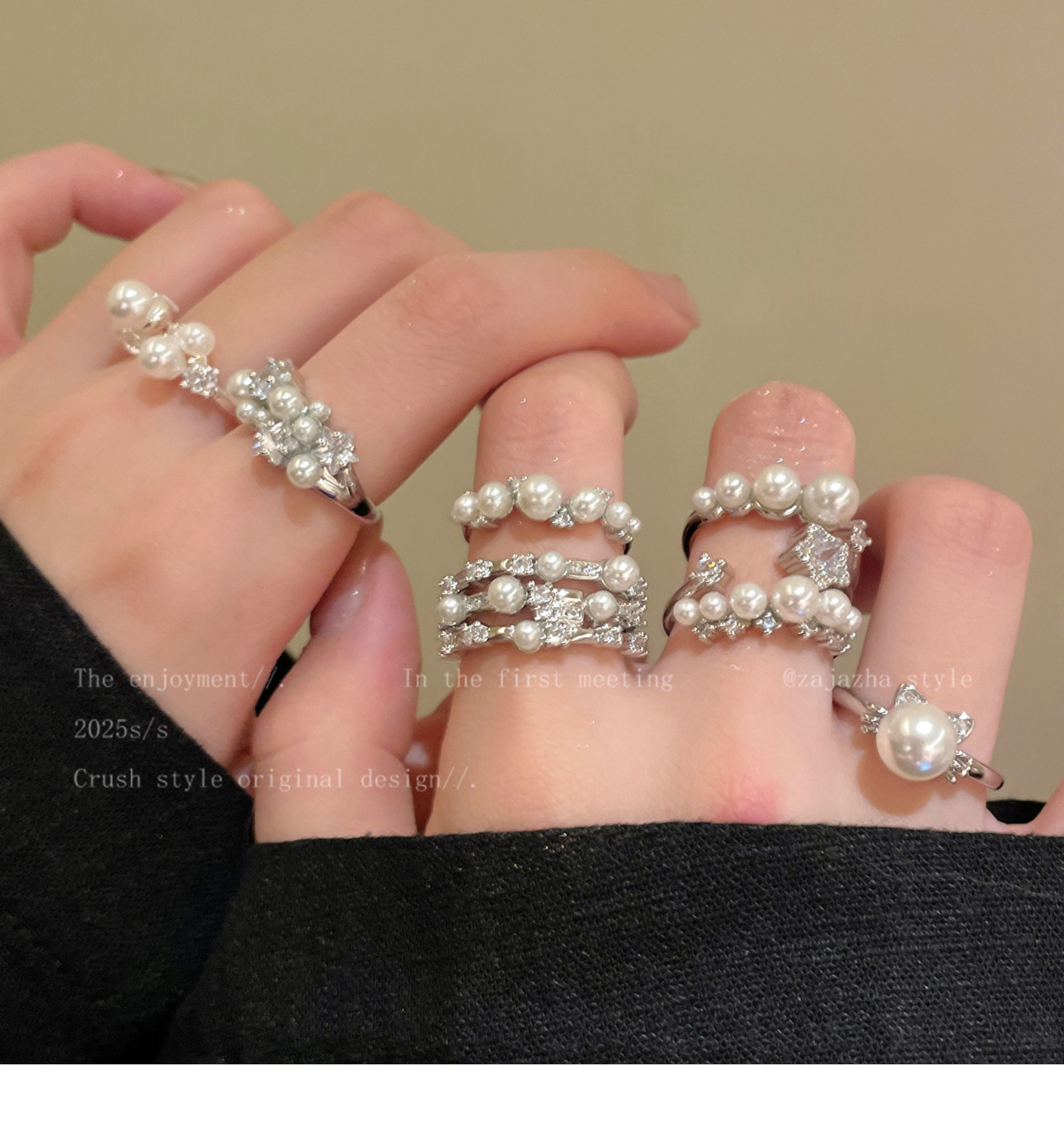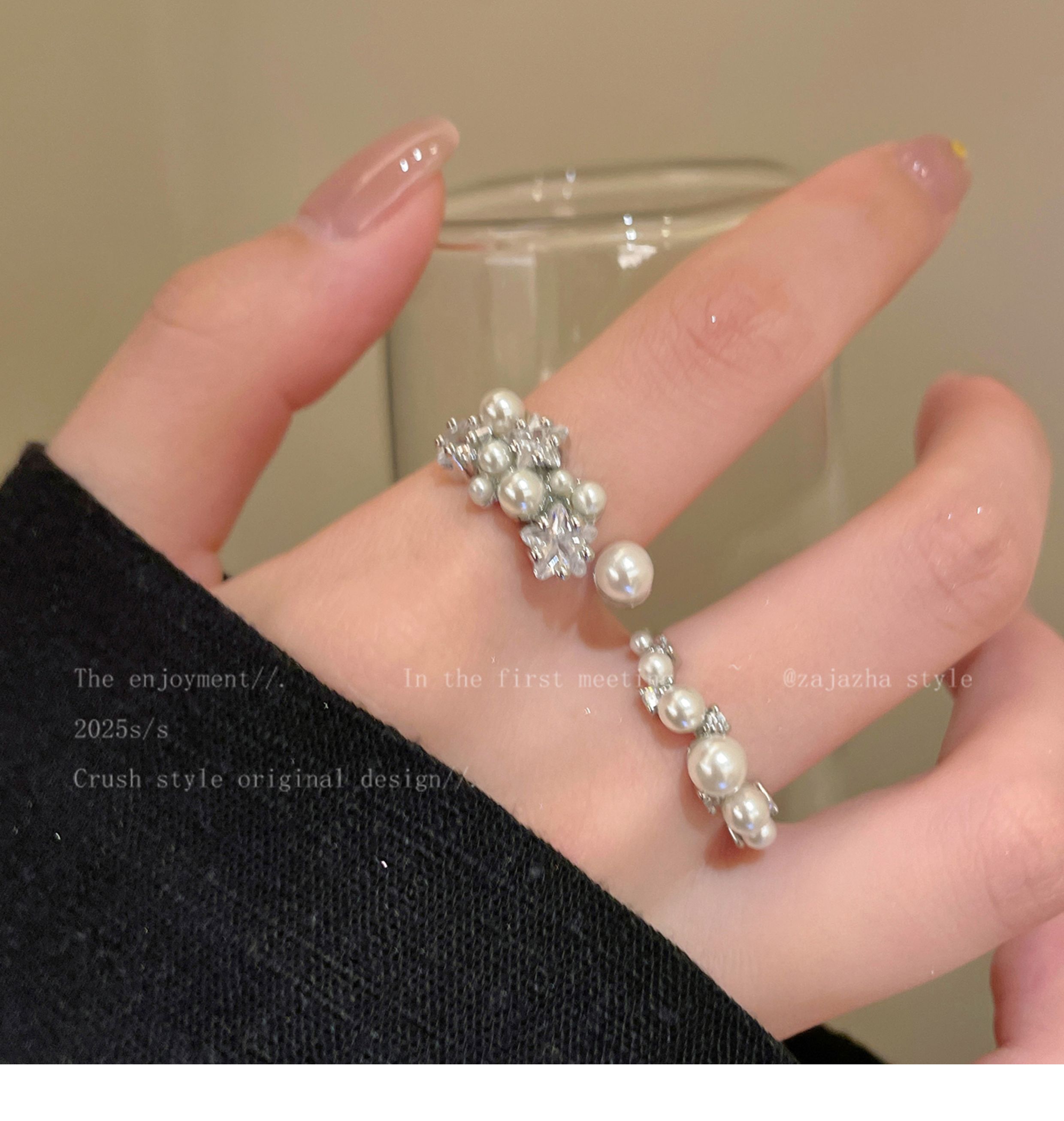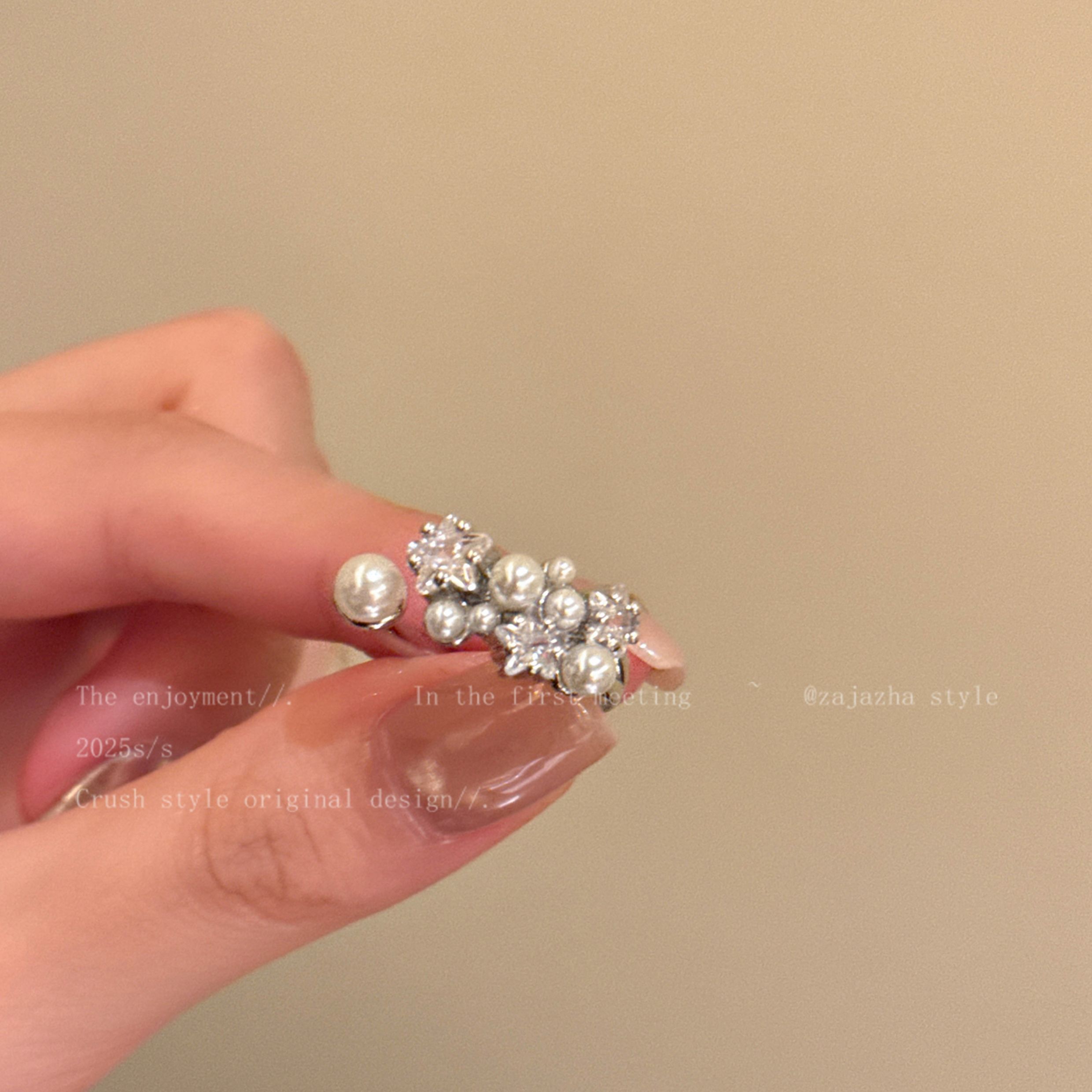 Starry and Radiant! French Baroque Pearl Open Ring for Women, Stackable Index Finger Ring, Light Luxury and High-End Feel
