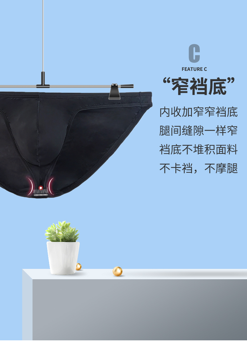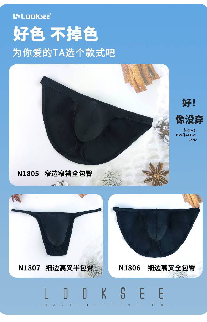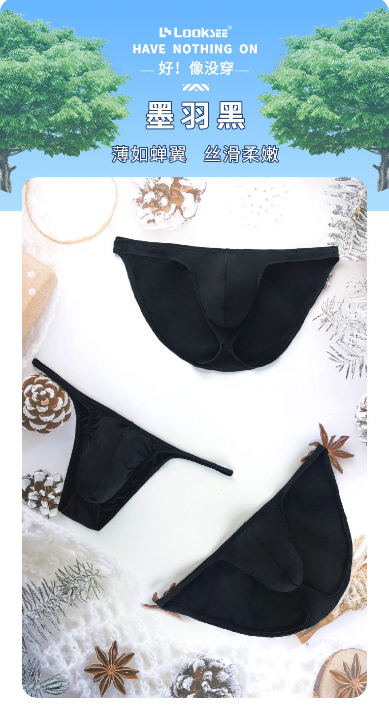 Pure Black Ultra-Thin Ice Silk Low-Rise Thin-Edged Briefs Men's Underwear U-Convex Sexy Semi-Transparent High-Cut