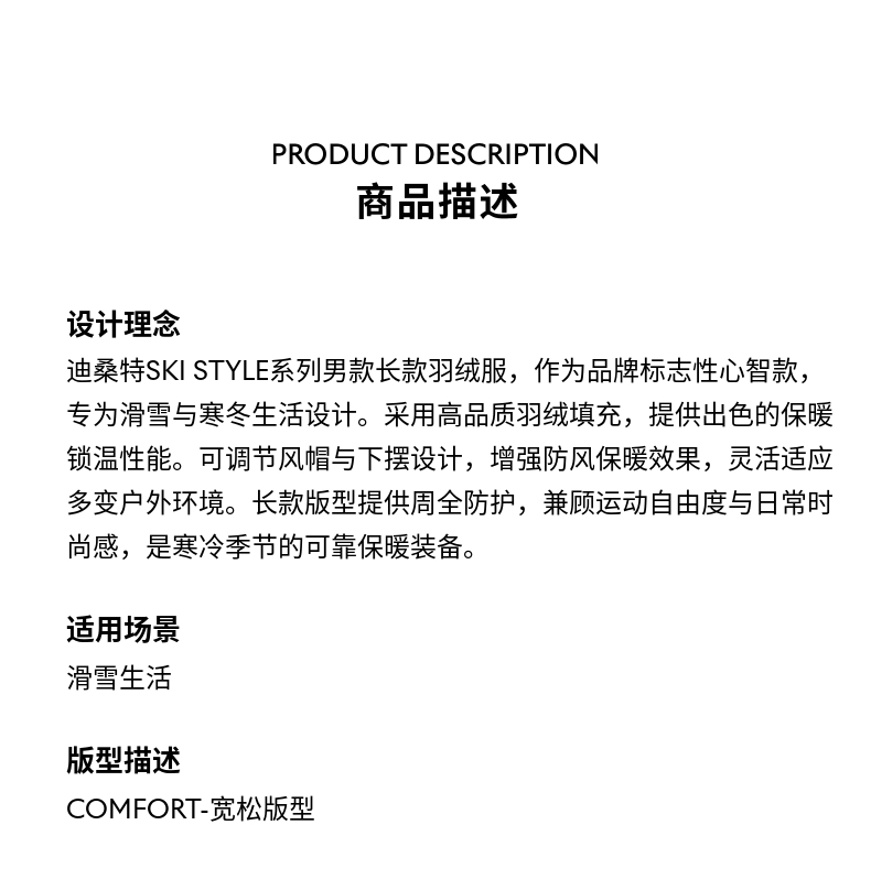 Descente Desante Ski Style Sports and Leisure Men's Far-Infrared Warm Goose down Long down Jacket
