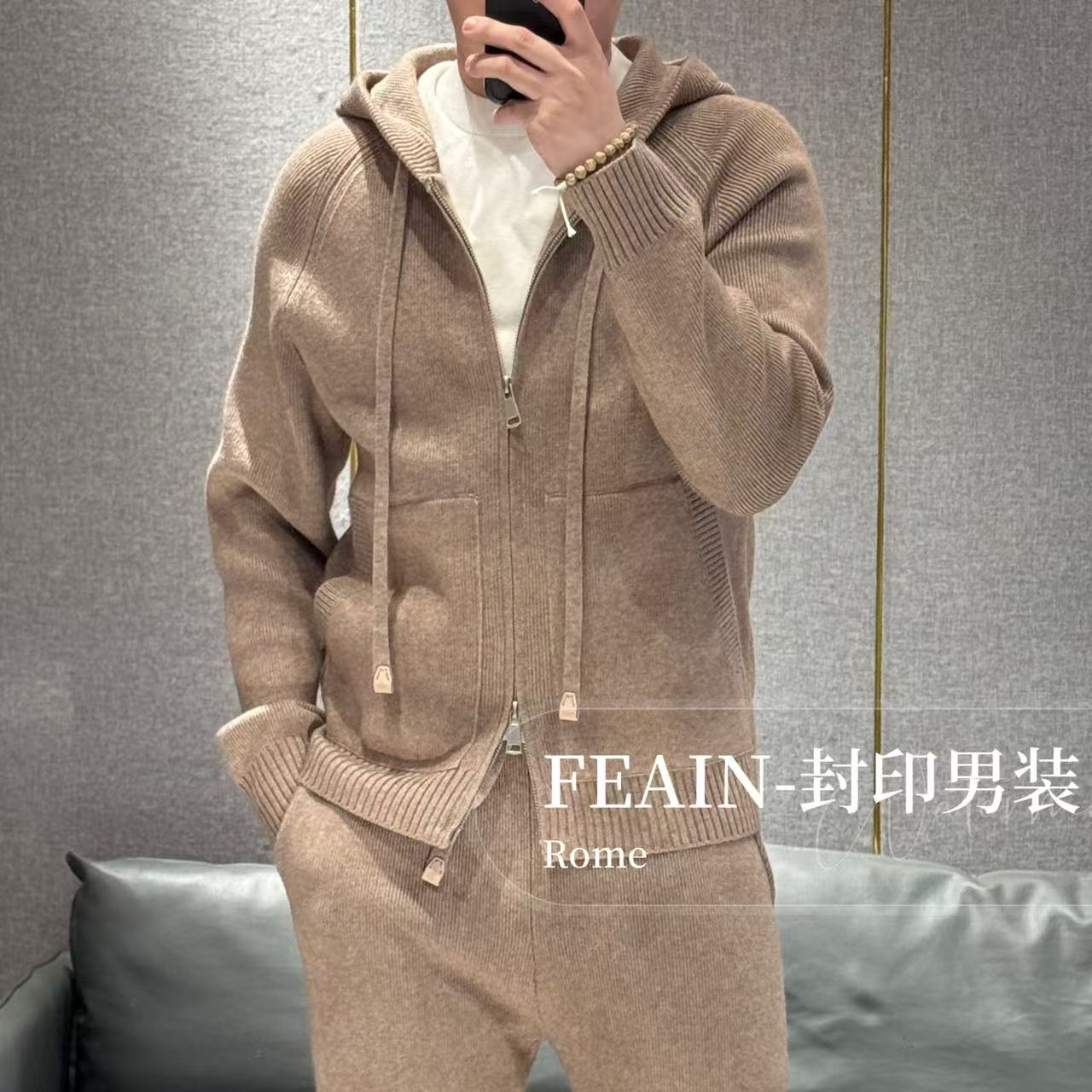 [Wool Blend] L * P Shoulder Sliding Design Double Zipper Hood Knitting Suit 6716