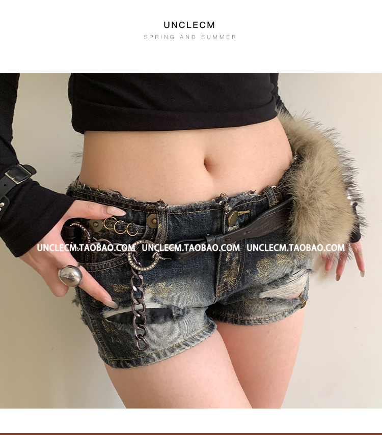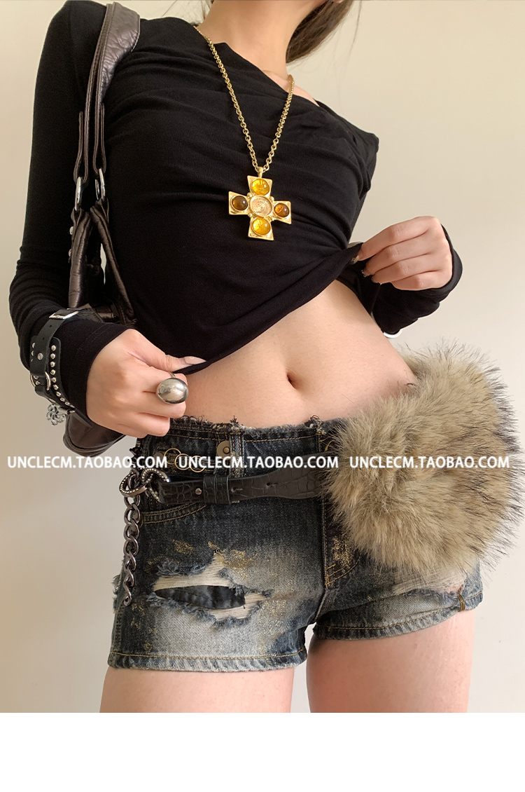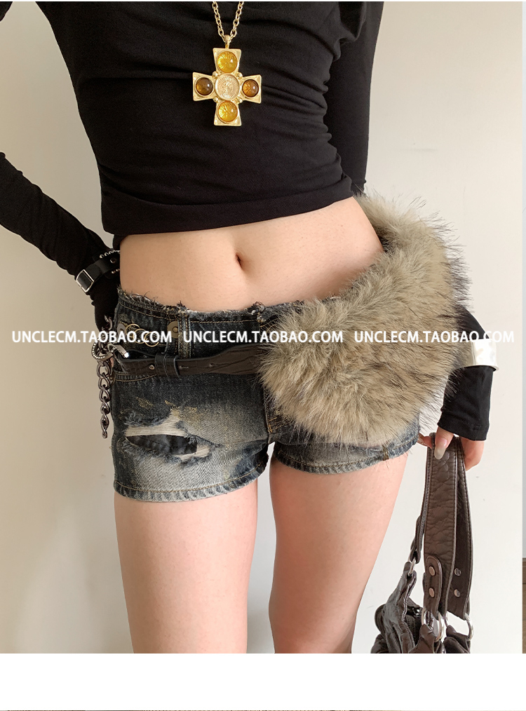 American Y2K Subculture Fur Patchwork Belt for Women, Suitable for Dresses and Jeans, Vintage Hot Girl Style Belt
