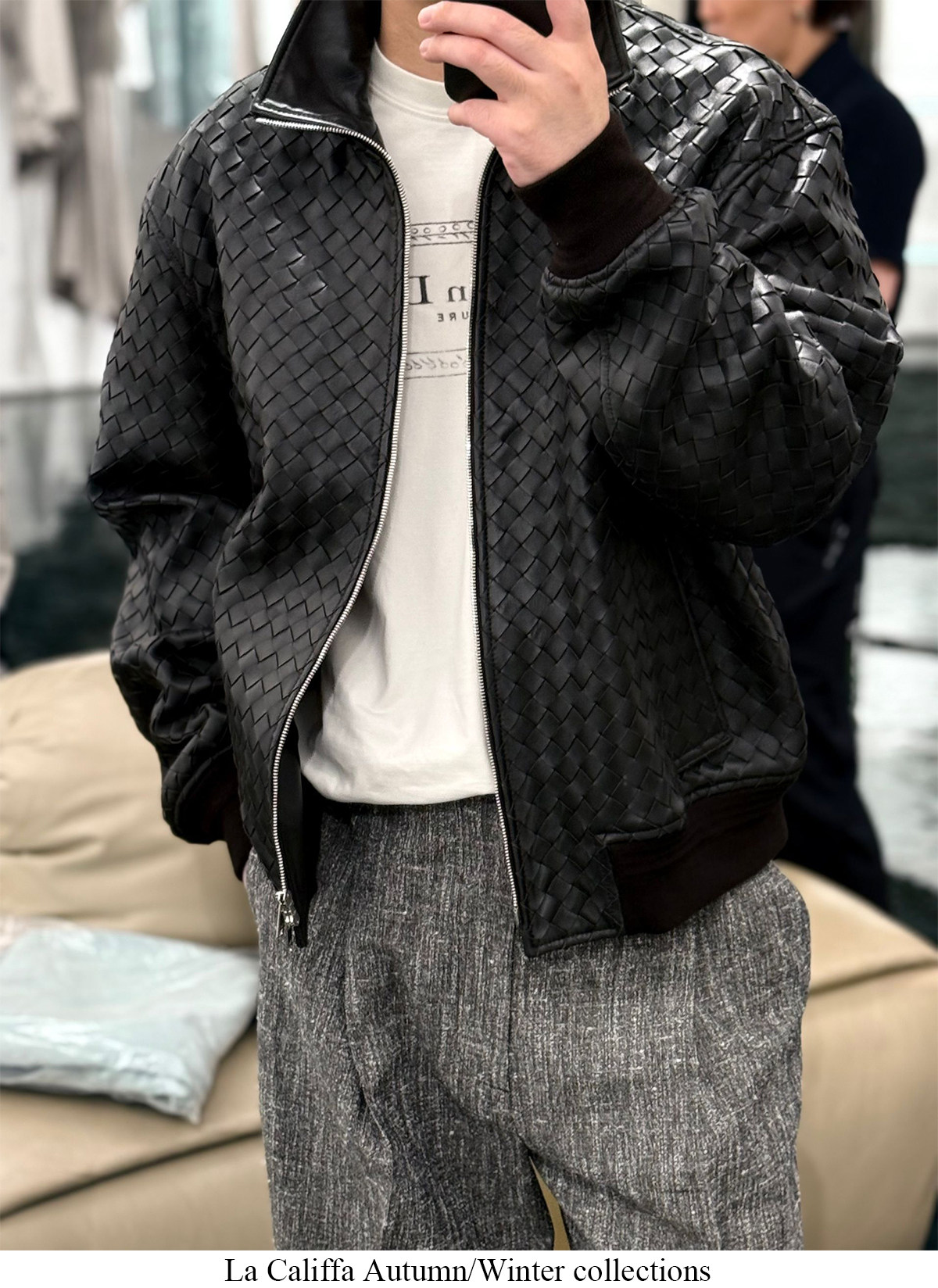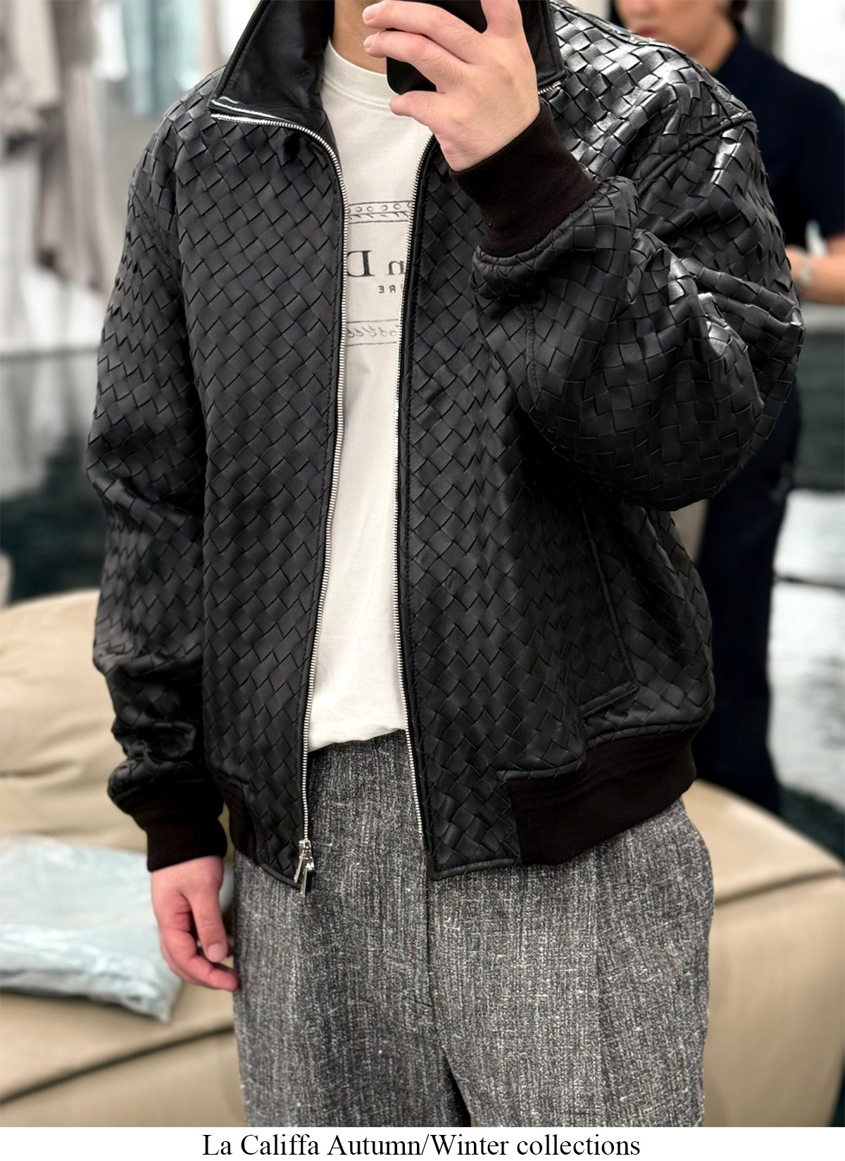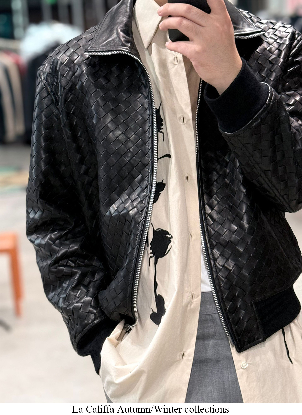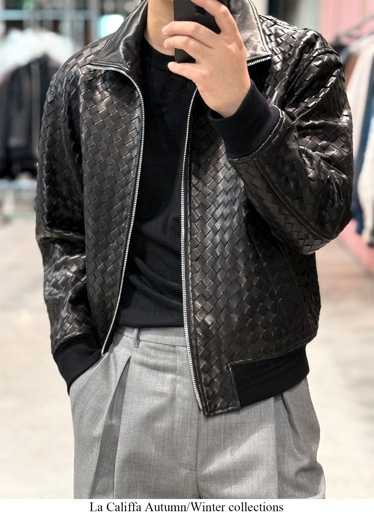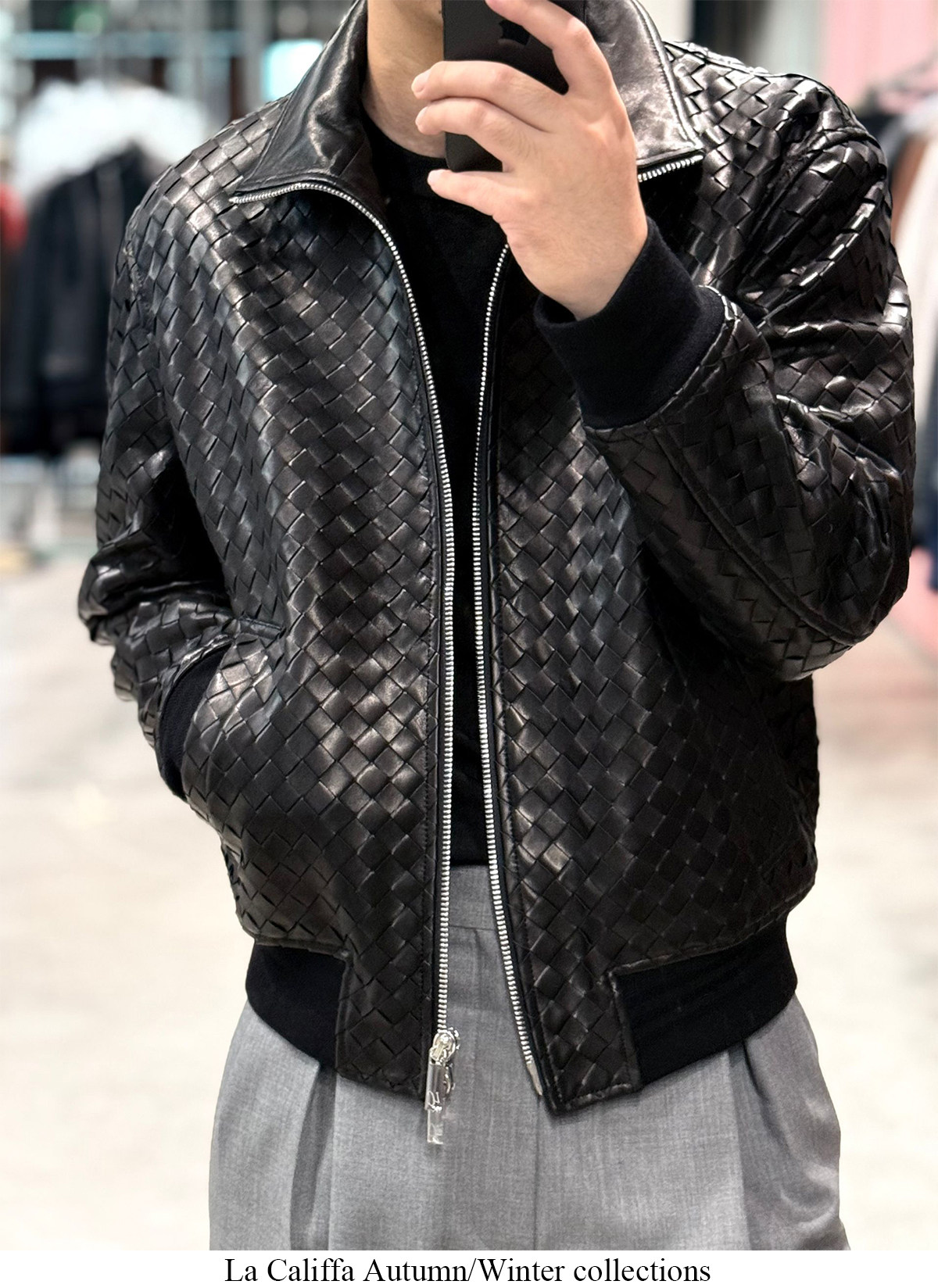 91700V Version of the Hand-Woven Lambskin Bomber Jacket