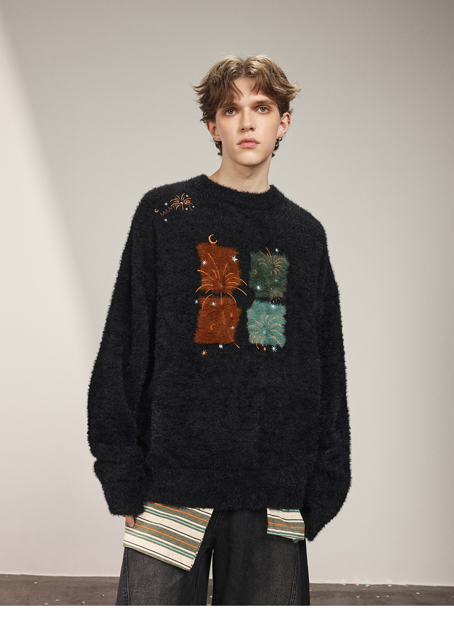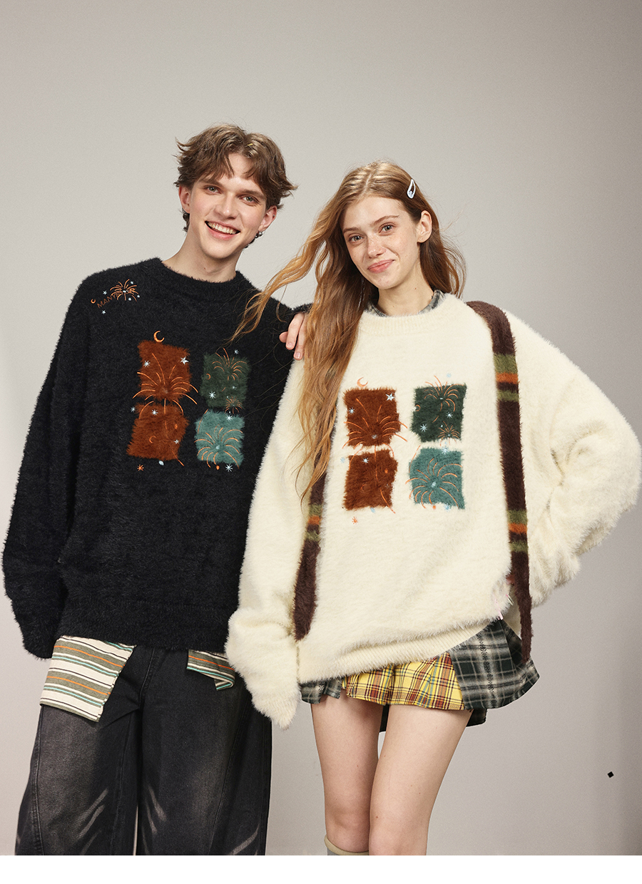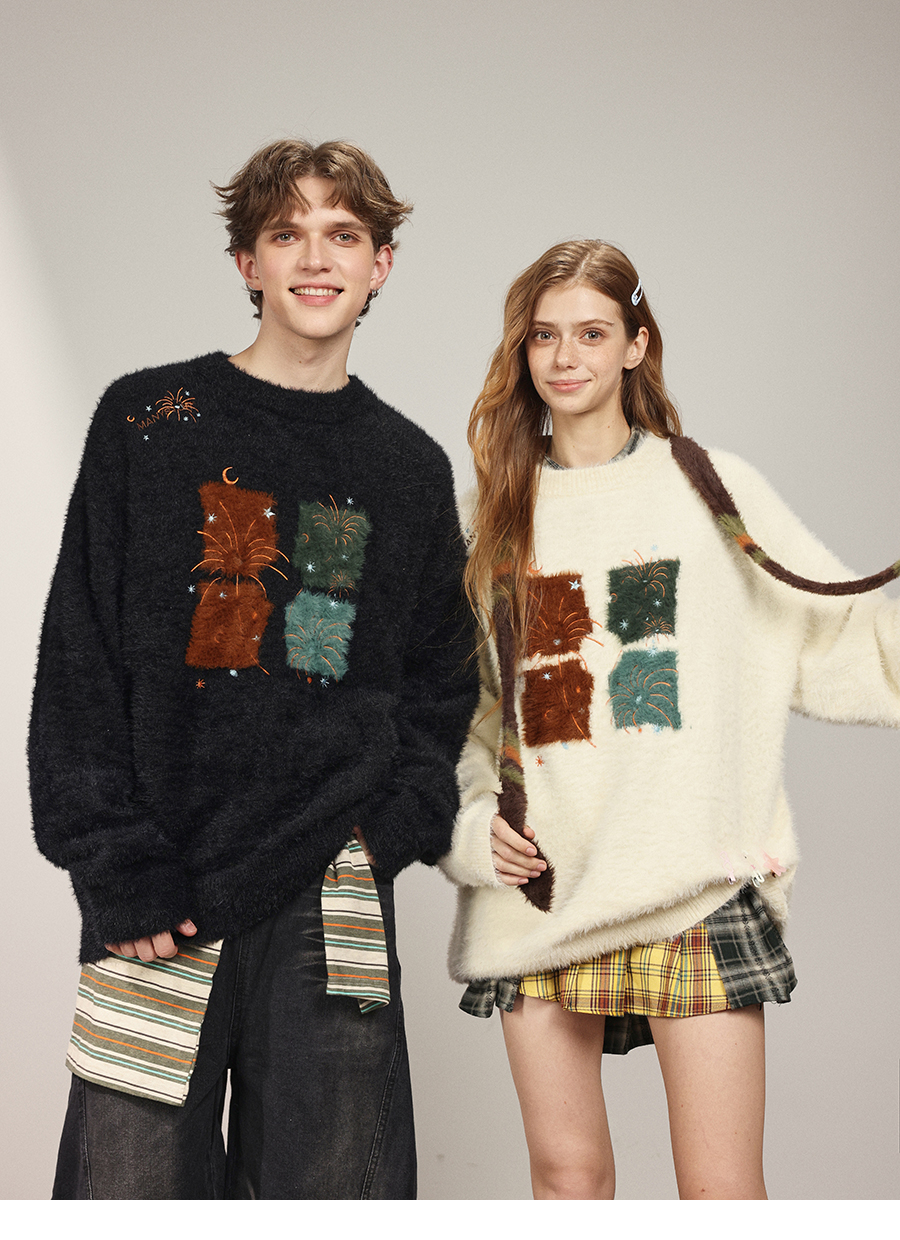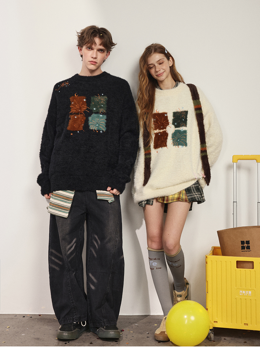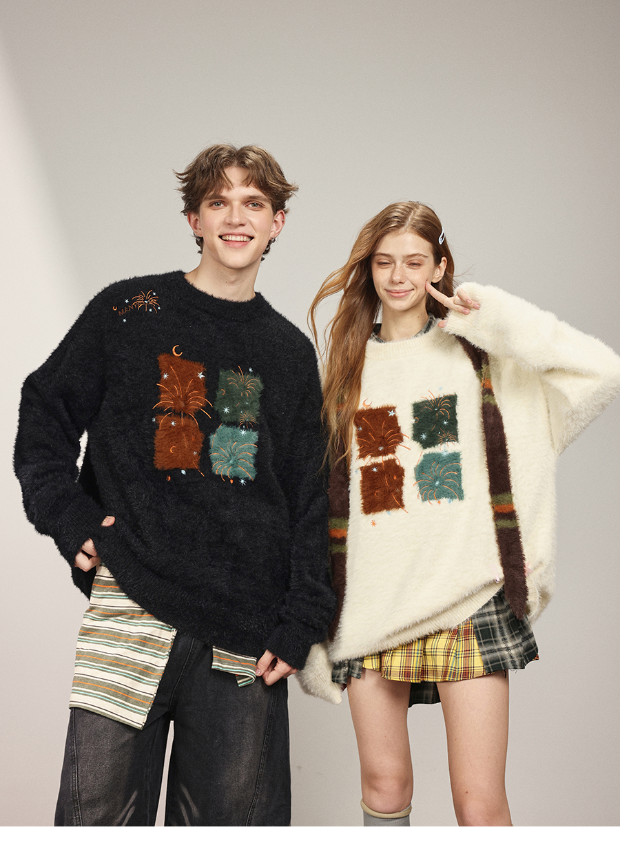 [Celebrity Style] Manyston American High Street Embroidered Sweater for Men, Spring and Autumn Couple's Round Neck Knitwear