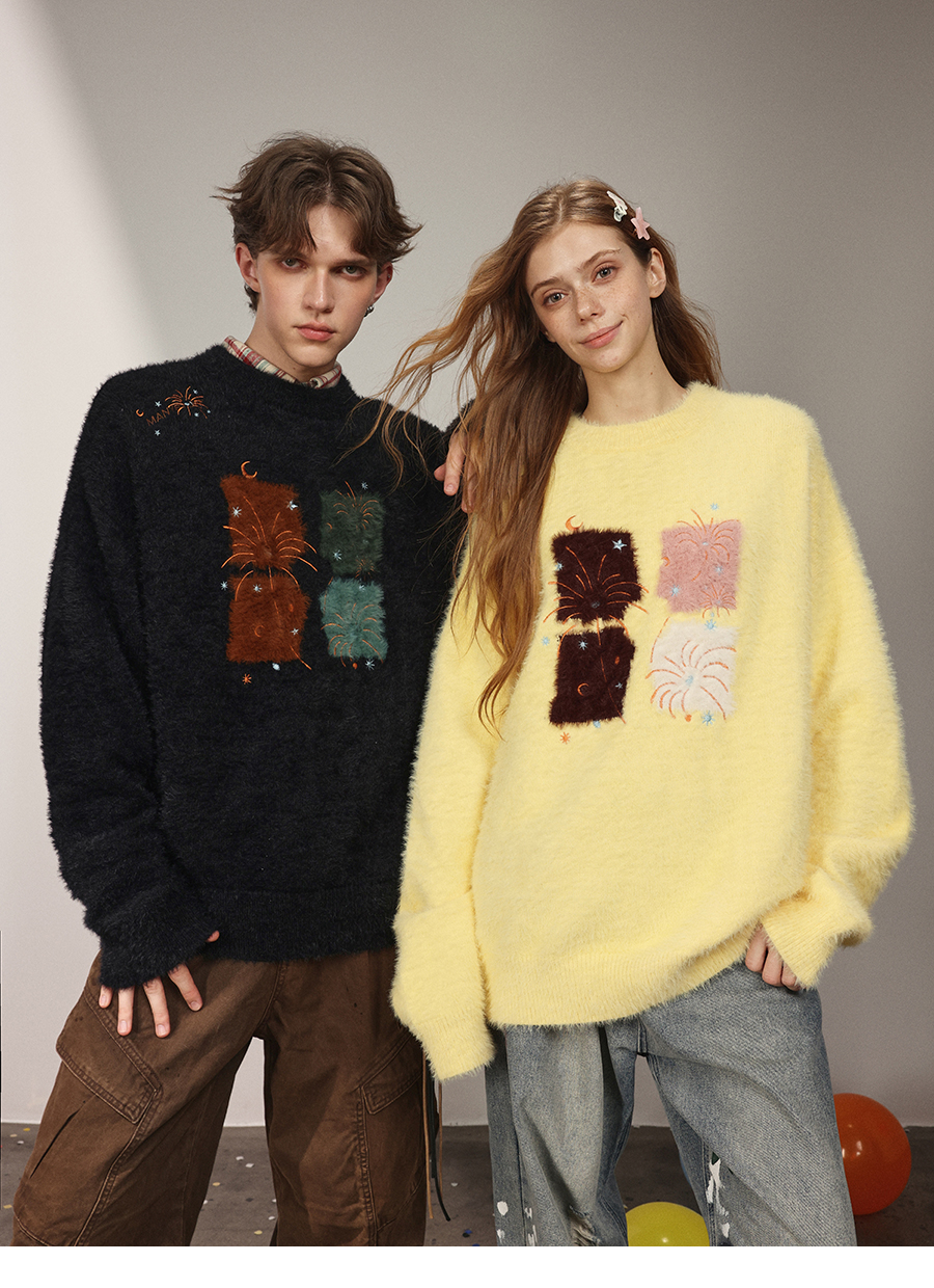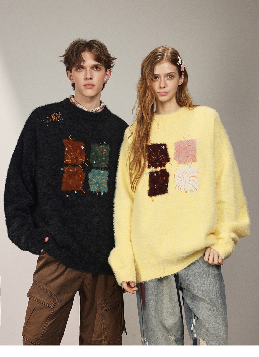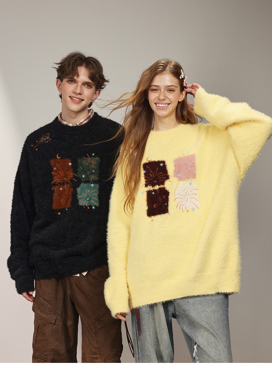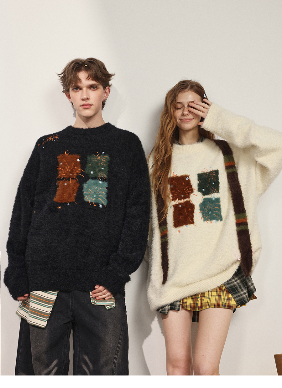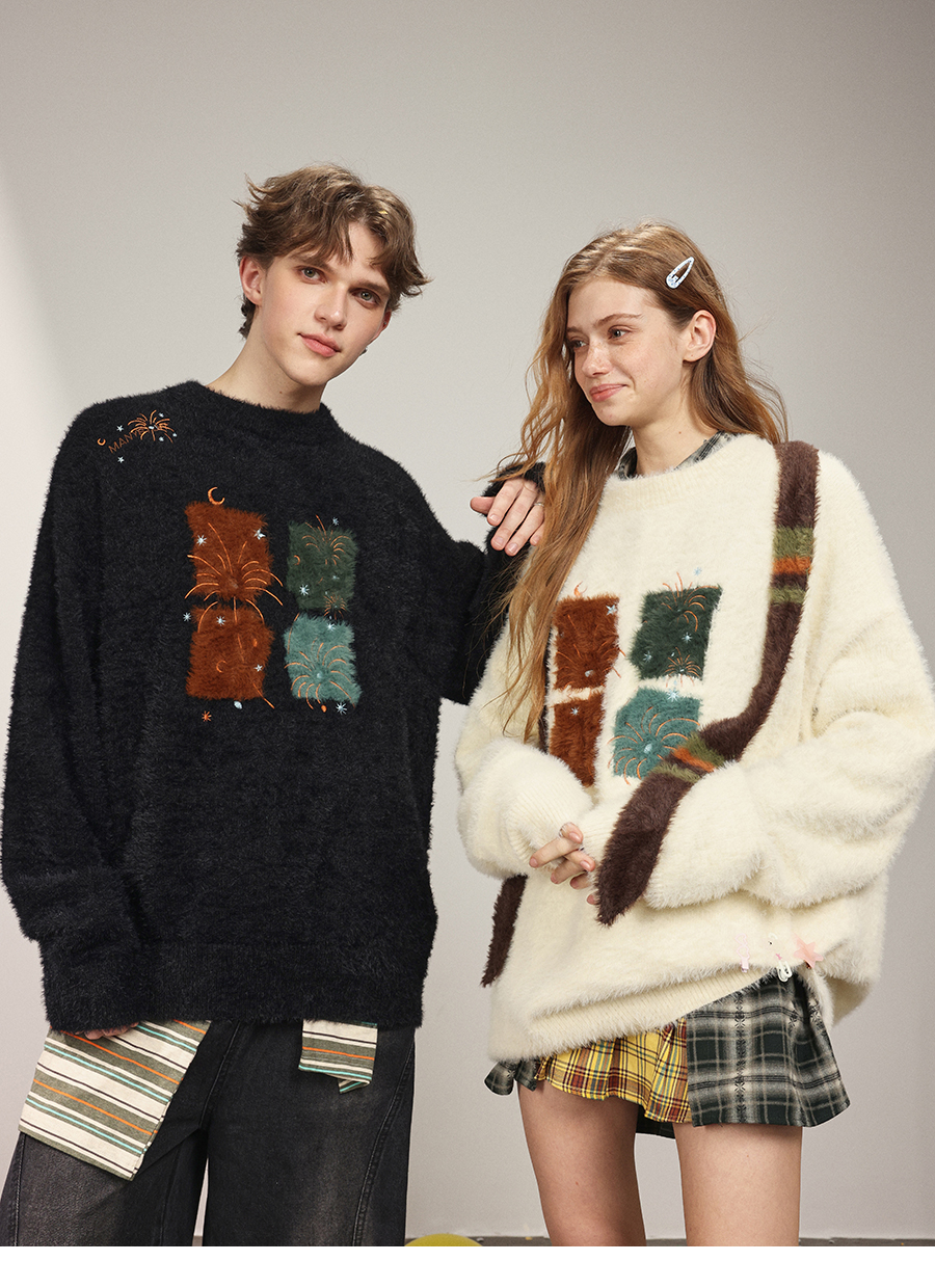 [Celebrity Style] Manyston American High Street Embroidered Sweater for Men, Spring and Autumn Couple's Round Neck Knitwear