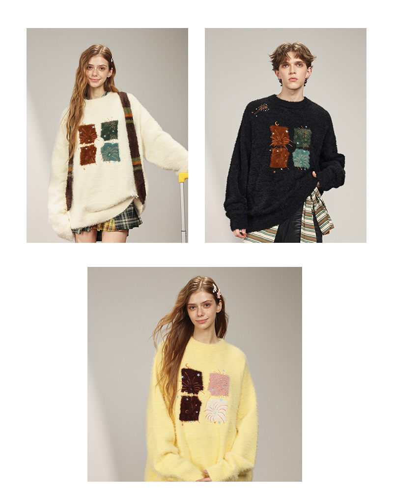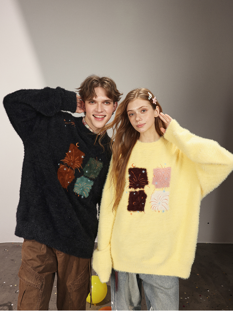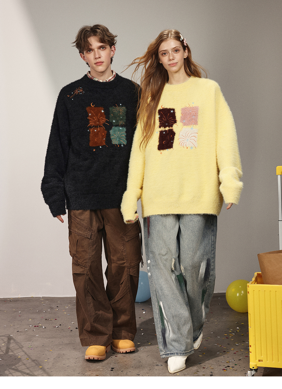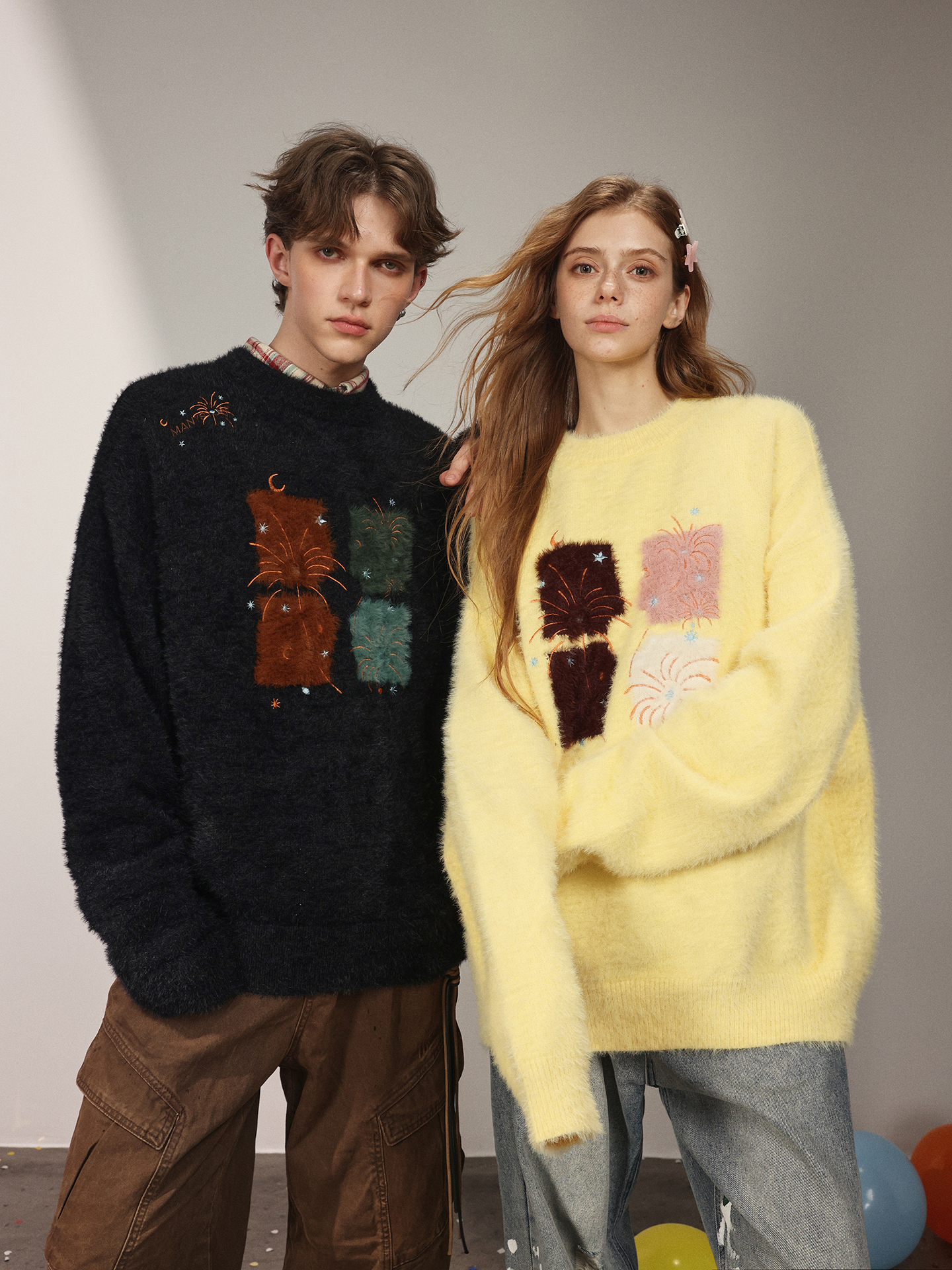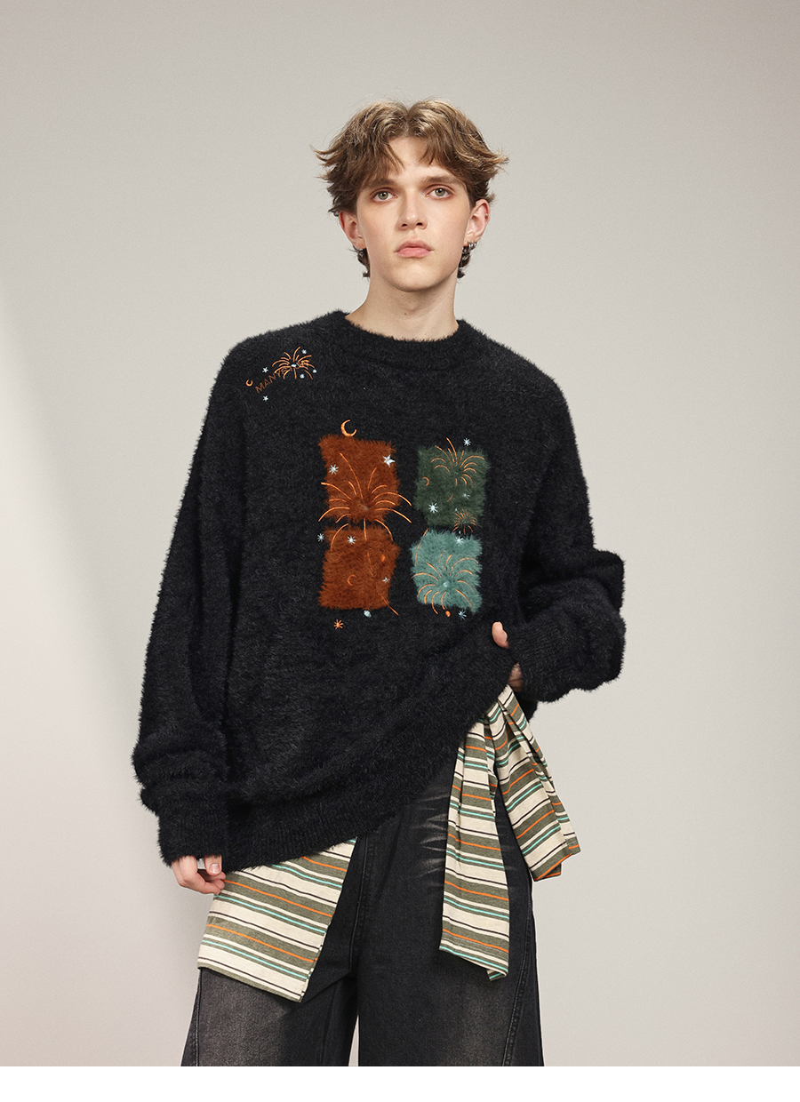 [Celebrity Style] Manyston American High Street Embroidered Sweater for Men, Spring and Autumn Couple's Round Neck Knitwear