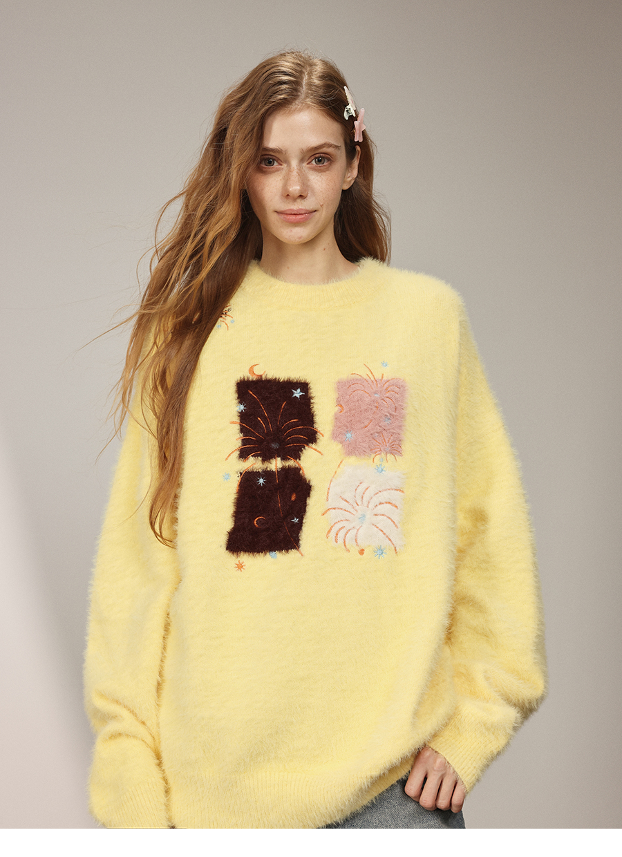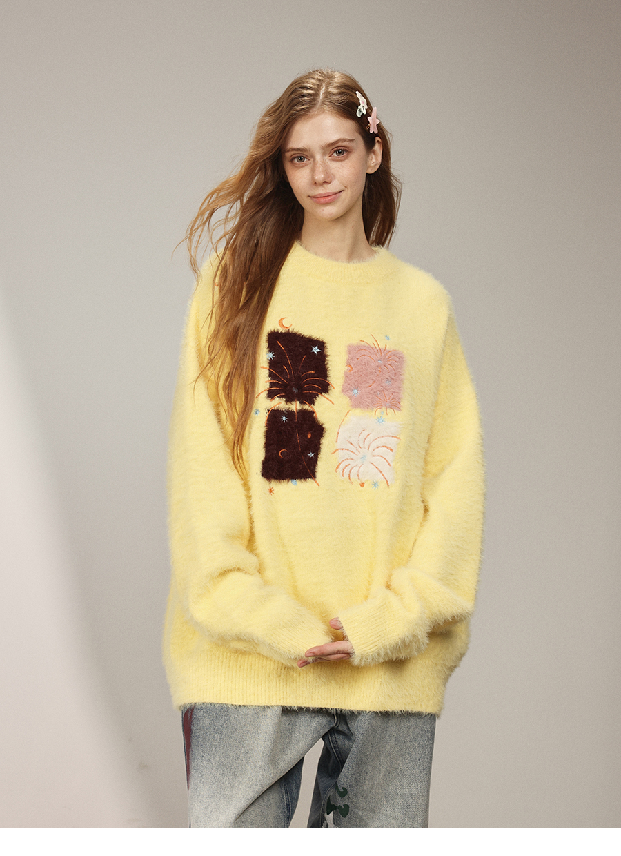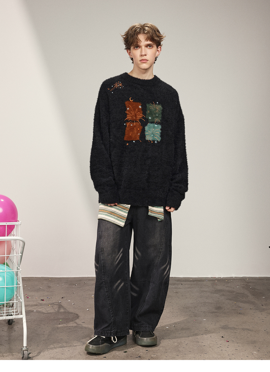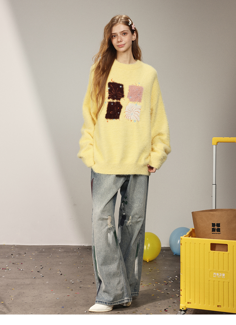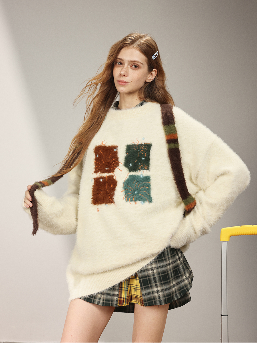[Celebrity Style] Manyston American High Street Embroidered Sweater for Men, Spring and Autumn Couple's Round Neck Knitwear