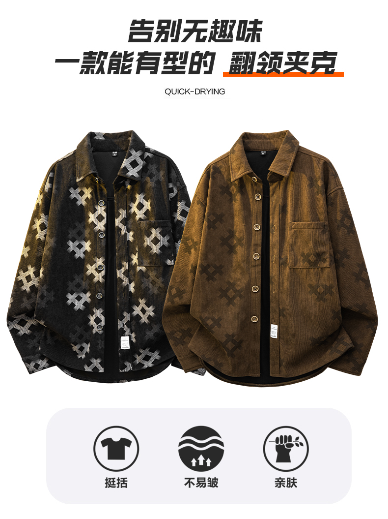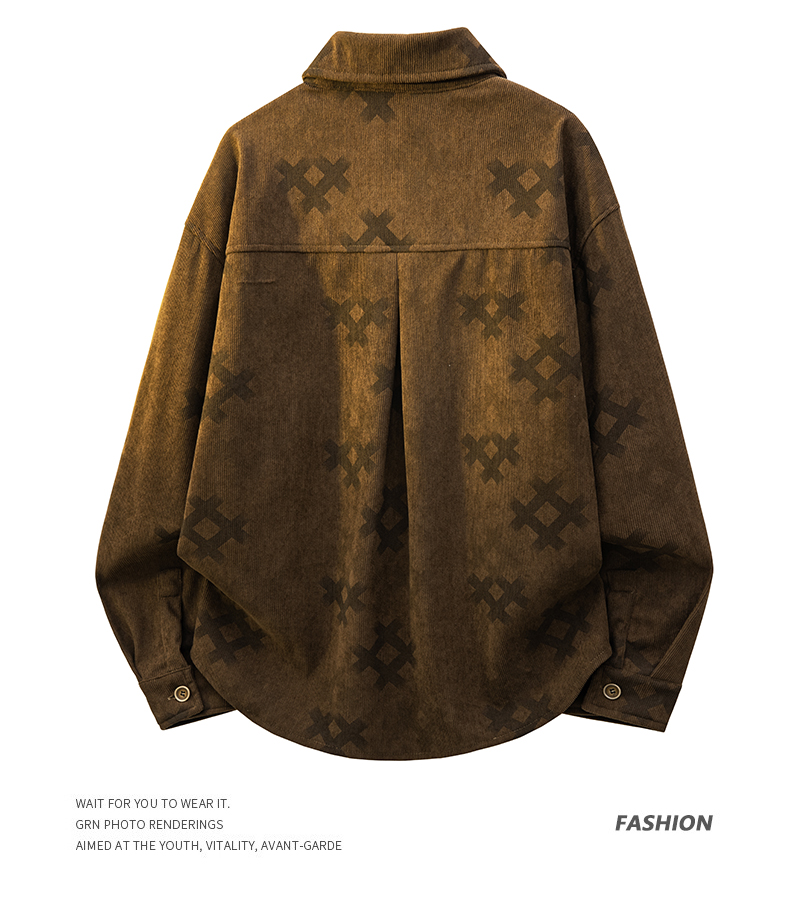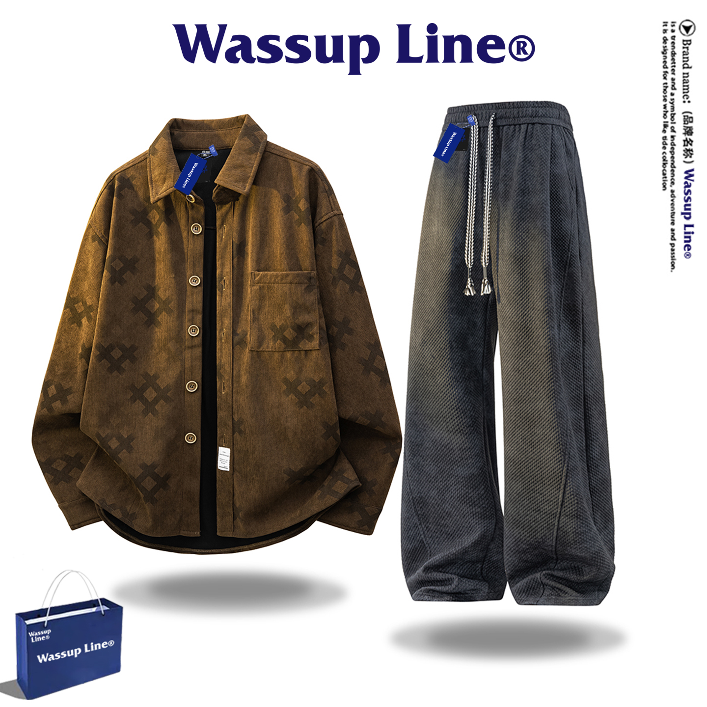 Wassup Line Trendy Brand Long-Sleeved Shirt Suit Men's Retro Loose Casual Shirt Jacket Men's Two-Piece Set