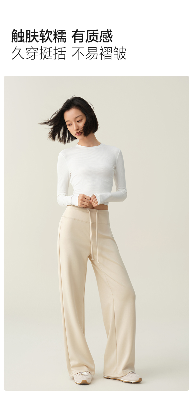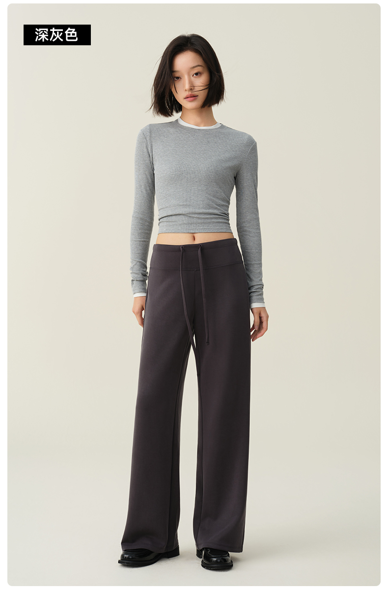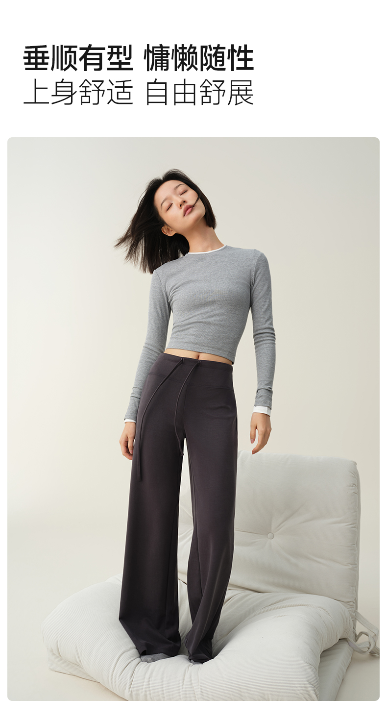 [Mushroom Comes] Mo Xun New arrival Straight Leg Pants high waist Drape Easiest for match Abdominal Wide Leg Dagging Pants
