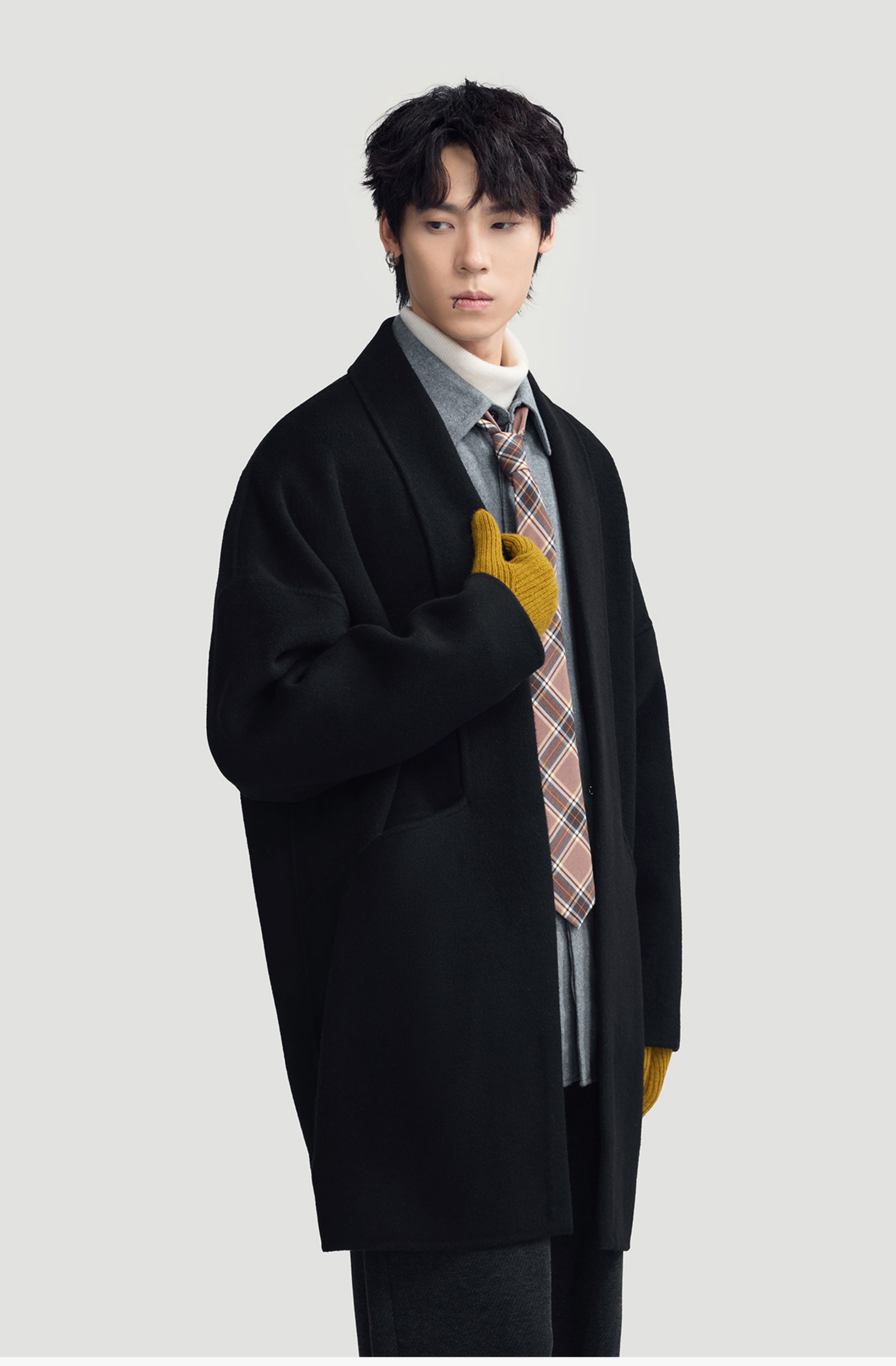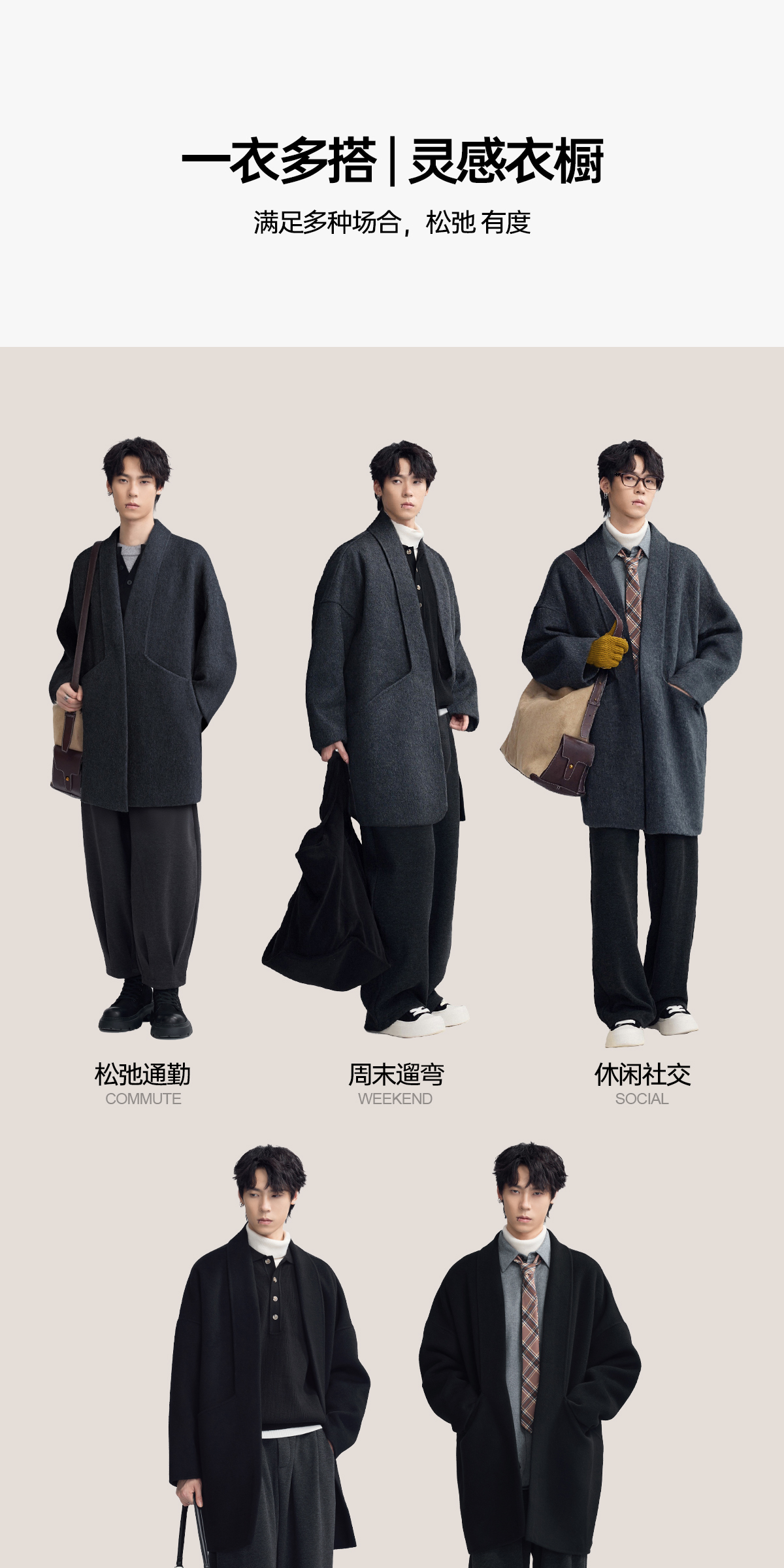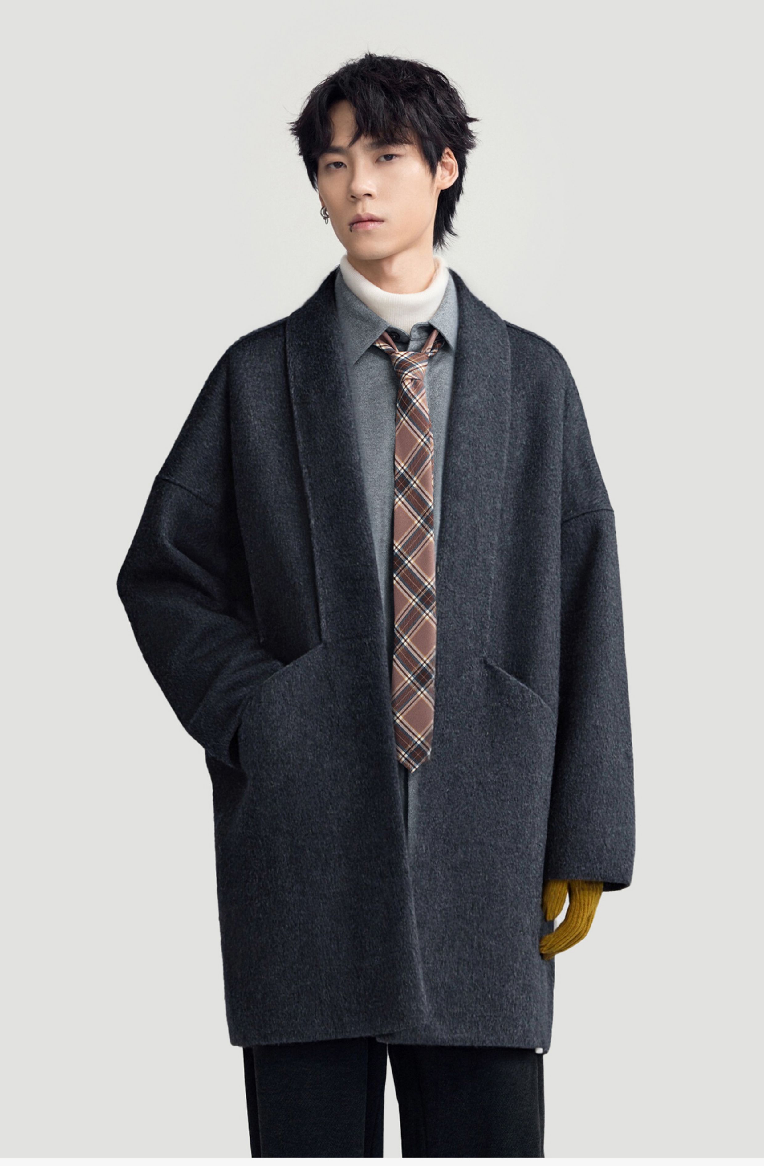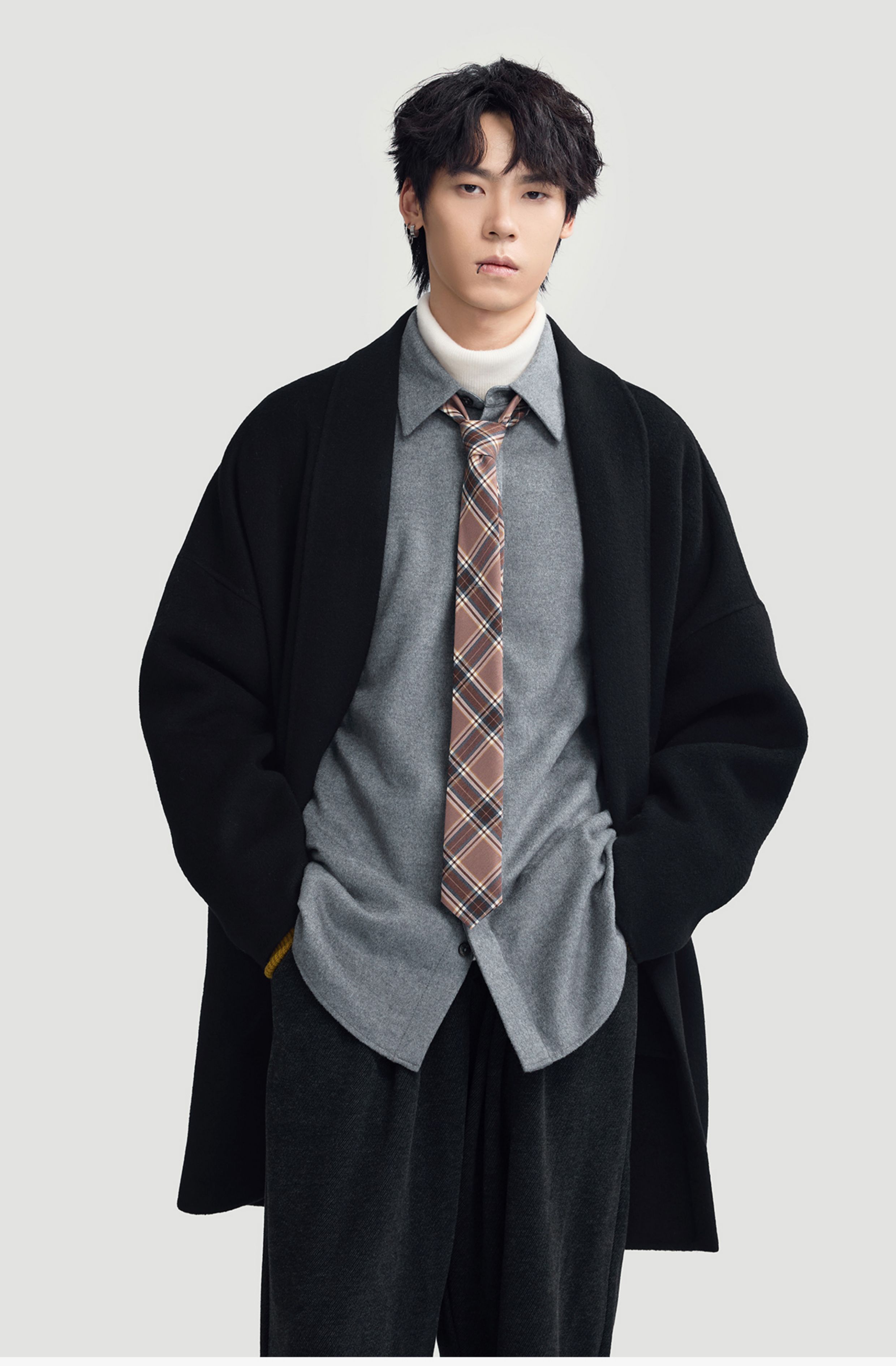 Herbel/Black and White Scarf Collar Woolen Coat Men's 2025 Winter New Warm Wool Long Coat