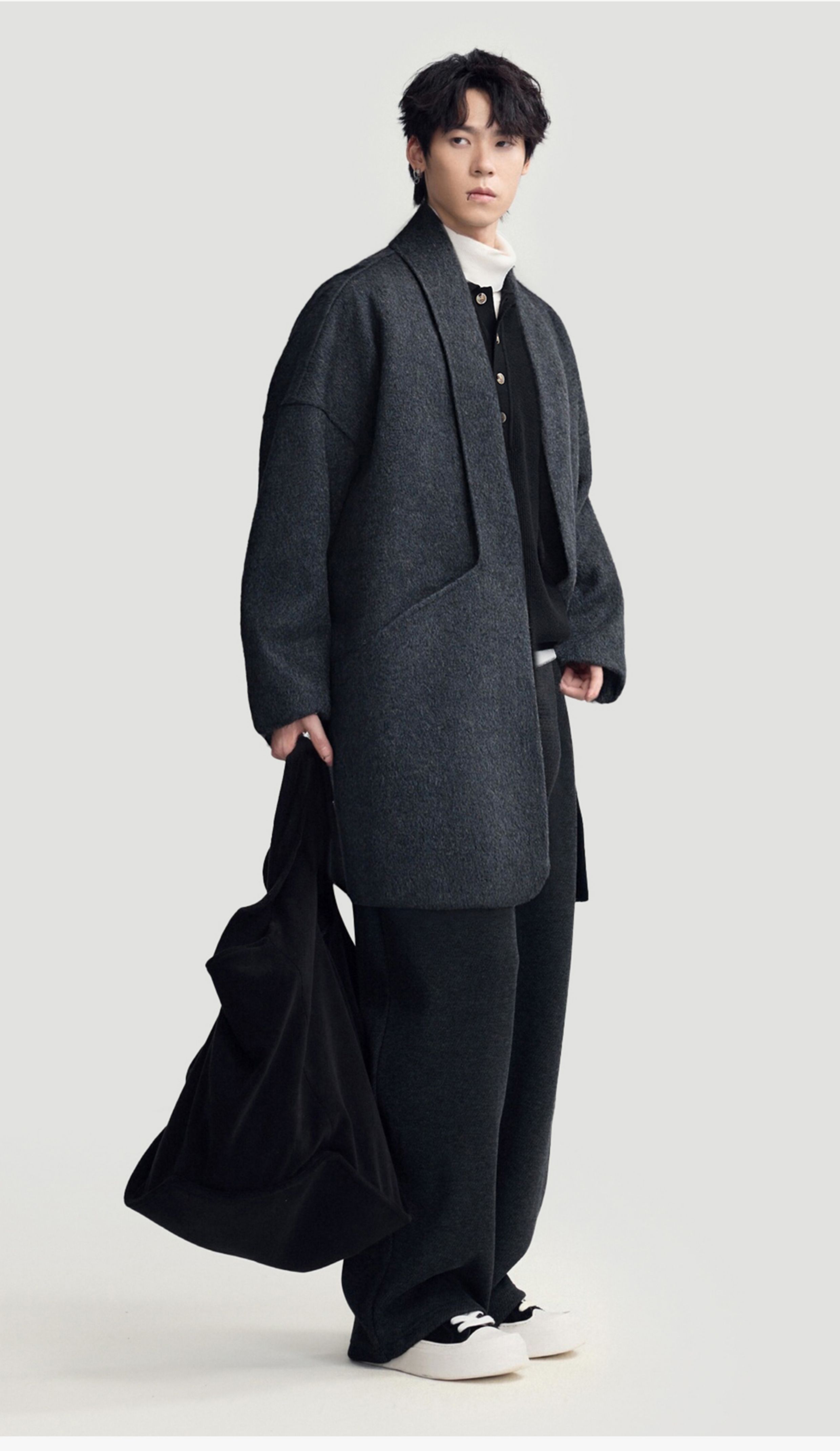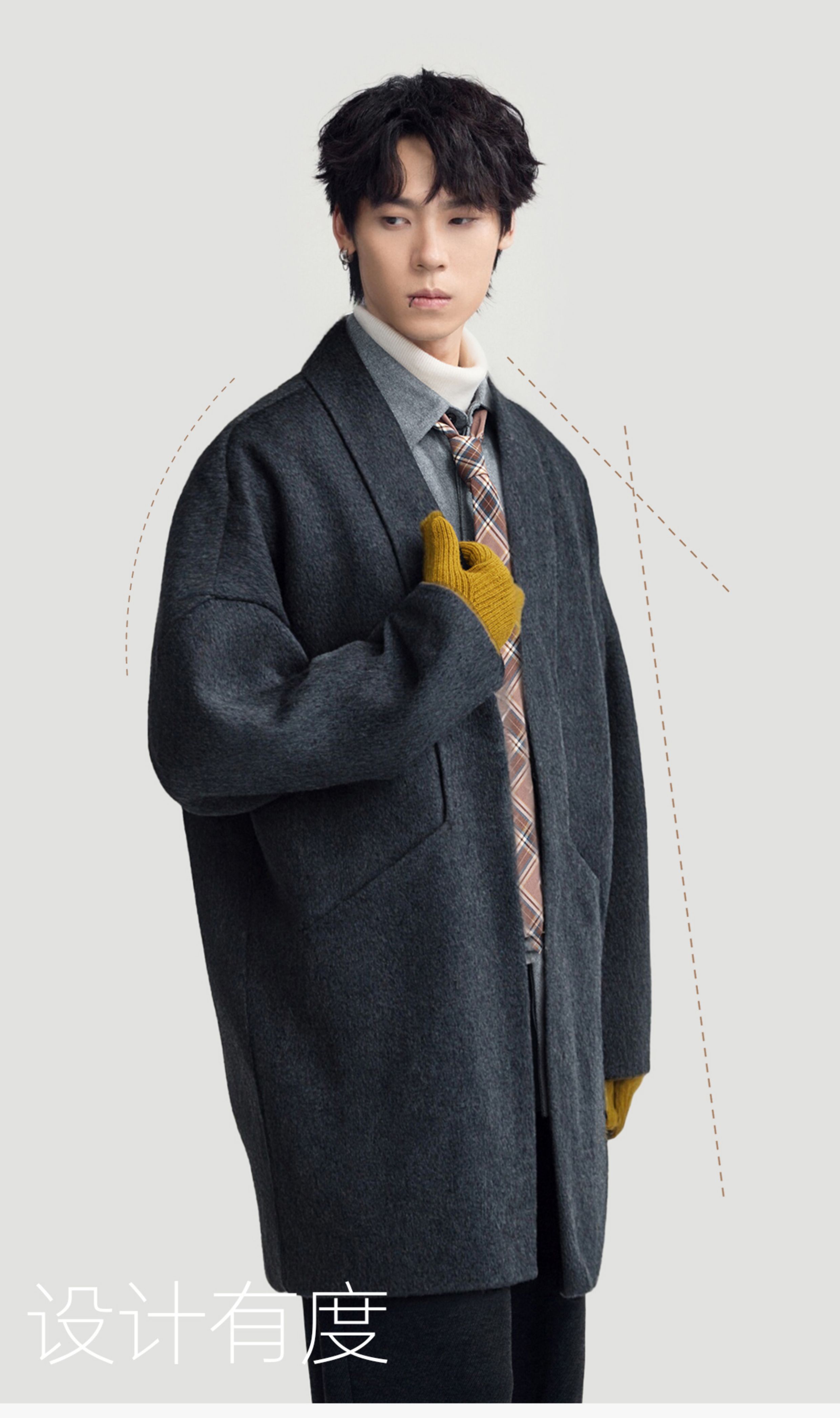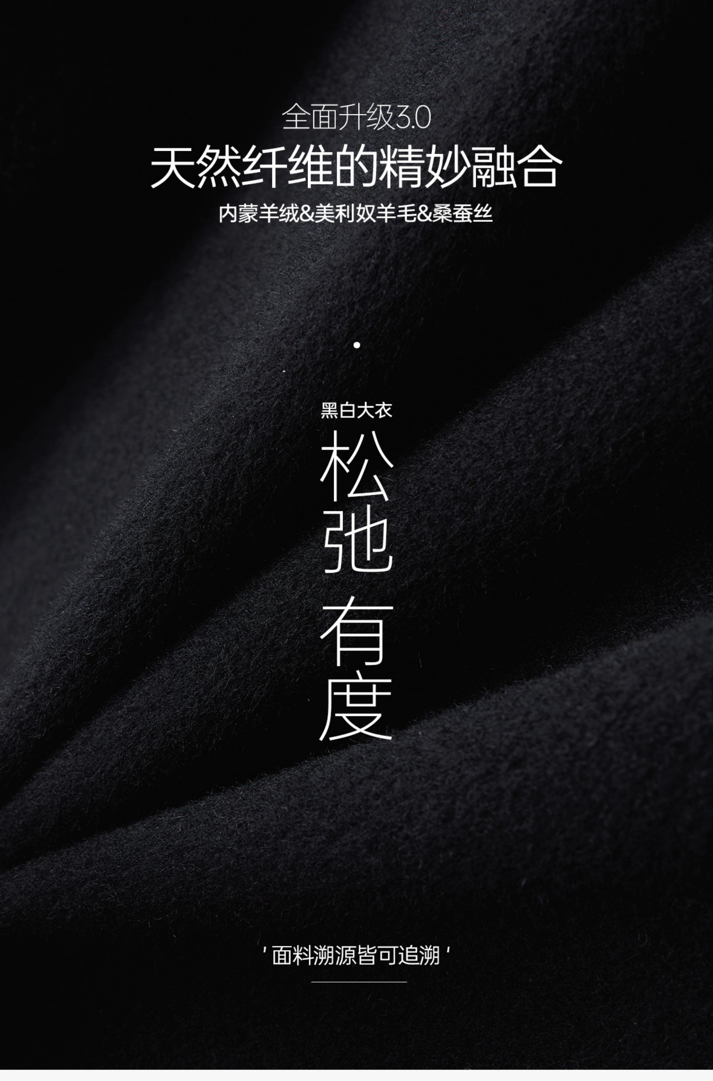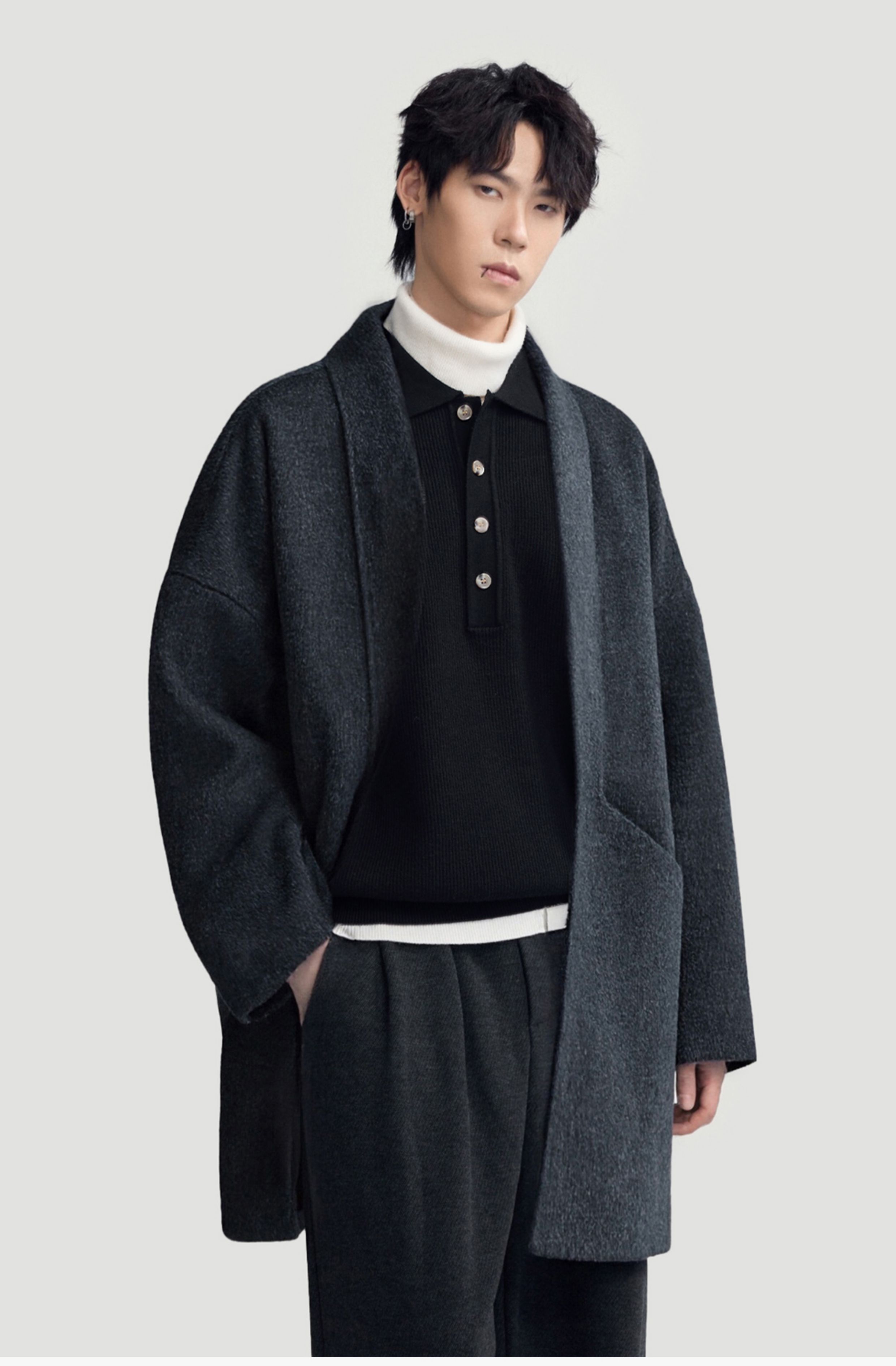 Herbel/Black and White Scarf Collar Woolen Coat Men's 2025 Winter New Warm Wool Long Coat
