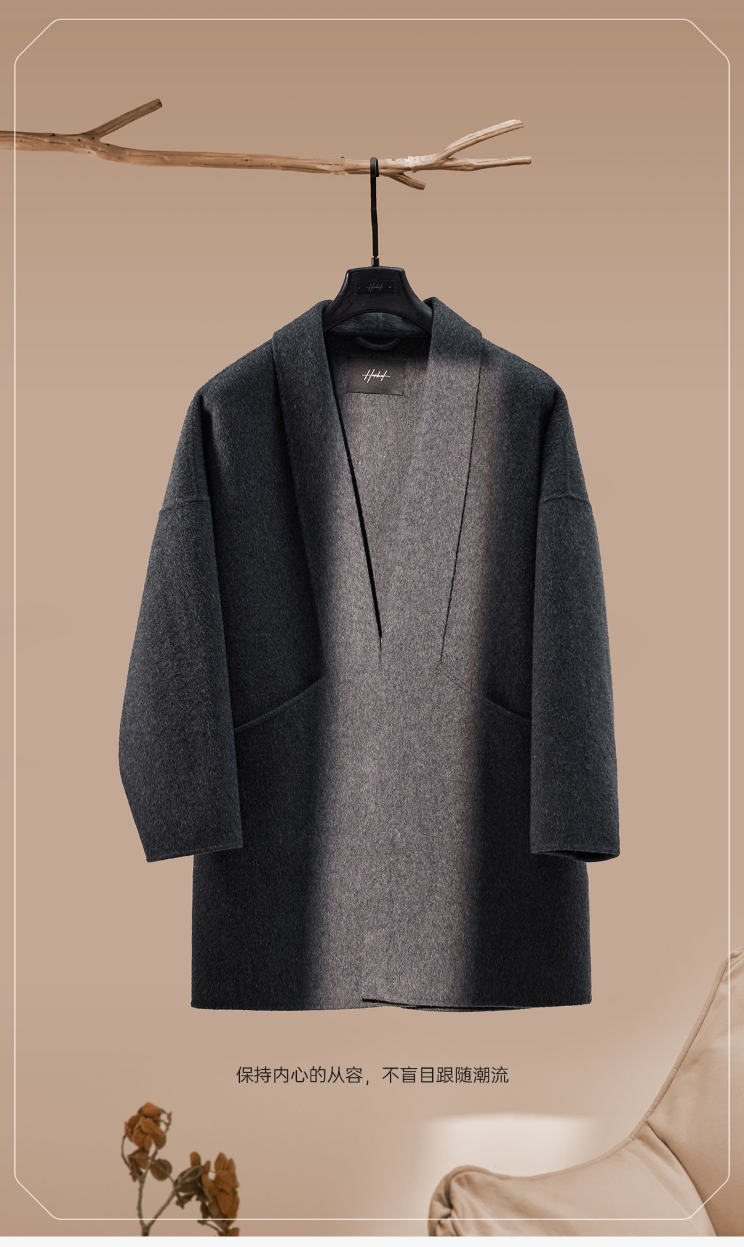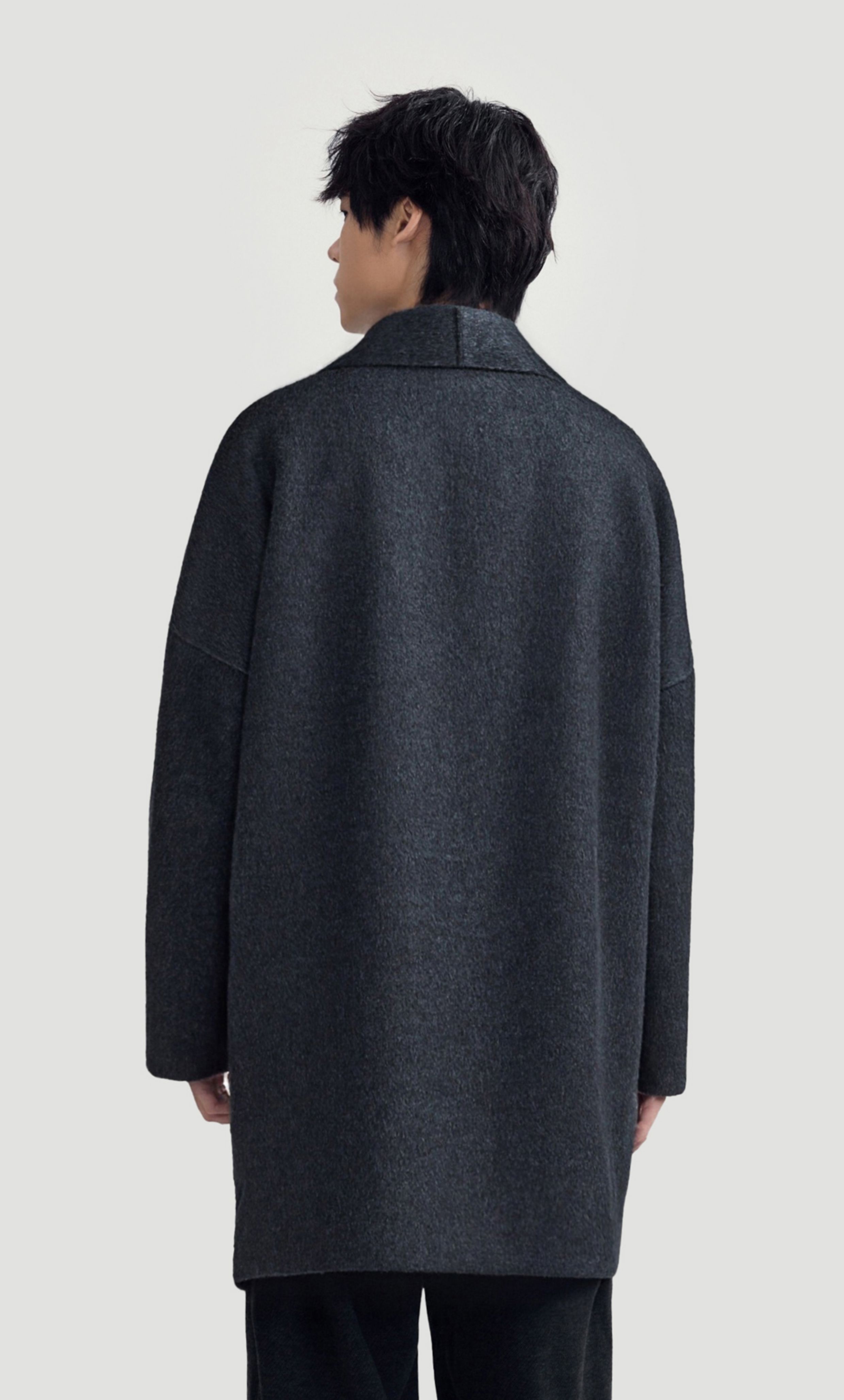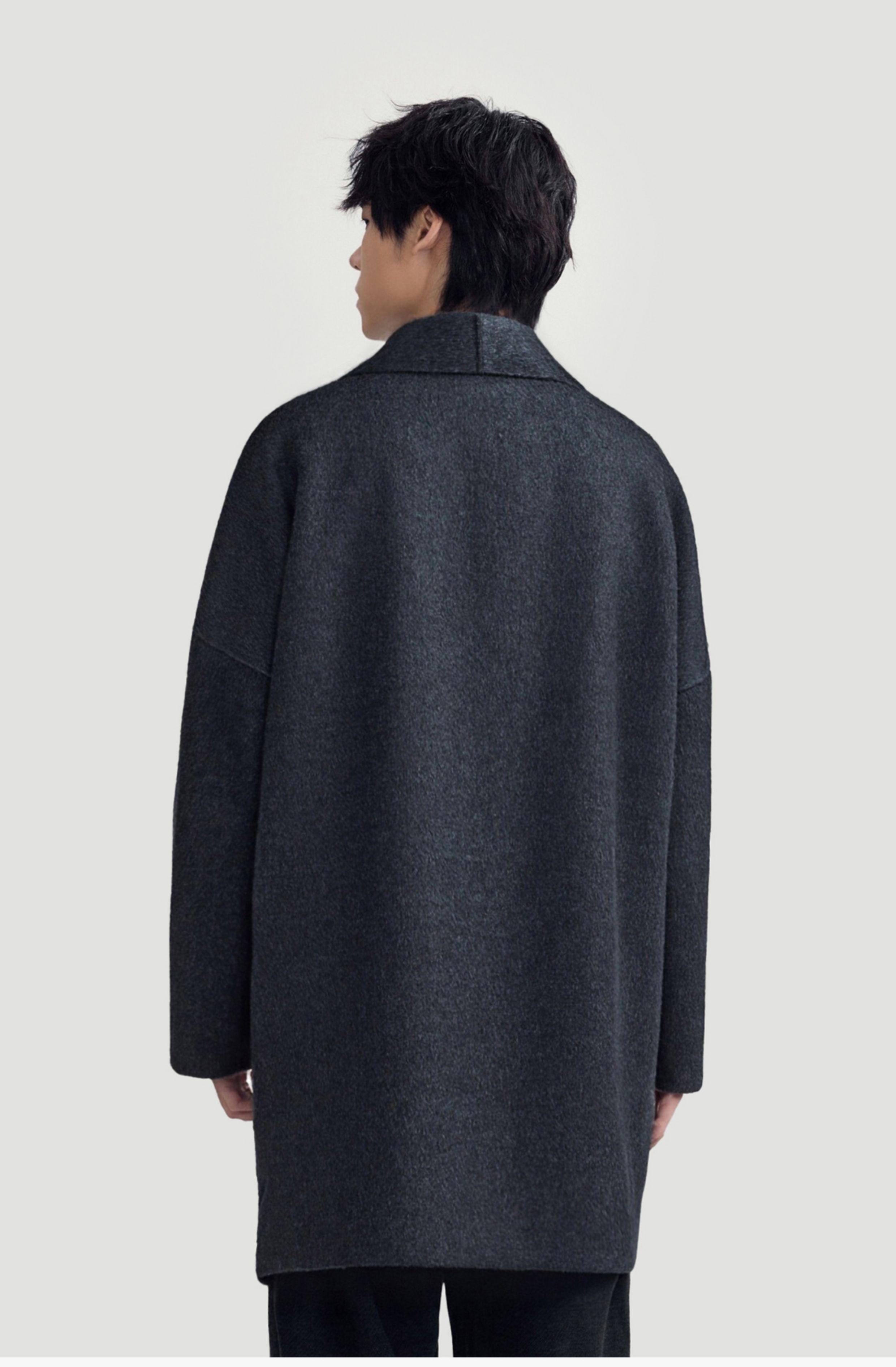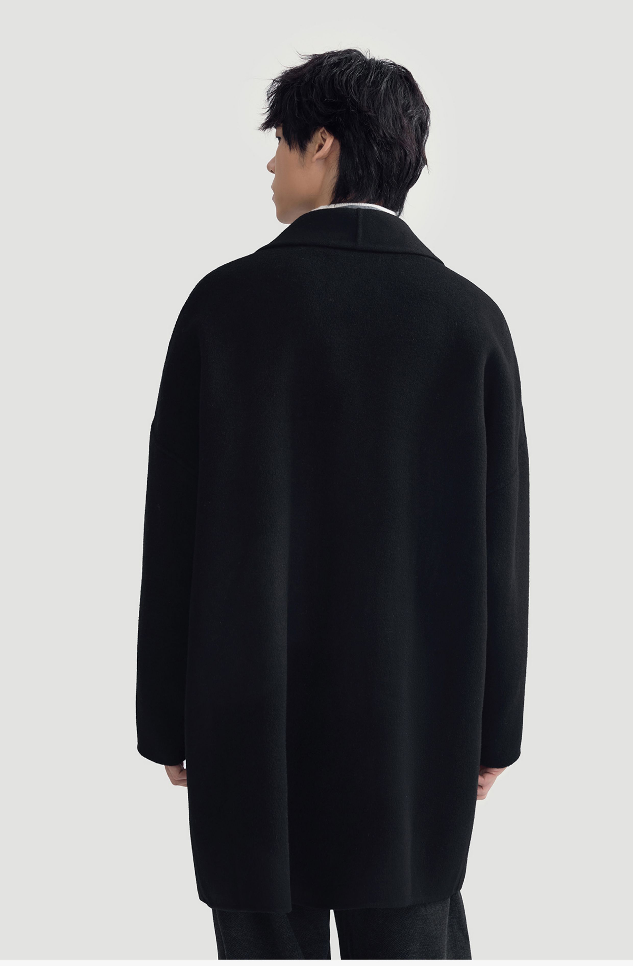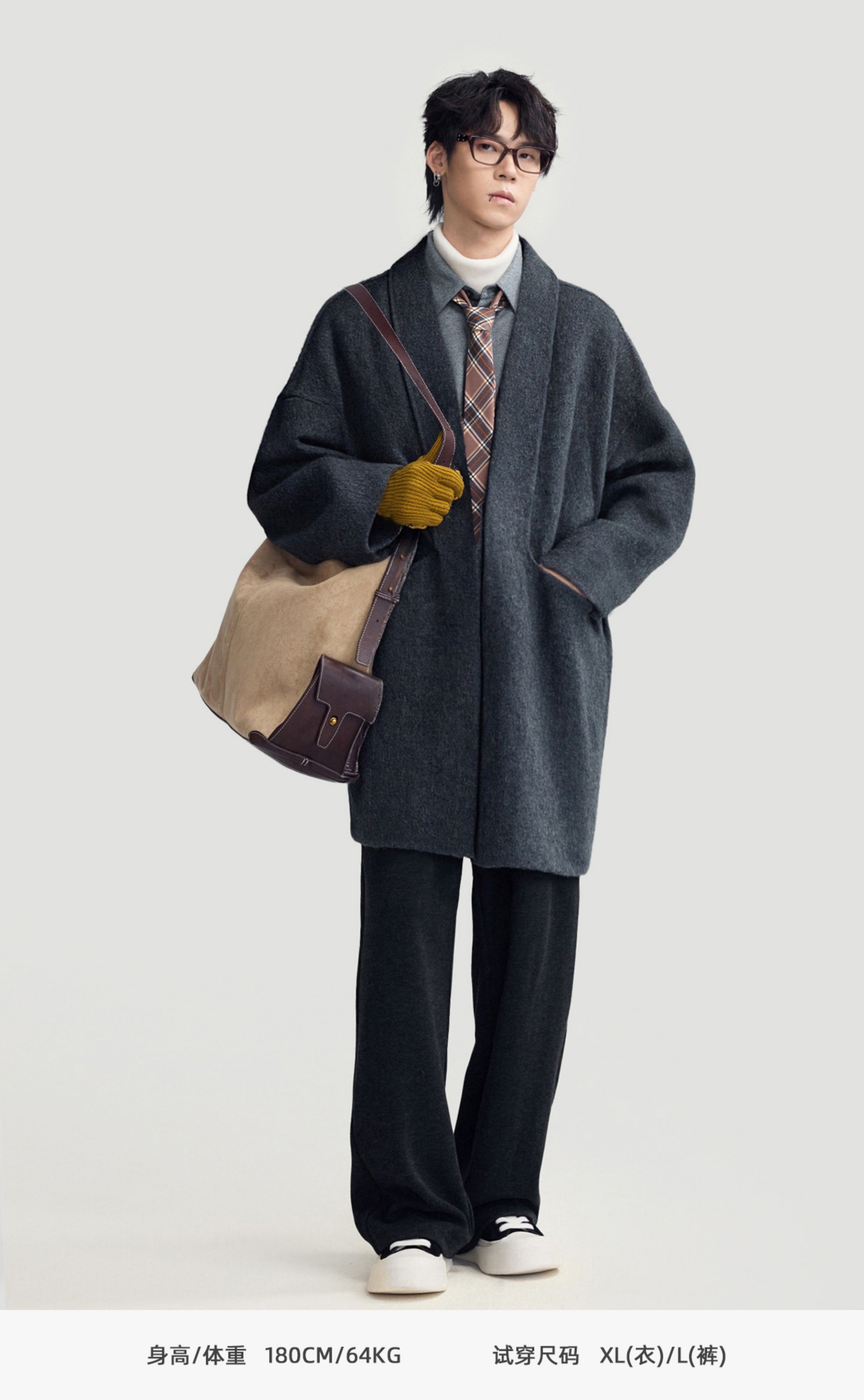 Herbel/Black and White Scarf Collar Woolen Coat Men's 2025 Winter New Warm Wool Long Coat