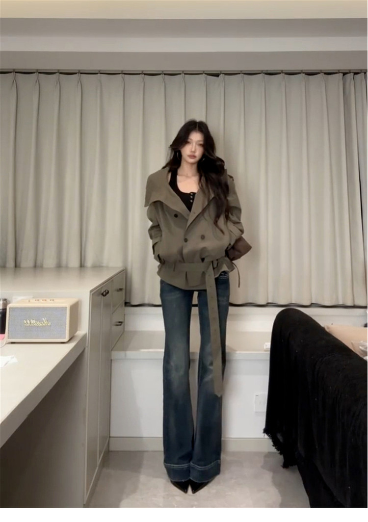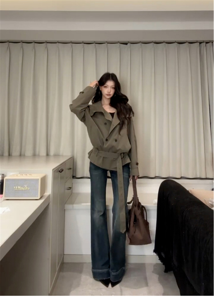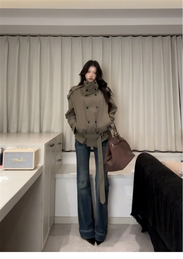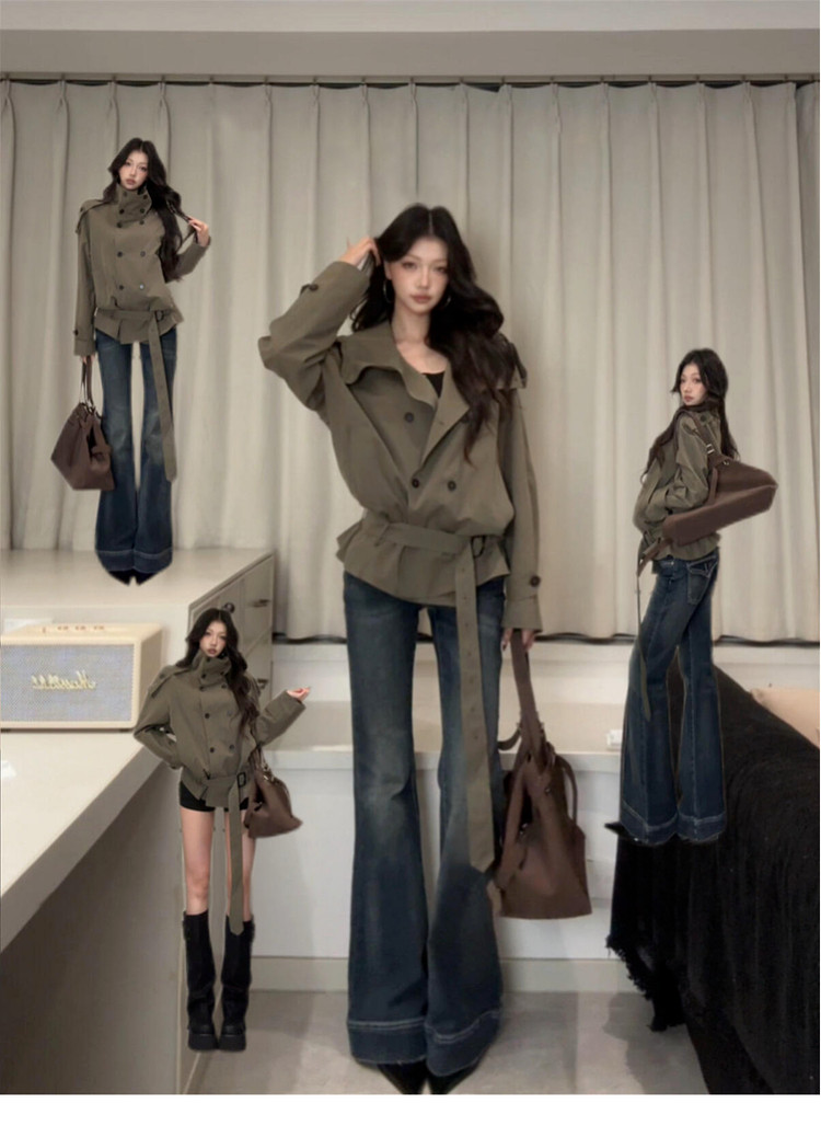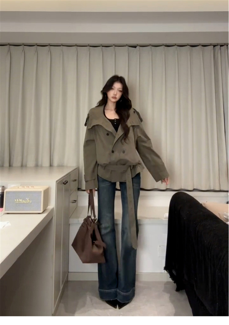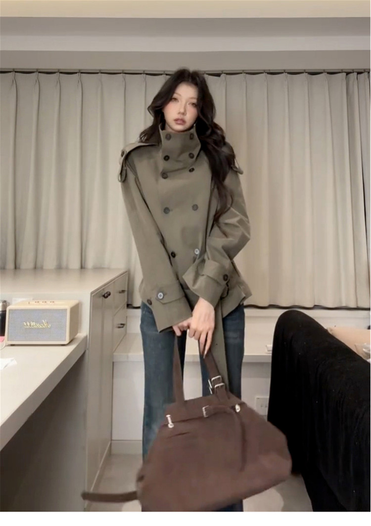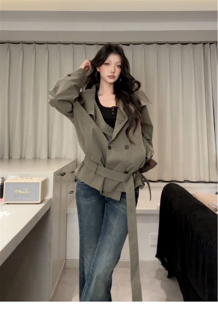 2026 New British Style Short Trench Coat for Women, Popular in Autumn, Flattering for Petite Figures, Loose Fit, Slimming, Versatile Jacket